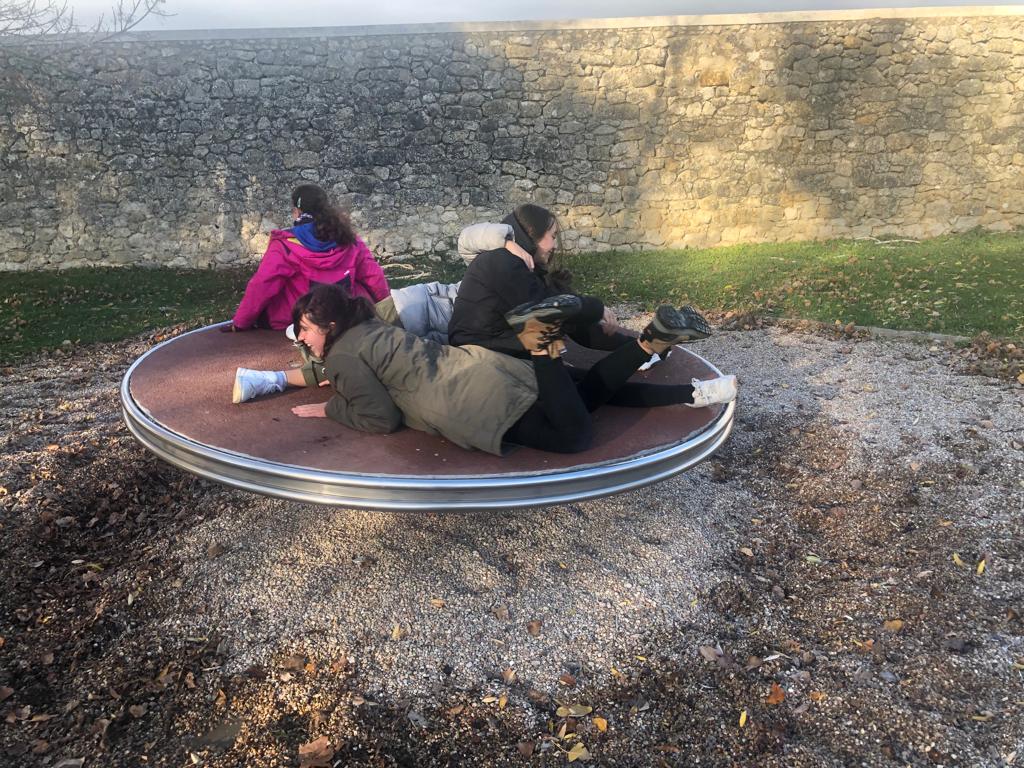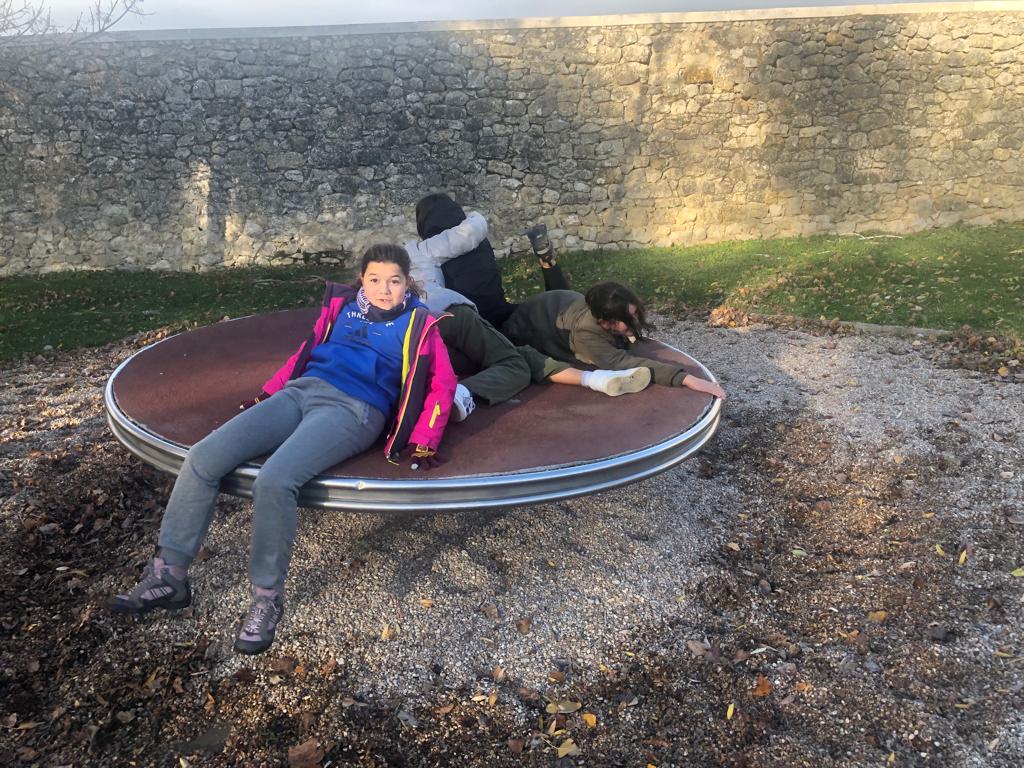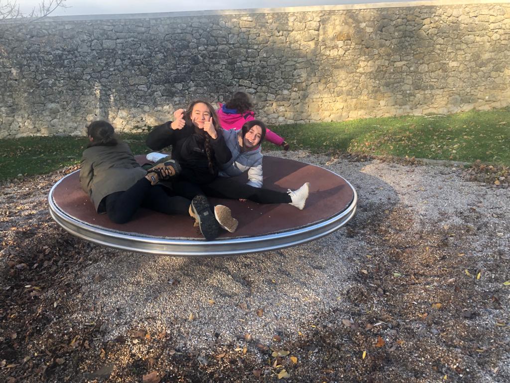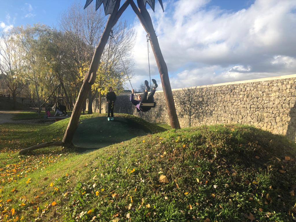 Después de lavarnos los dientes nos vamos a los columpios a disfrutar de la tarde al aire libre. De momento estamos teniendo mucha suerte porque no está lloviendo.