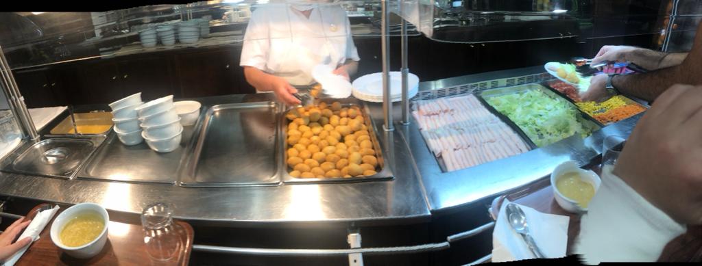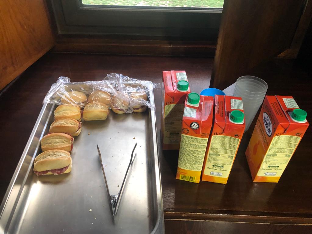 ¡Por fin llega el momento de almorzar! Nos dan un galleta de chocolate y una pieza de fruta.