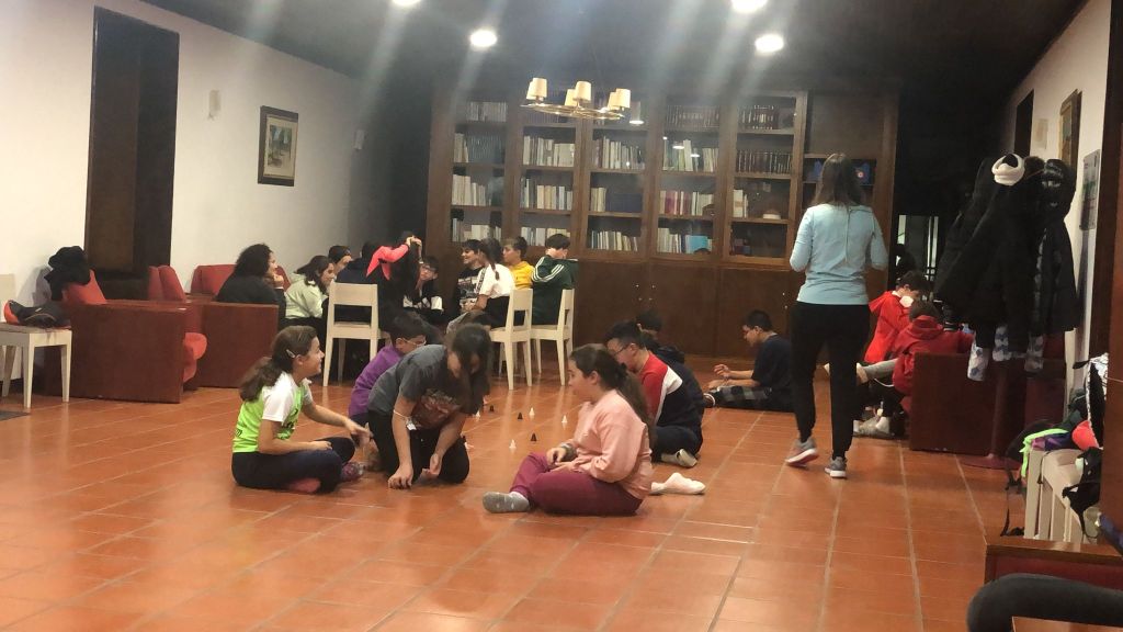 Después de cenar y de lavarnos los dientes nos disponemos a empezar los juegas del final del día. Suso nuestro monitor nos lo explica. El primer juego de la noche se llama Romel y Mongomery.
