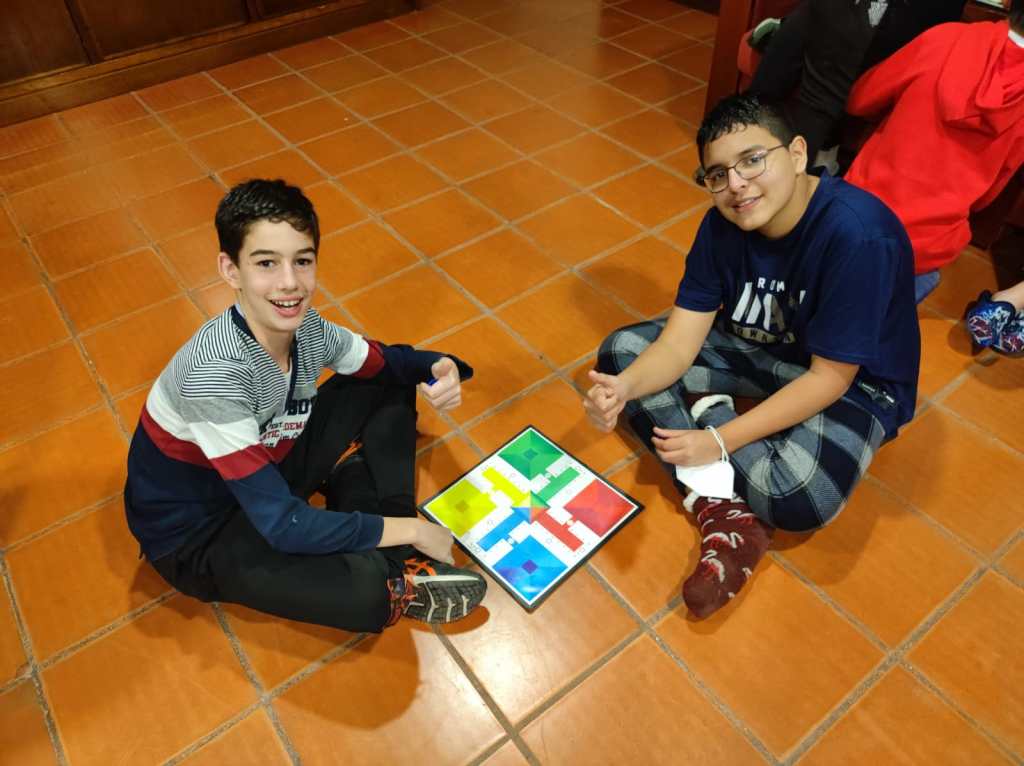 Después de disfrutar de lo lindo en los columpios . Nos venimos corriendo a casa porque se ha puesto a llover. Tenemos un montón de juegos de mesa para pasar un buen rato hasta que vayamos a hacer unas ricas pastas .