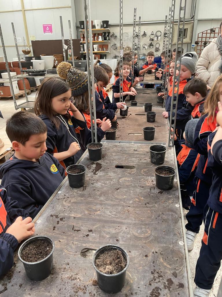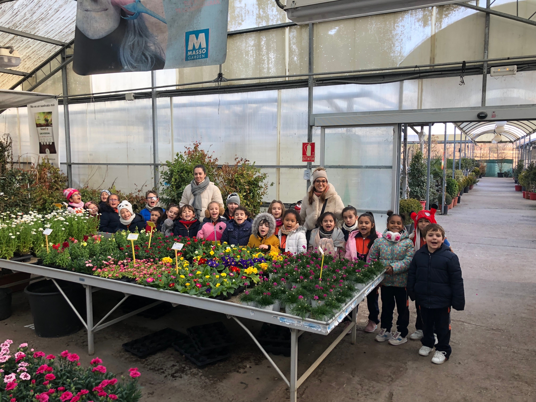Los alumnos de 1º de Educación Primaria visitamos los viveros Gimeno. Conocimos las instalaciones donde pudimos observar diferentes tipos de plantas y árboles. Para finalizar realizamos un pequeños taller en el que plantamos una semilla de flor o de tomate y nos las llevamos para seguir cuidándolas en nuestra casa.
