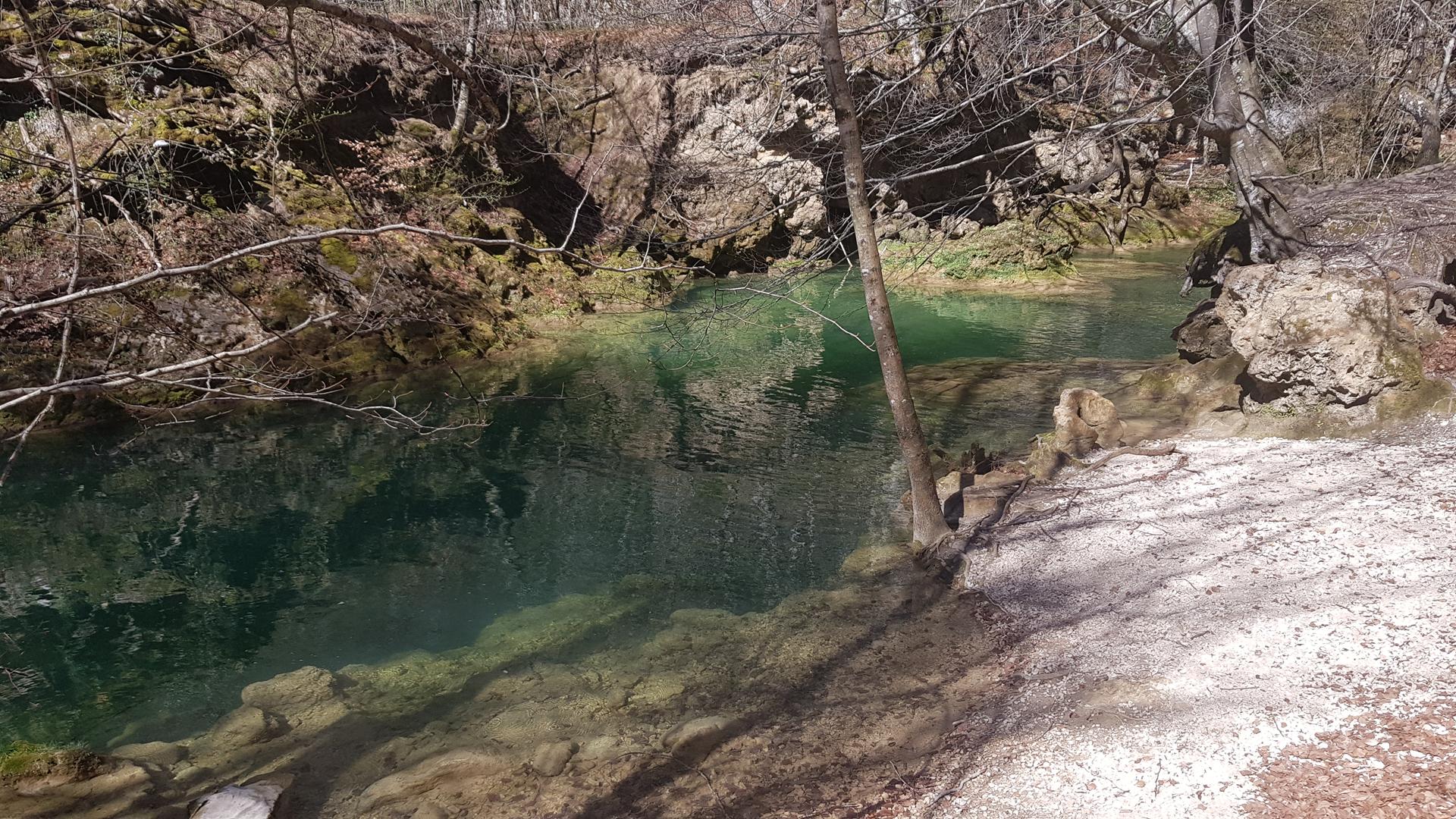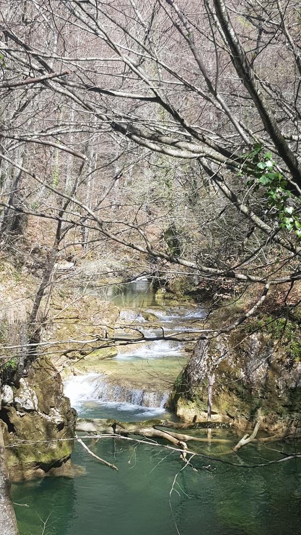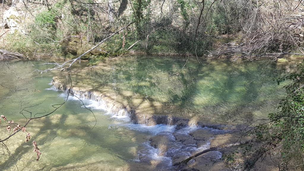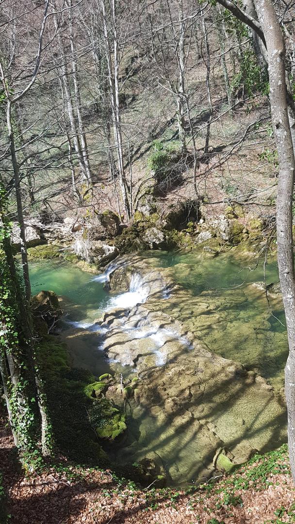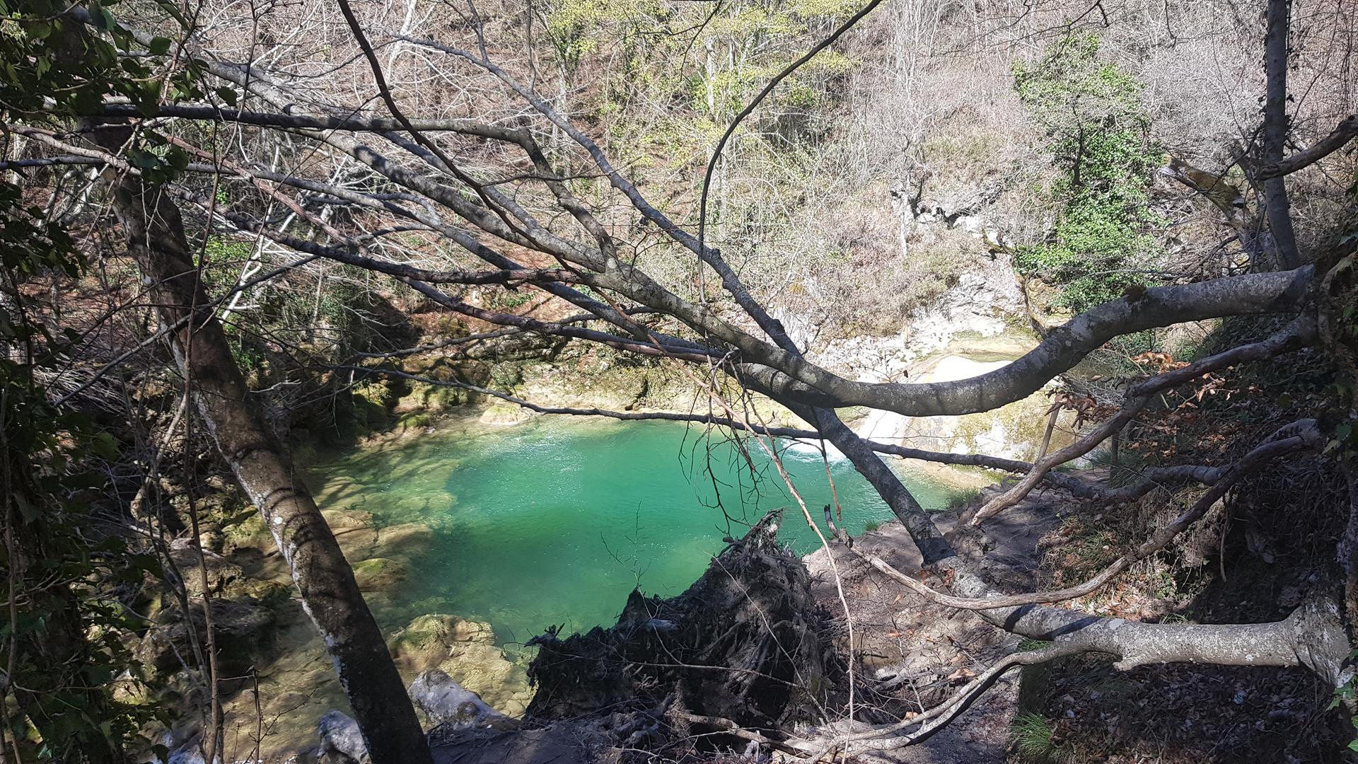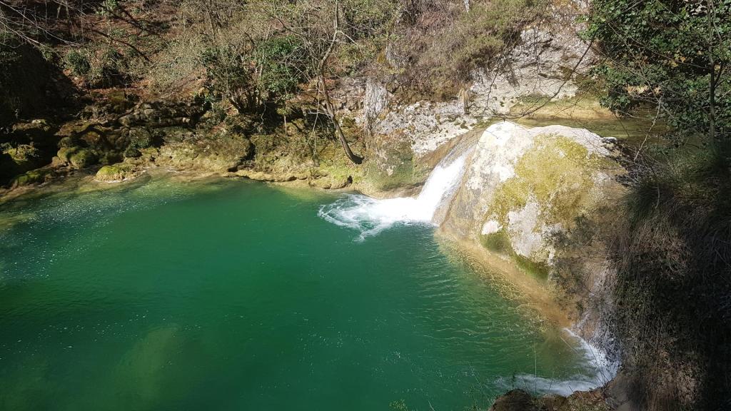 Se trata de un paraje de gran belleza, donde el río Urederra nace y forma una serie de cascadas y pozas de aguas cristalinas rodeadas de frondosos bosques de hayas y robles. Una pena que no hayan florecido todavía ¡Están a punto de despertar de su letargo invernal!