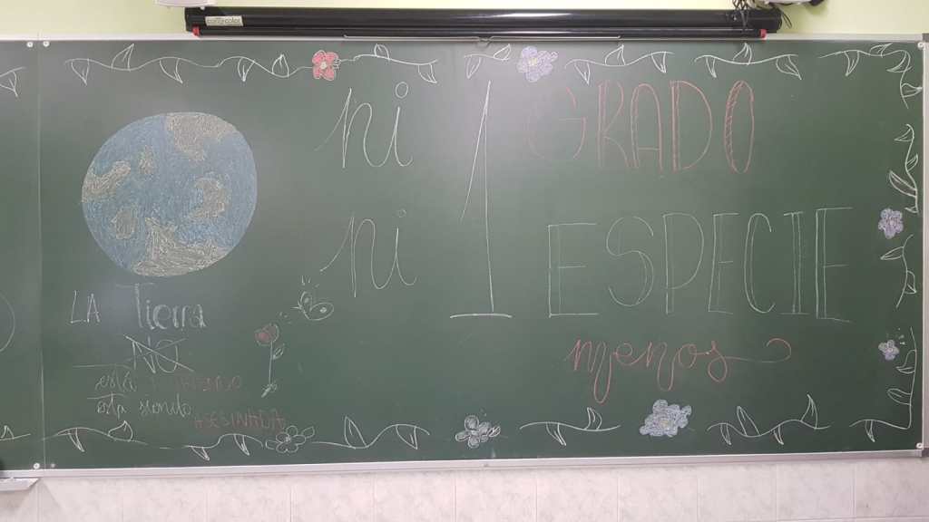 En Educación Secundaria Obligatoria, los alumnos más comprometidos con la problemática ambiental, se han reunido en el recreo enfrente de las pizarras y han dado rienda suelta a su imaginación. Algunos encerados son auténticas obras de arte.