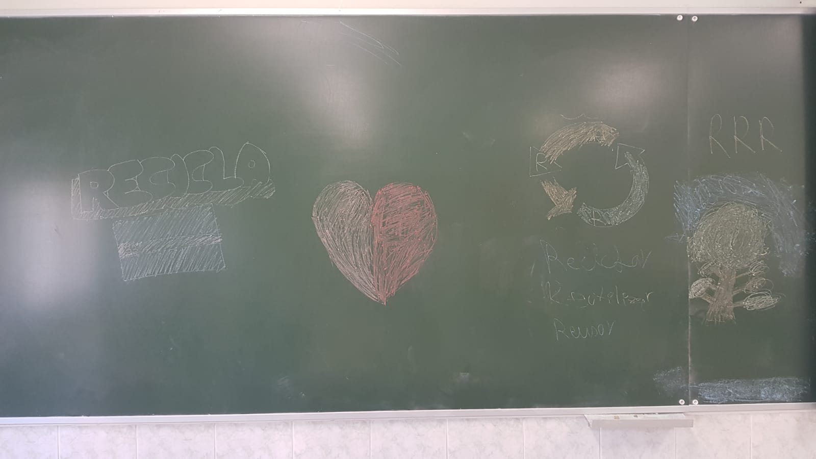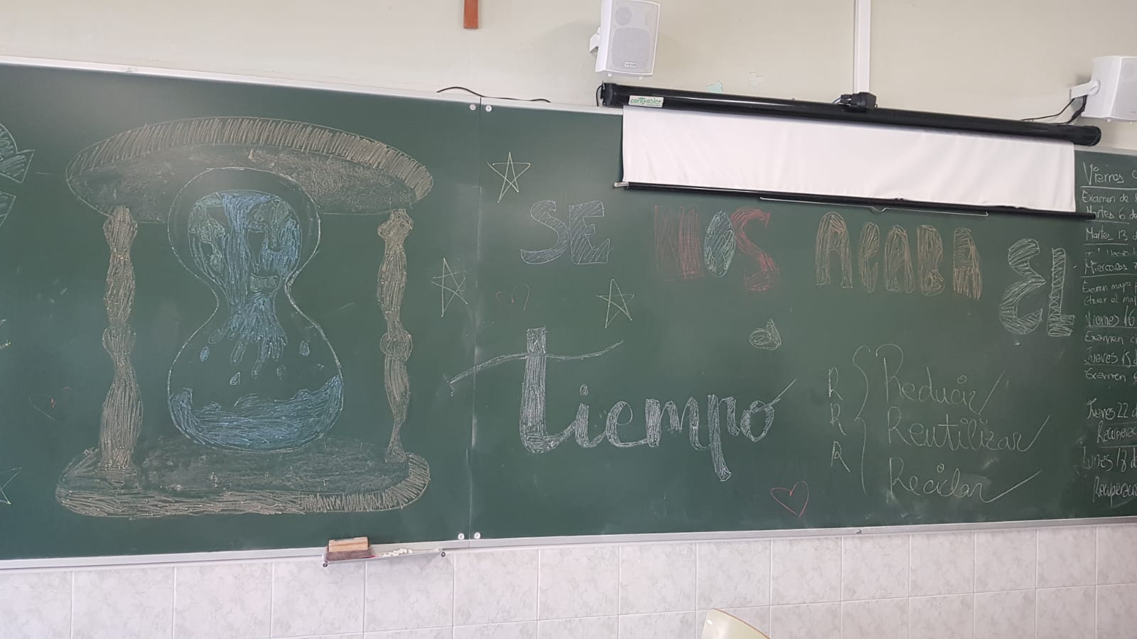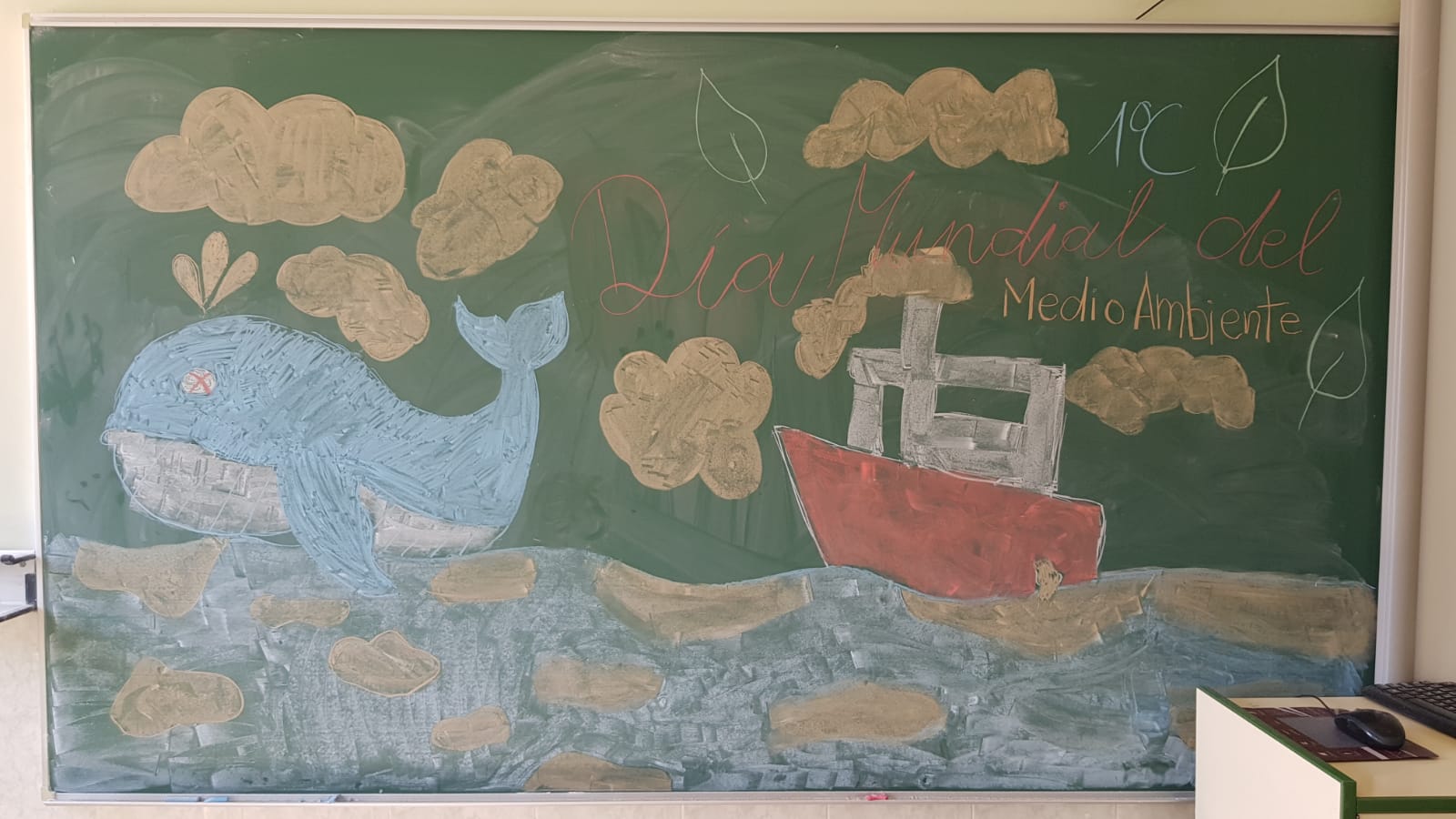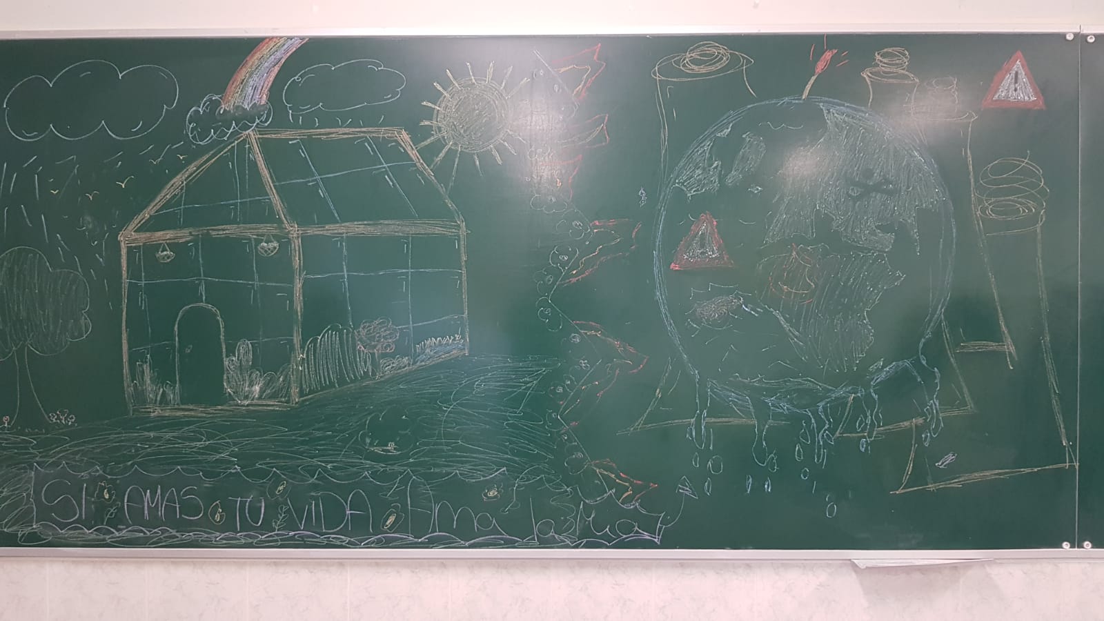 En Educación Secundaria Obligatoria, los alumnos más comprometidos con la problemática ambiental, se han reunido en el recreo enfrente de las pizarras y han dado rienda suelta a su imaginación. Algunos encerados son auténticas obras de arte.
