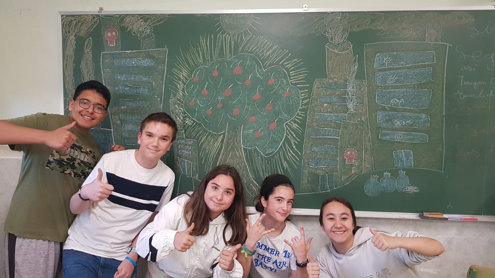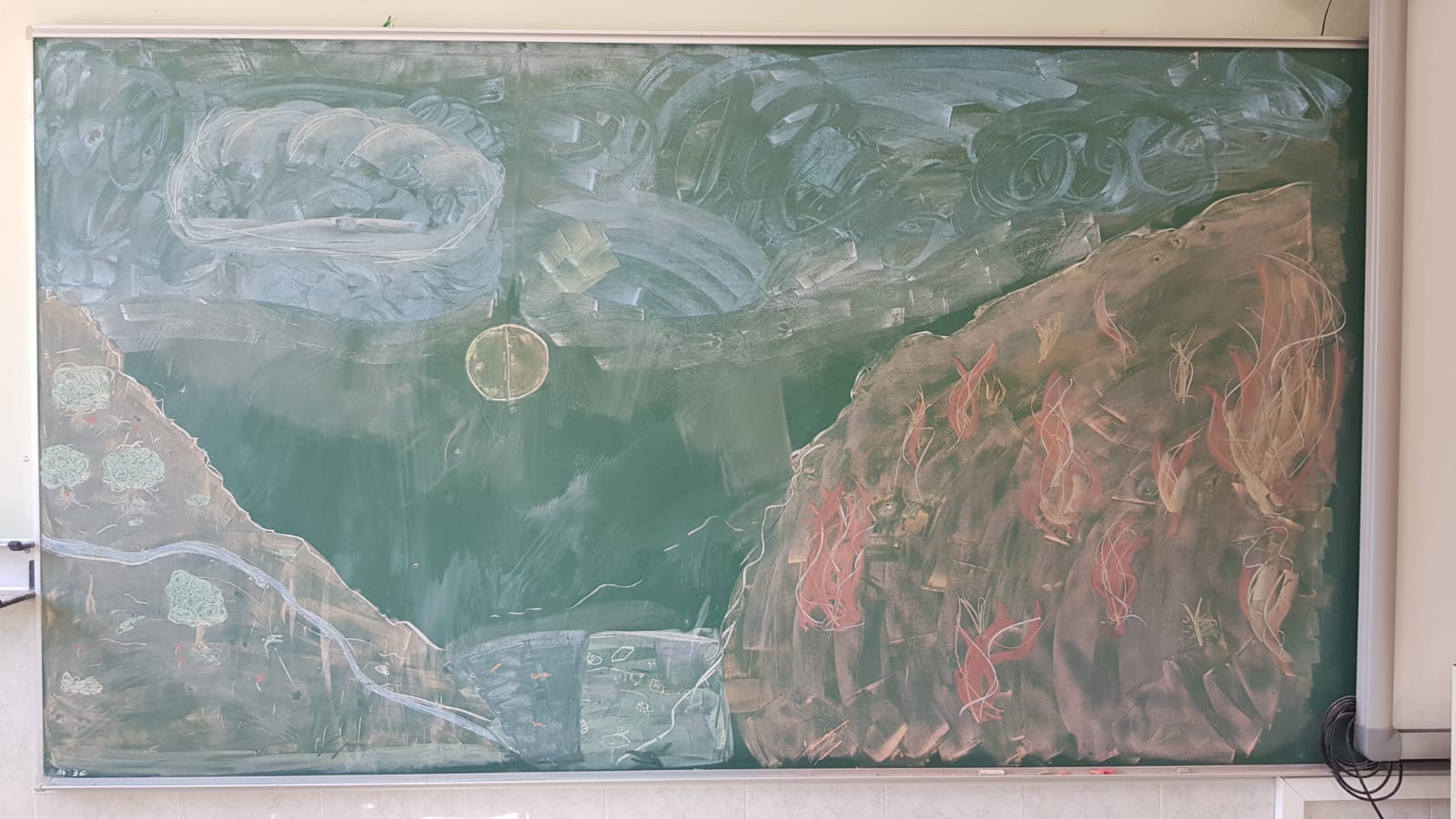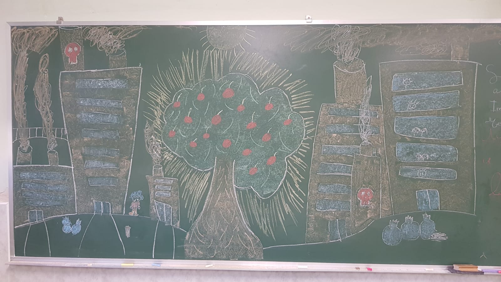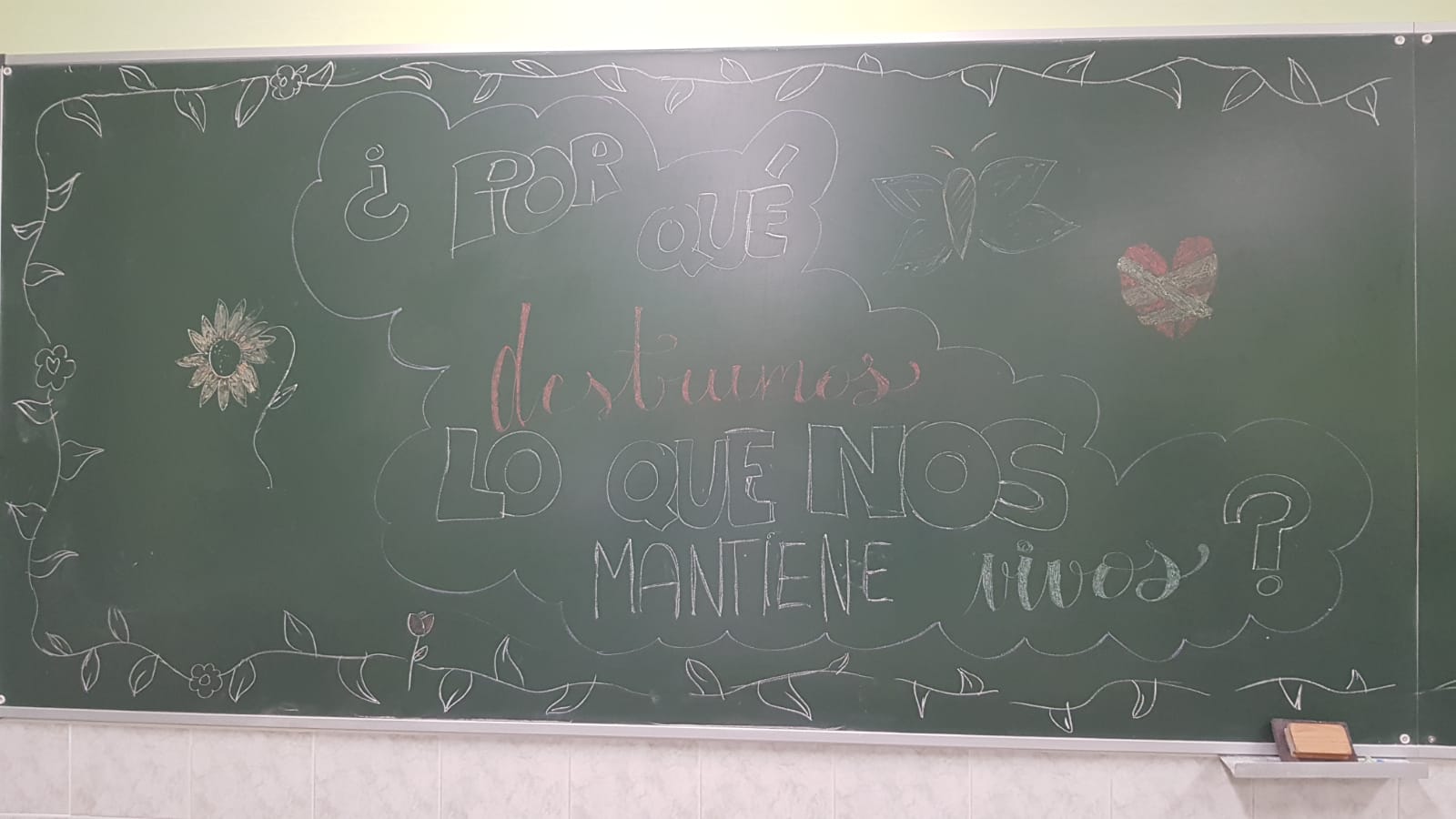 En Educación Secundaria Obligatoria, los alumnos más comprometidos con la problemática ambiental, se han reunido en el recreo enfrente de las pizarras y han dado rienda suelta a su imaginación. Algunos encerados son auténticas obras de arte.