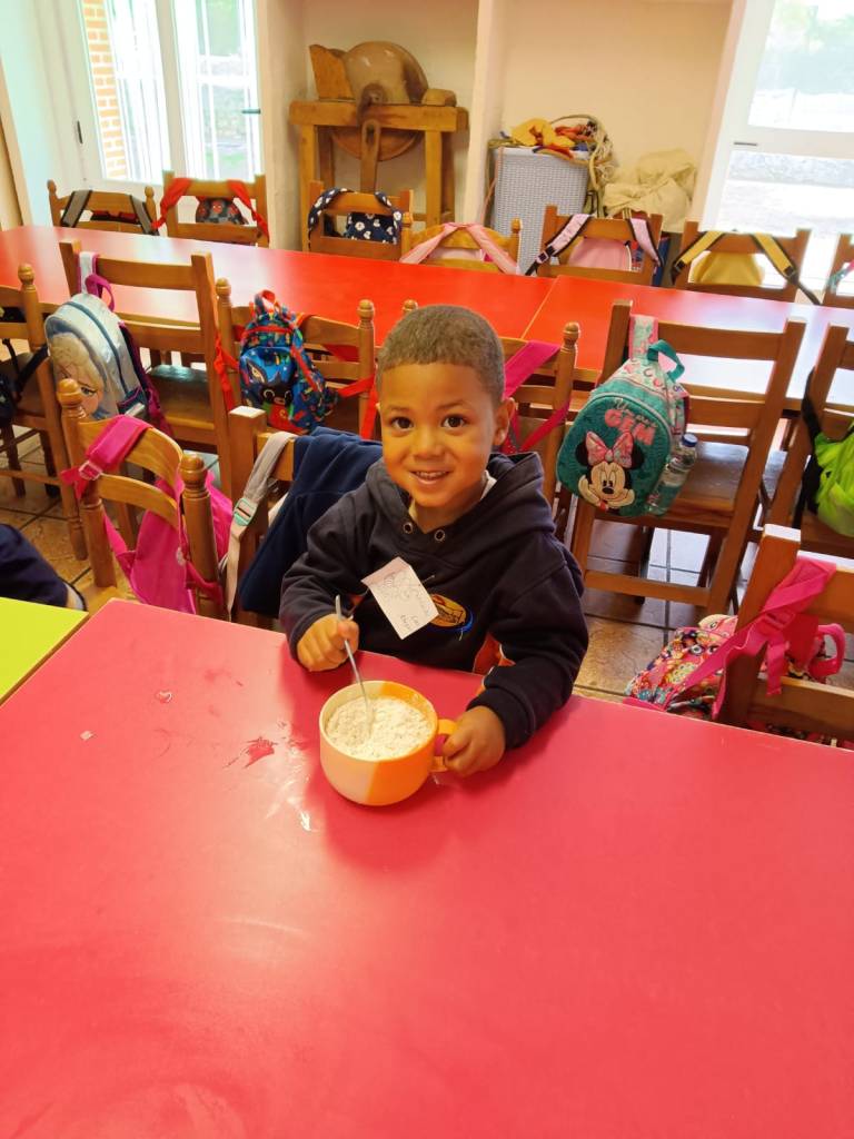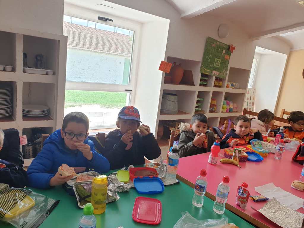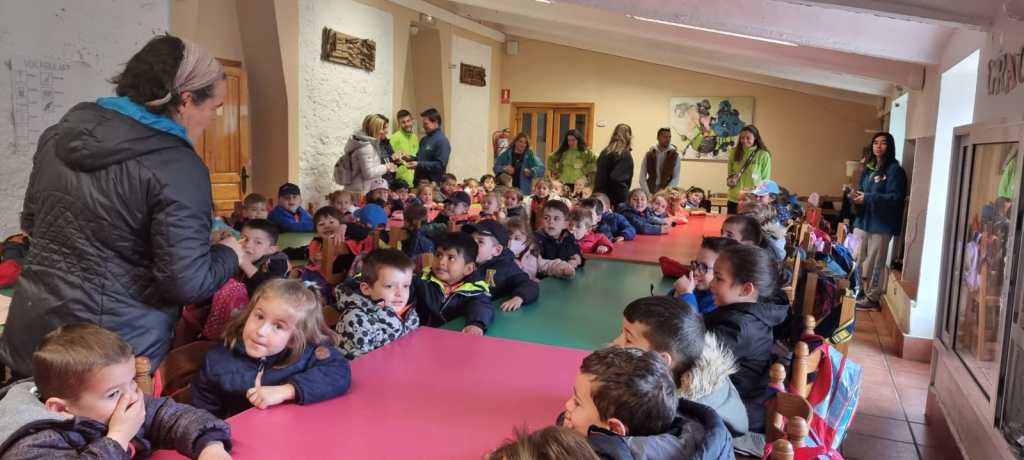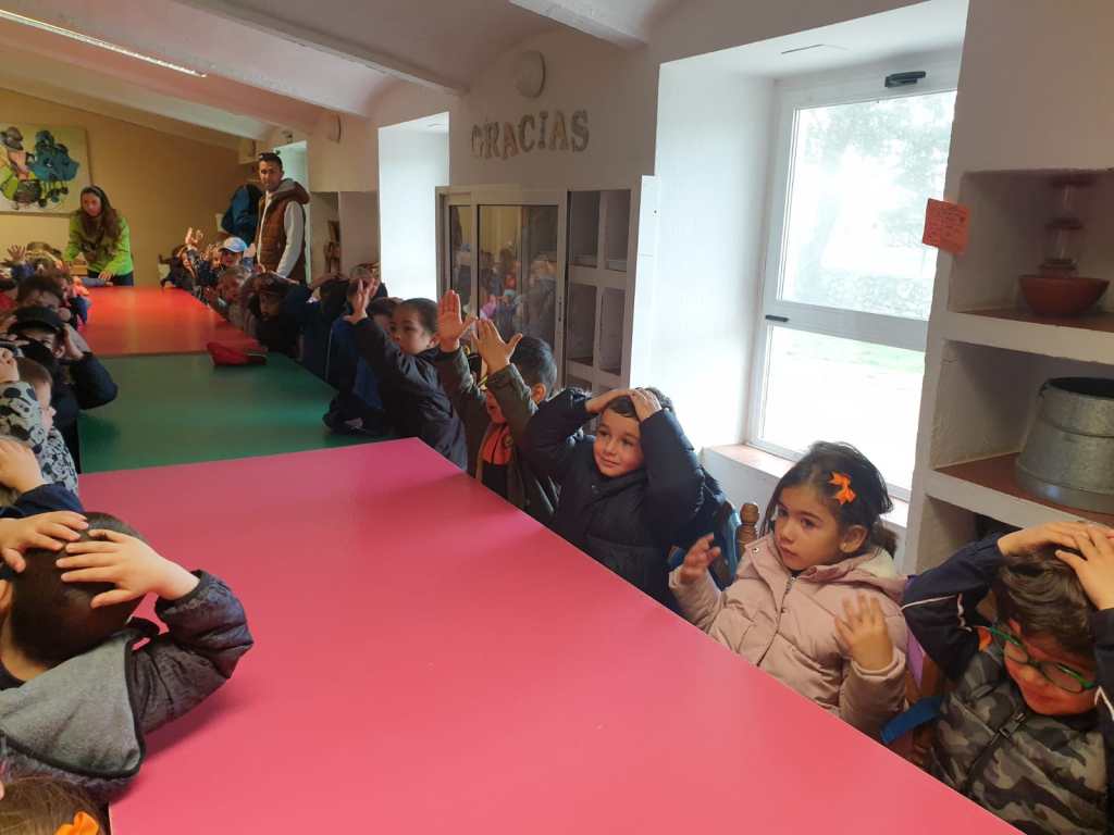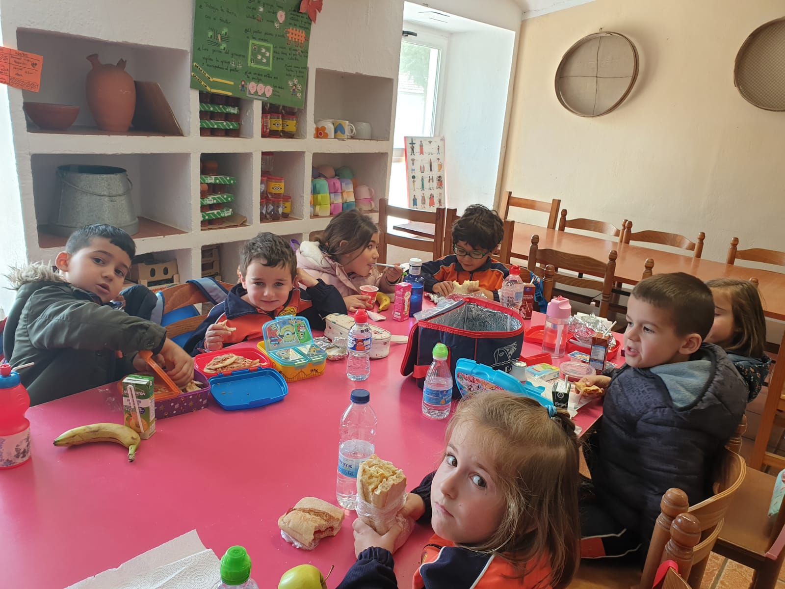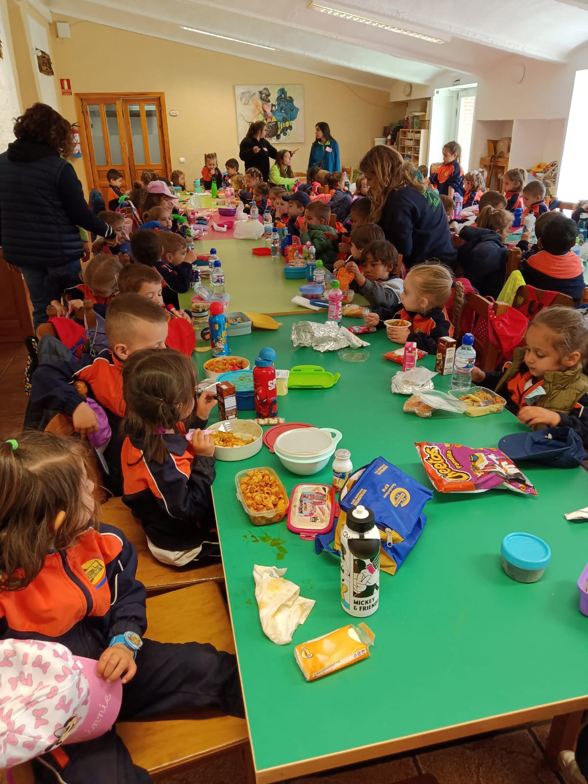 Llegó la hora de la comida, los mayores comimos todos juntos en un salón y los más pequeños junto con los alumnos de 2º lo hicimos ayudados por los monitores y nuestros profesores.