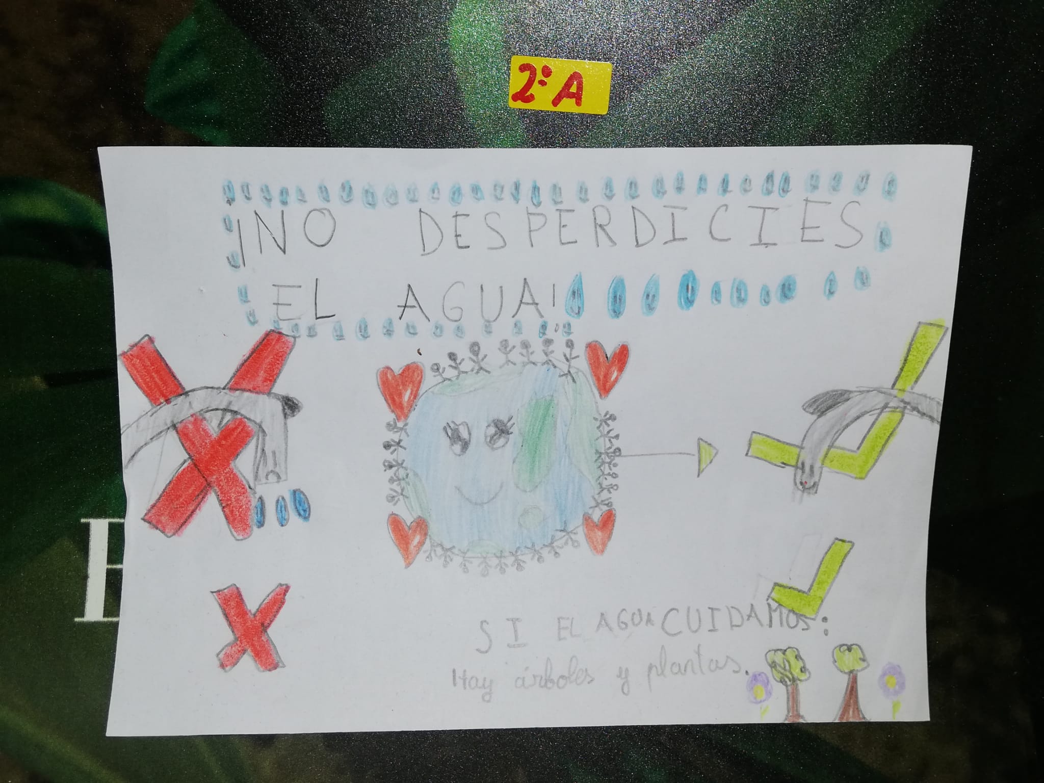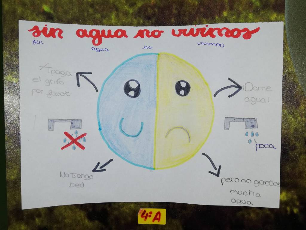 Bajo el lema “ El agua, un recurso escaso”, todos los alumnos/as de Educación Infantil y Primaria salieron al patio del colegio para dibujar las ideas que surgían de sus lapiceros, pinturas y rotuladores. Después de poco más de una hora los trabajos de los niños/as dejaban ver su creatividad y su compromiso con un día tan especial que ya forma parte de su rutina anual.
