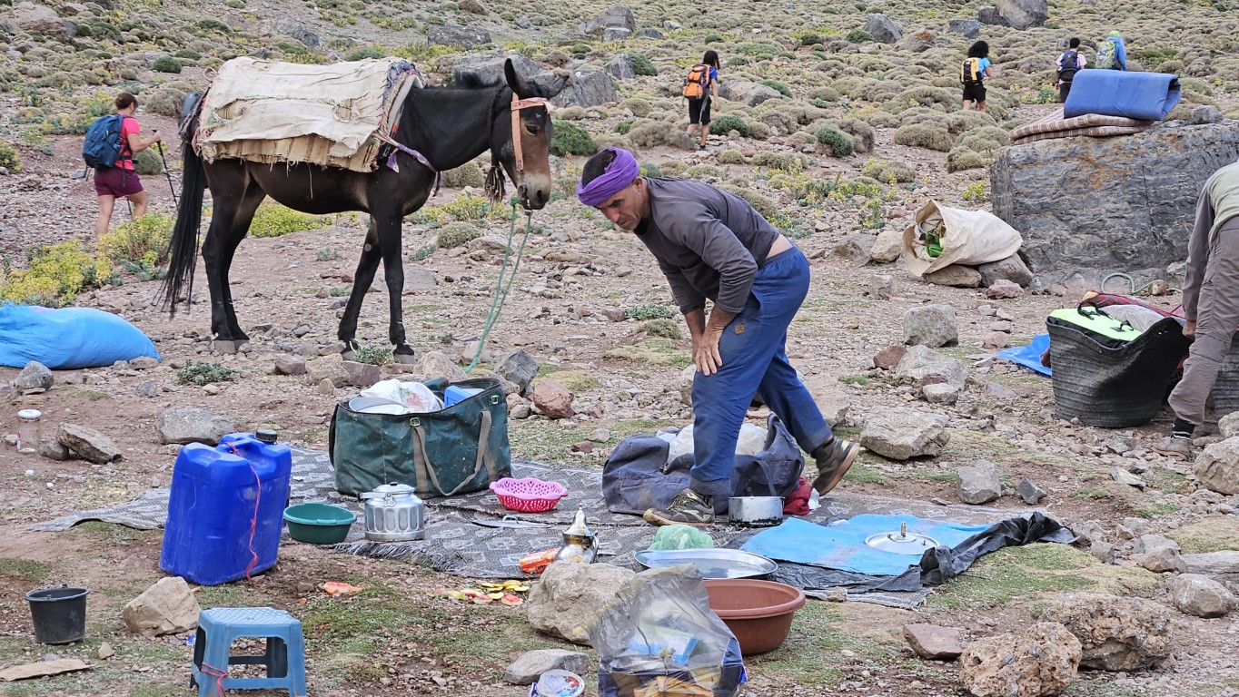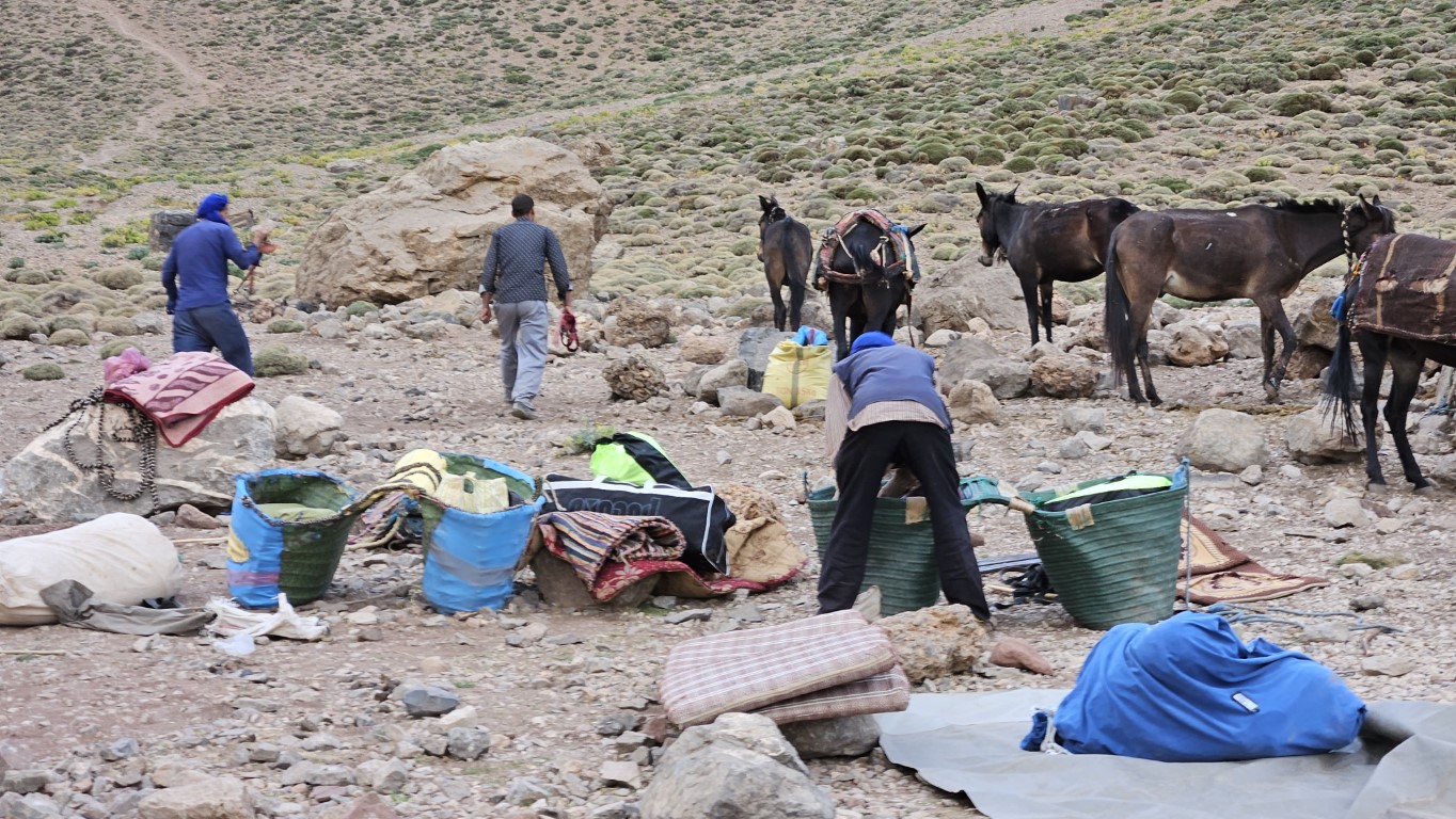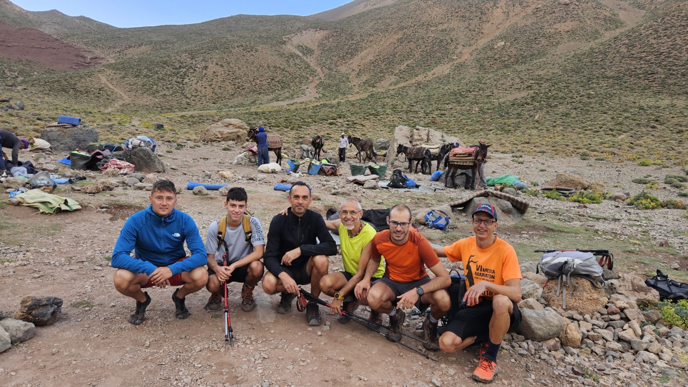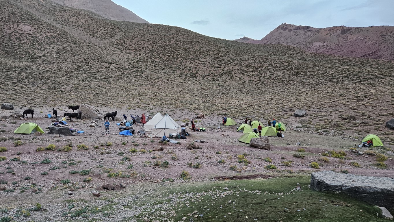 Todos comienzan a salir de sus tiendas y a desperezarse. Un va a ser un día de transición para aproximarnos al M Goun. Transición entre comillas, por que nos vamos a chupar más de 20 kilómetros con más de 1000 metros de desnivel.