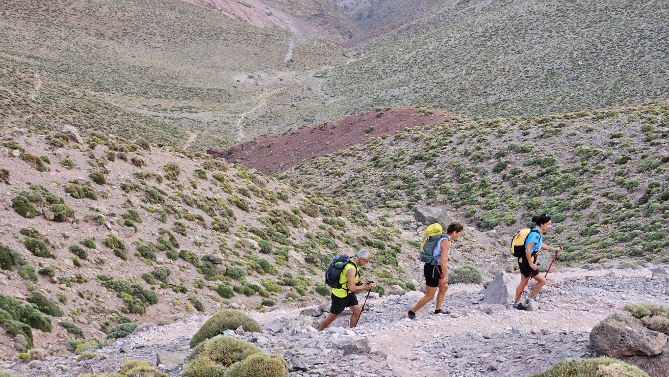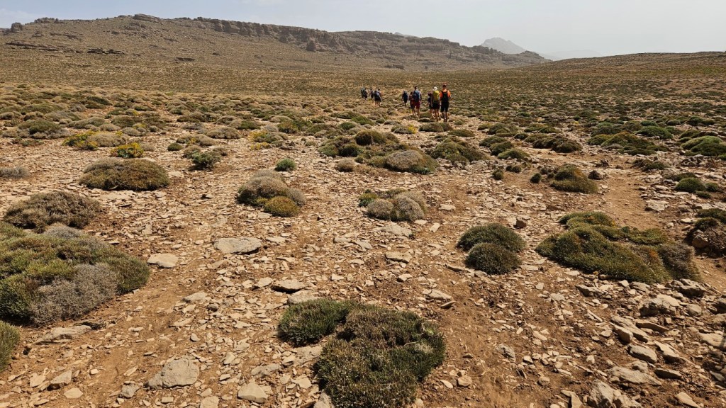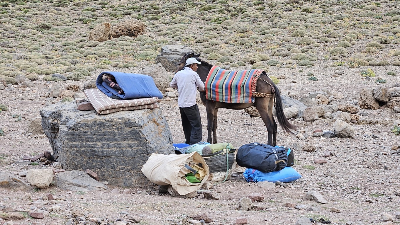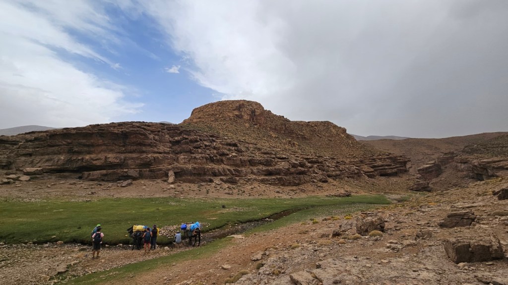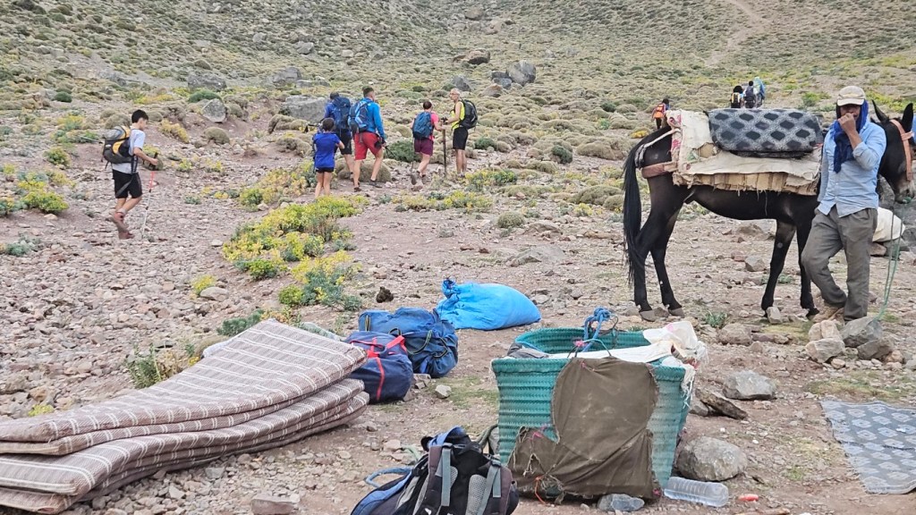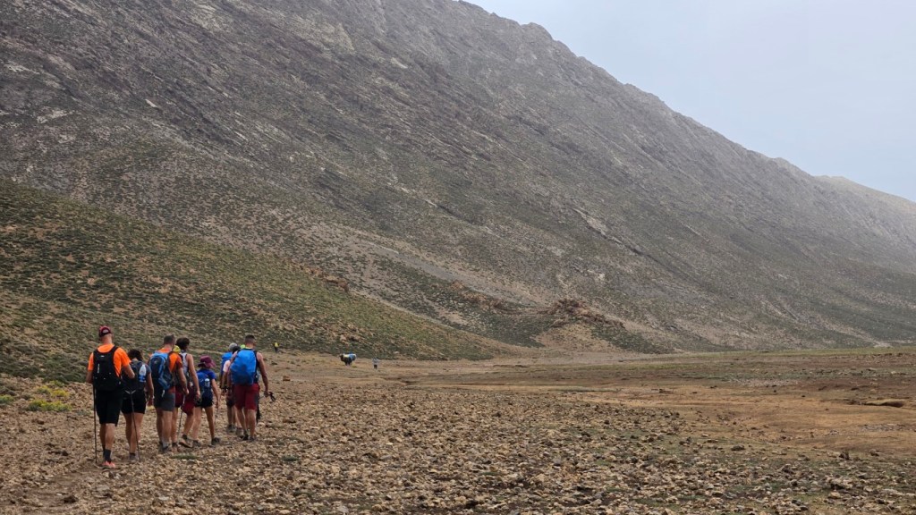 Todos comienzan a salir de sus tiendas y a desperezarse. Un va a ser un día de transición para aproximarnos al M Goun. Transición entre comillas, por que nos vamos a chupar más de 20 kilómetros con más de 1000 metros de desnivel.