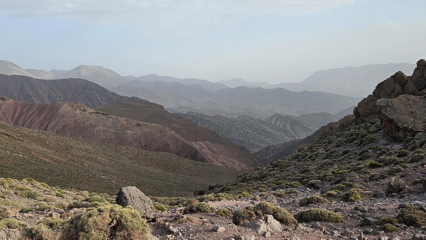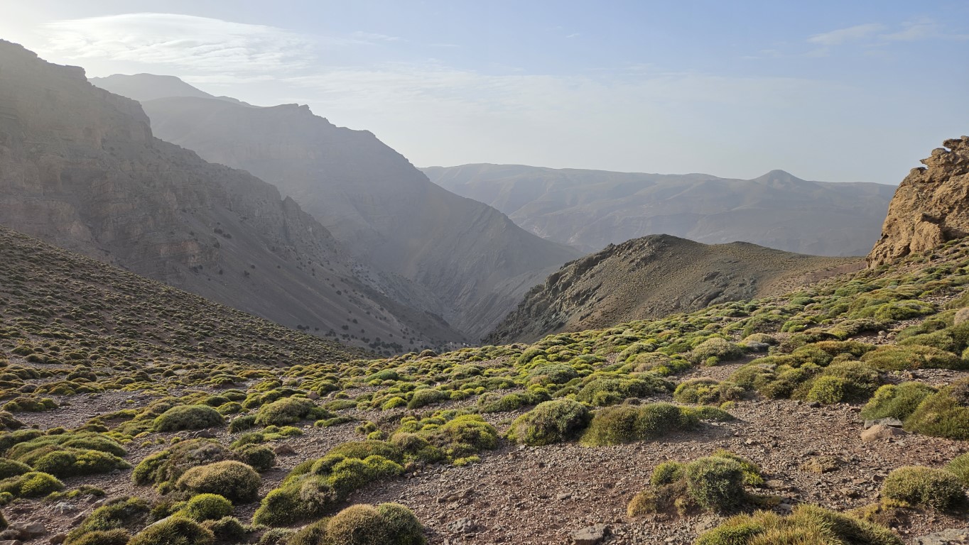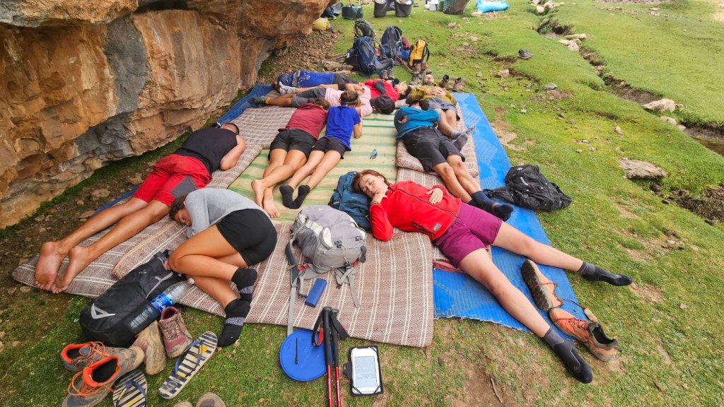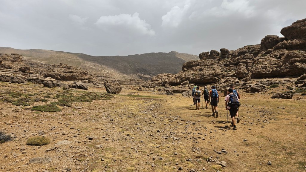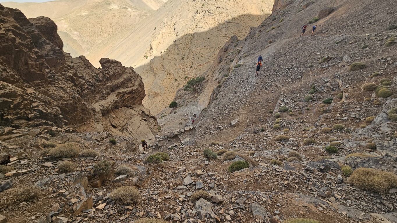 Todos comienzan a salir de sus tiendas y a desperezarse. Un va a ser un día de transición para aproximarnos al M Goun. Transición entre comillas, por que nos vamos a chupar más de 20 kilómetros con más de 1000 metros de desnivel.