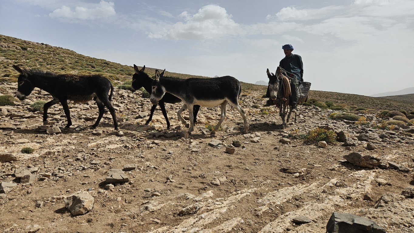 A partir de aquí descendemos hasta la llanura de Terkeditt. Por el camino nos vamos encontrando varios mujeres nómadas en búsqueda de agua, lugareños con mulas que van al pueblo más cercano o niños pidiéndonos bolígrafos, medicinas o algunos algo para comer.