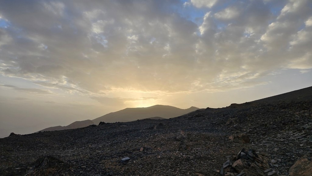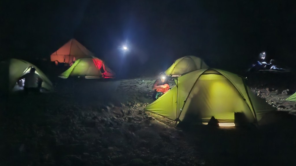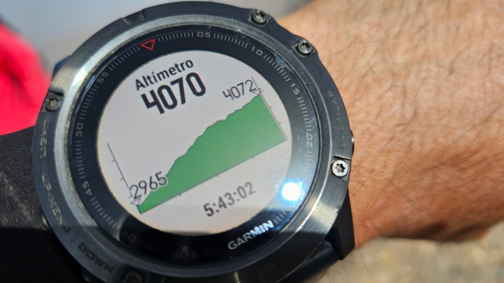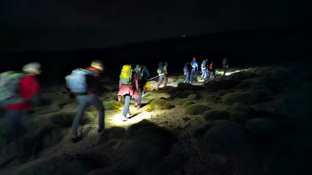 La subida principal la realizamos de noche, ascendiendo 1300 metros en aproximadamente 6,5 kilómetros, llegando a los 3986 de altitud. ¡Duro!