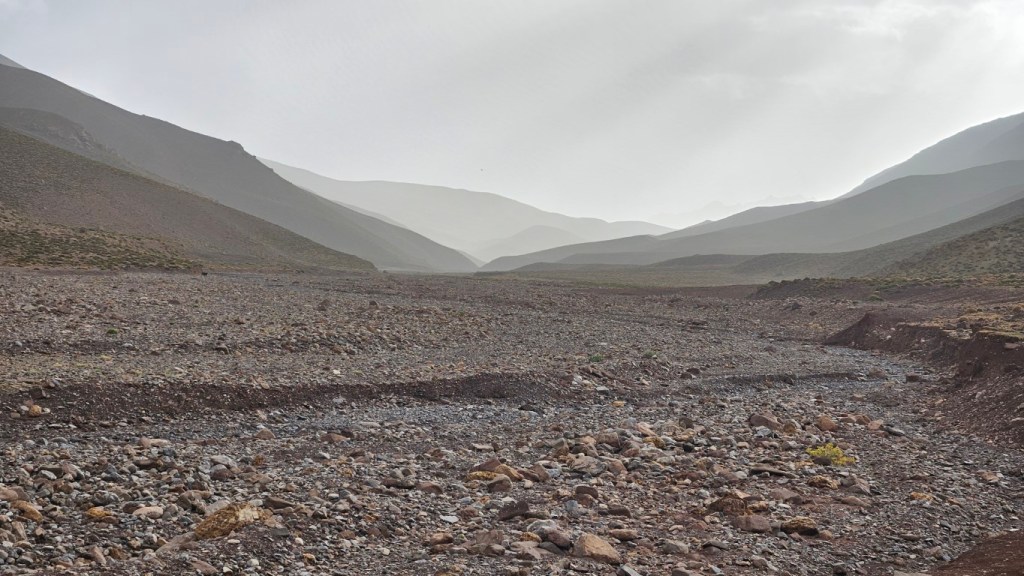 De repente, unos nubarrones se sitúan encima de nosotros descargando una tormenta que dura unas pocas horas. Todo lo que habíamos lavado y tendido tenemos que recogerlo e irá mojado mañana. Ya es casualidad. Estas tormentas de verano parece que son muy comunes en el Alto Atlas.