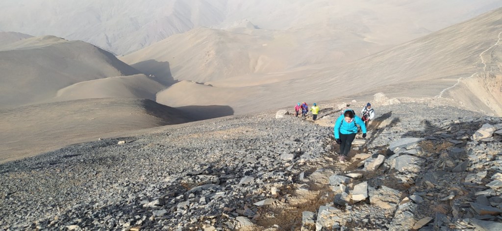 Después de desayunar, lavarnos los dientes y dejar listos los petates que se llevarán las mulas, comenzamos la ascensión. Es una subida bastante larga pero muy sencilla, sin ningún paso técnico.