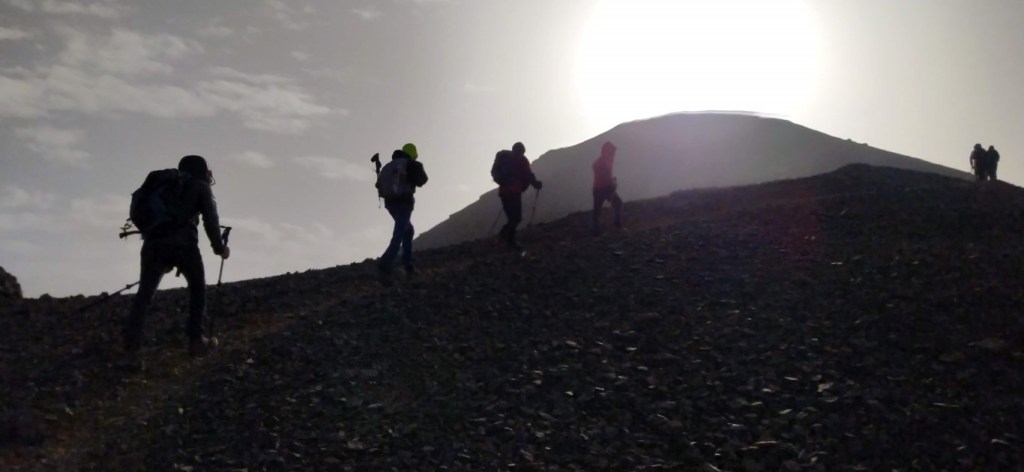 Pues como el día anterior no he dormido prácticamente nada, no. Pero no importa. Hoy subimos al Ighil M’Goun, una cima que se eleva hasta los 4.071 metros sobre el nivel del mar. Es el cuarto pico más alto de la cordillera del Atlas (Después de Toubkal, Timzguida y Ouenkrim). Nos espera una cima realmente espectacular.