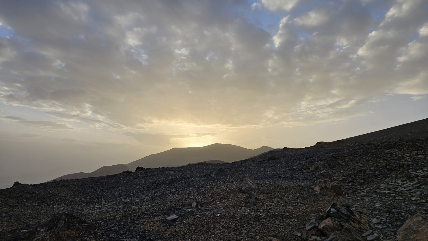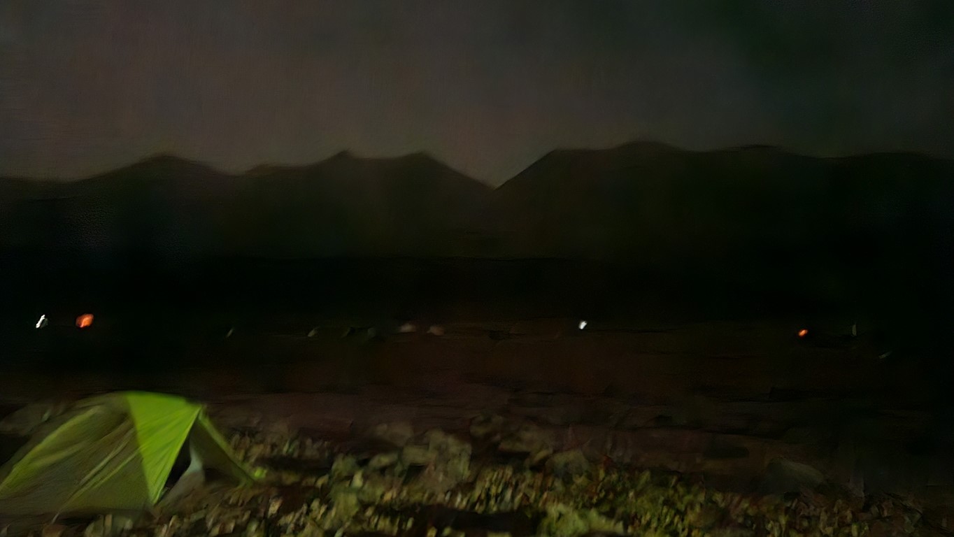 Nos levantamos a las 4:30. Es noche cerrada por lo que debemos llevar los frontales en todo momento. Todavía con las legañas en los ojos vamos a la haima a desayunar. Definitivamente el pan ha dejado su consistencia para convertirse en una masa indefinida. Pero el día será duro, por lo que debemos alimentarnos adecuadamente.