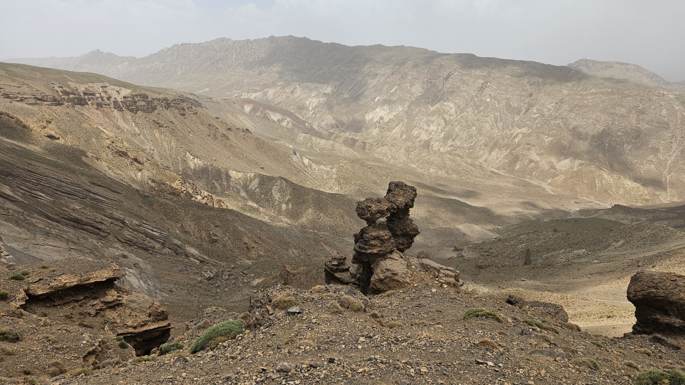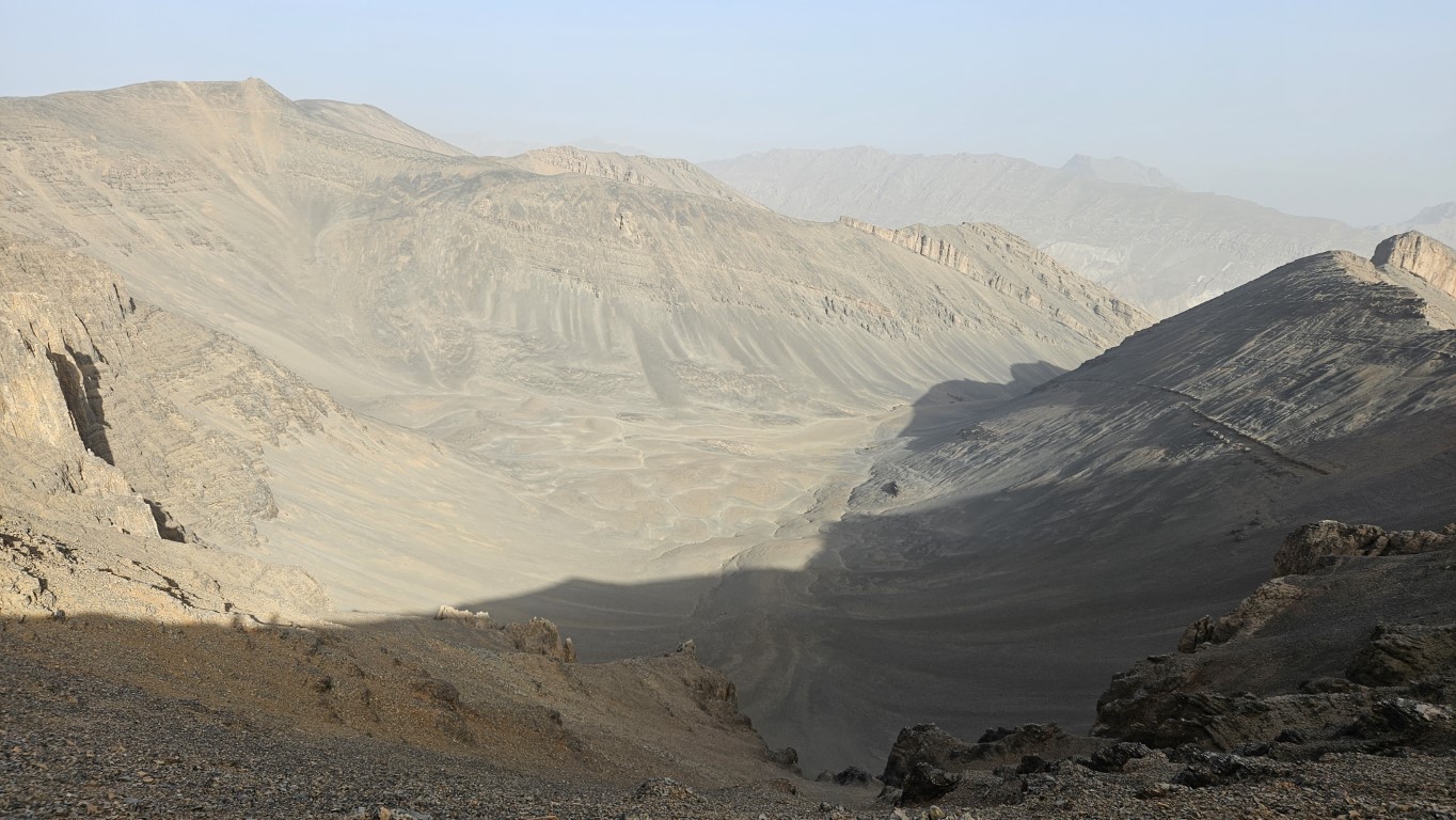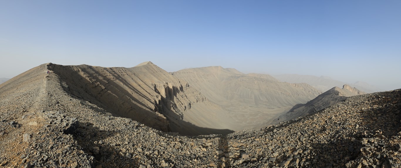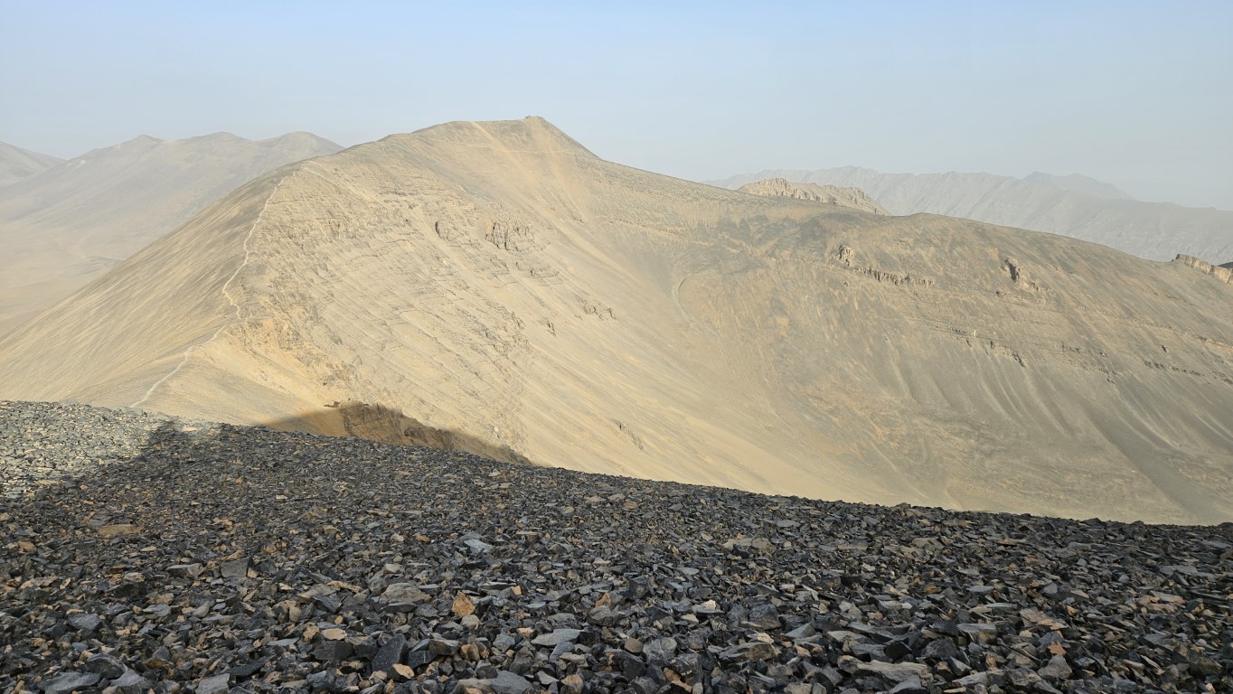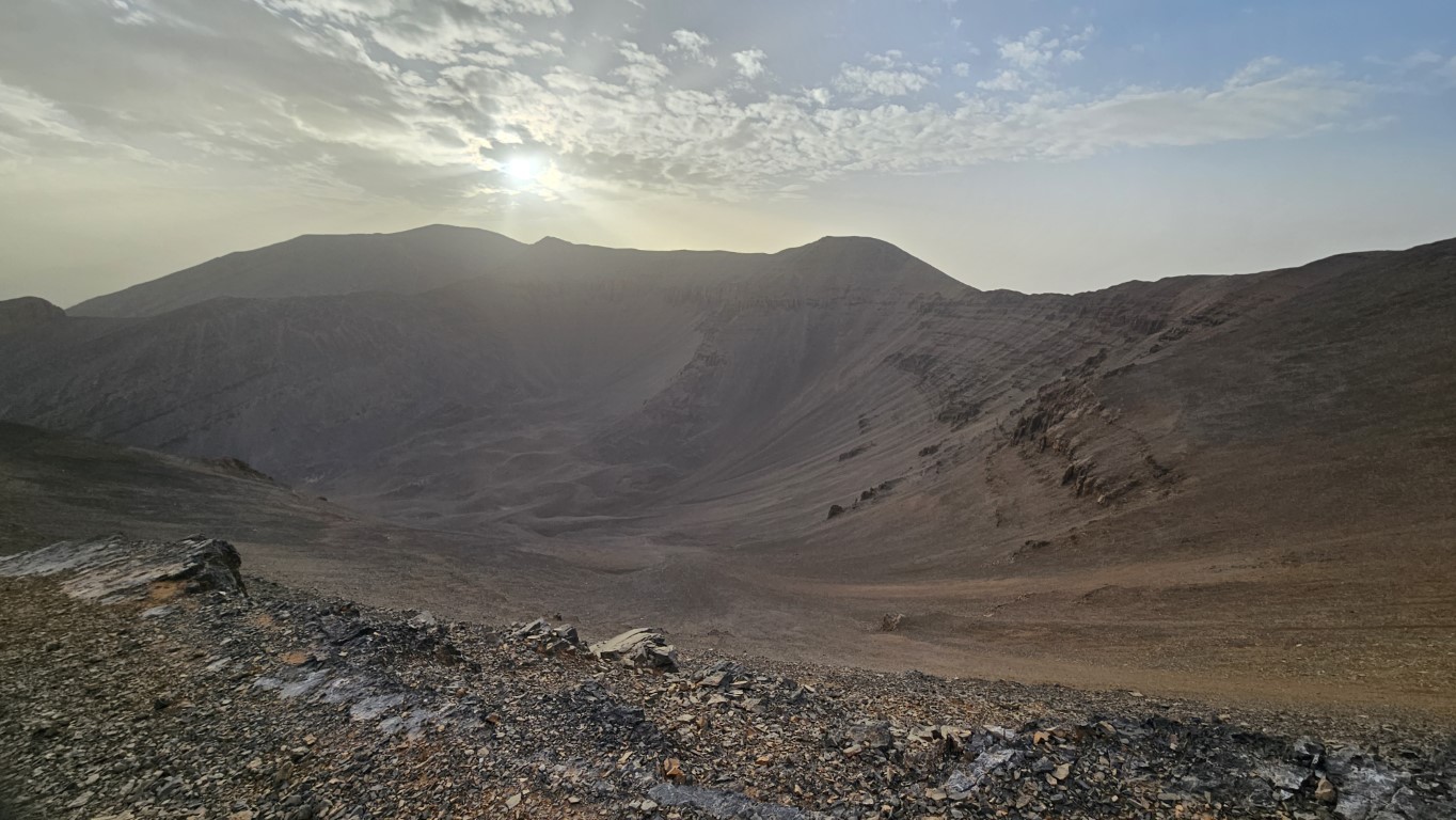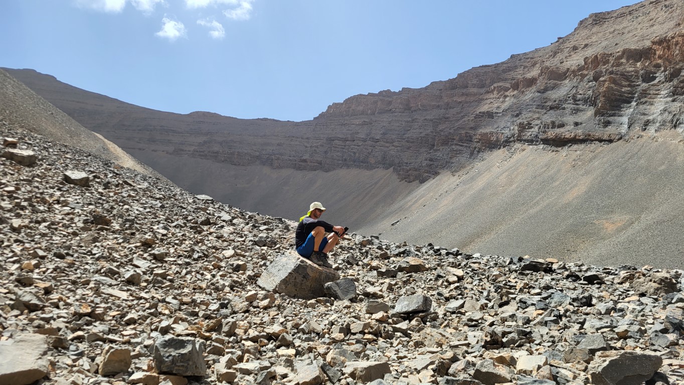 Después de los besos y abrazos, un sinfín de fotografías para la familia e hidratarnos adecuadamente, comenzamos el descenso. Los primeros kilómetros de bajada son a través de una gran pedrera. Al principio bastante empinada pero que rápidamente pierde inclinación. Bajamos con mucha precaución debido a la gran cantidad de piedras sueltas que hay en la bajada. ¡Pero que demonios! De repente, pidiendo permiso a Mohamed, me lanzo a toda velocidad deslizándome por la fuerte pendiente. Es mucho más rápido y lo más importante, más divertido. ¿Dónde va este loco?