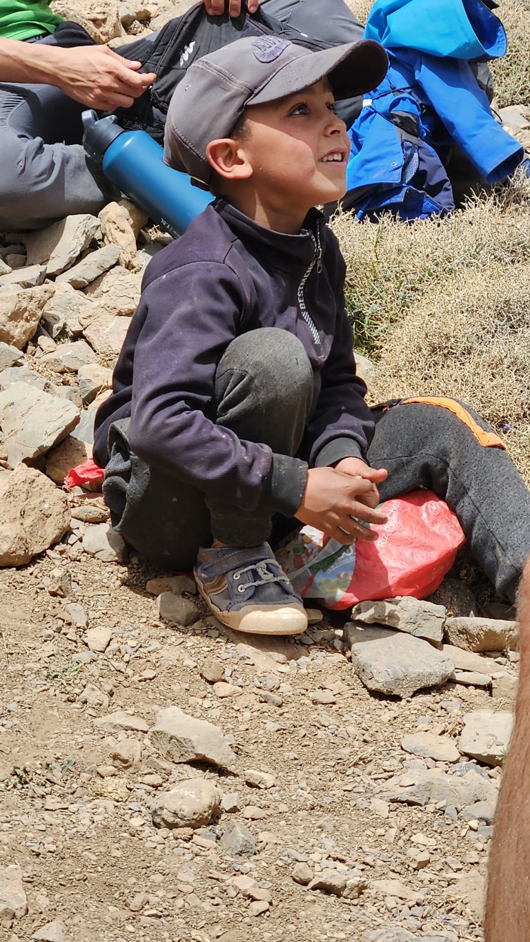 Por el camino nos encontramos multitud de niños y niñas, vendiendo o pidiéndonos multitud de cosas. Estos chavales y chavalas pertenecen a comunidades que practican un estilo de vida pastoral y nómada en las montañas del Alto Atlas de Marruecos. Se dedican principalmente a la ganadería, como la cría de ovejas, cabras y ocasionalmente otros animales, y siguen un patrón de movimiento estacional en busca de pastos frescos y agua para su ganado. No tienen una residencia fija y se desplazan según las estaciones y las necesidades de su ganado.