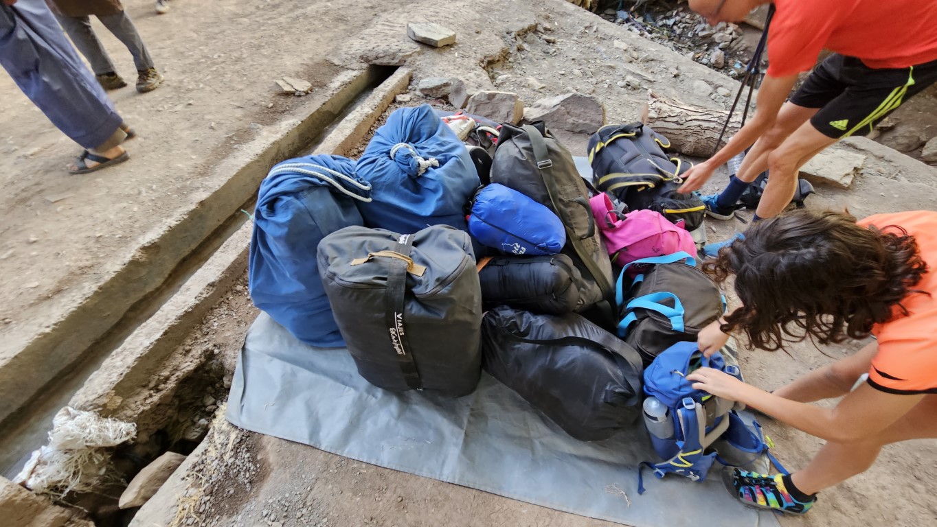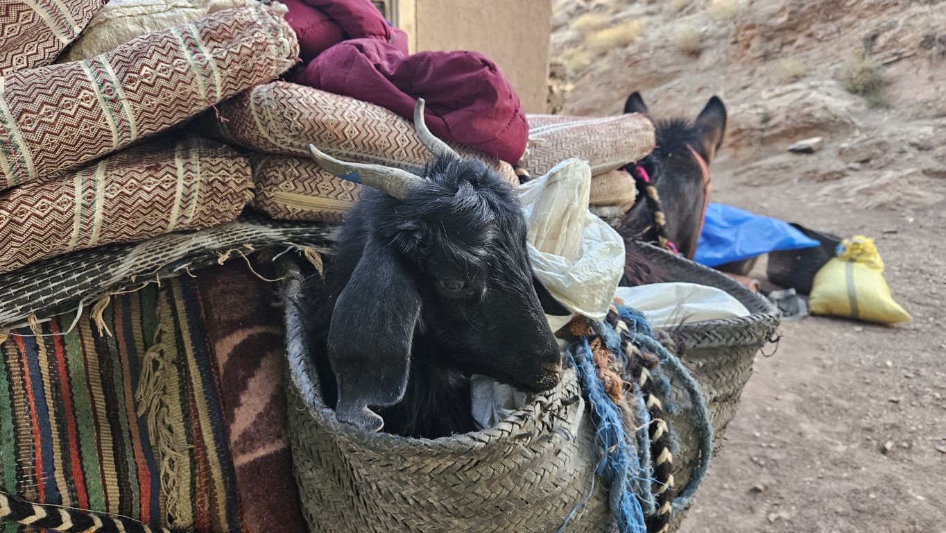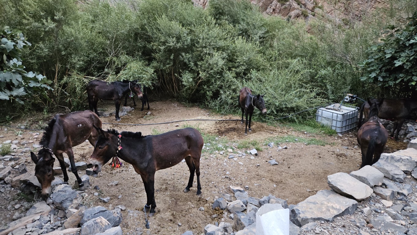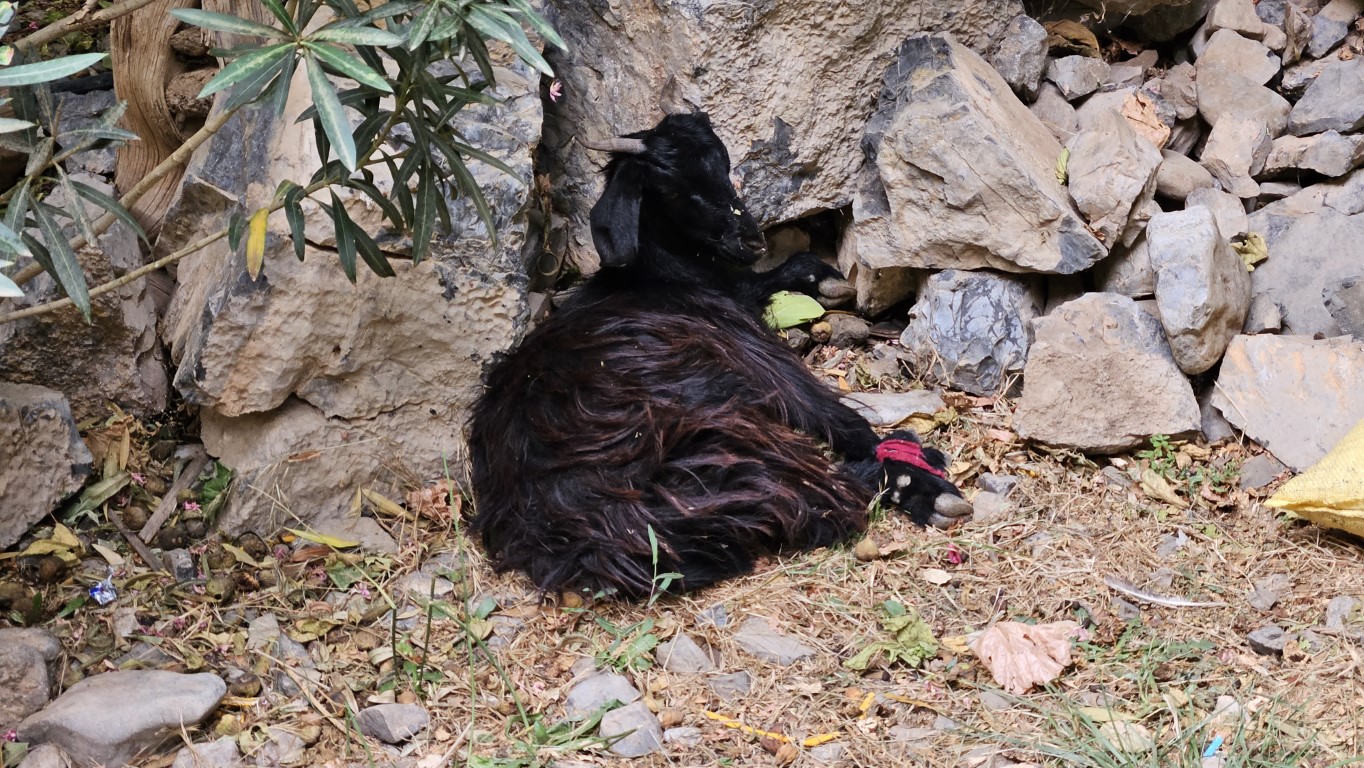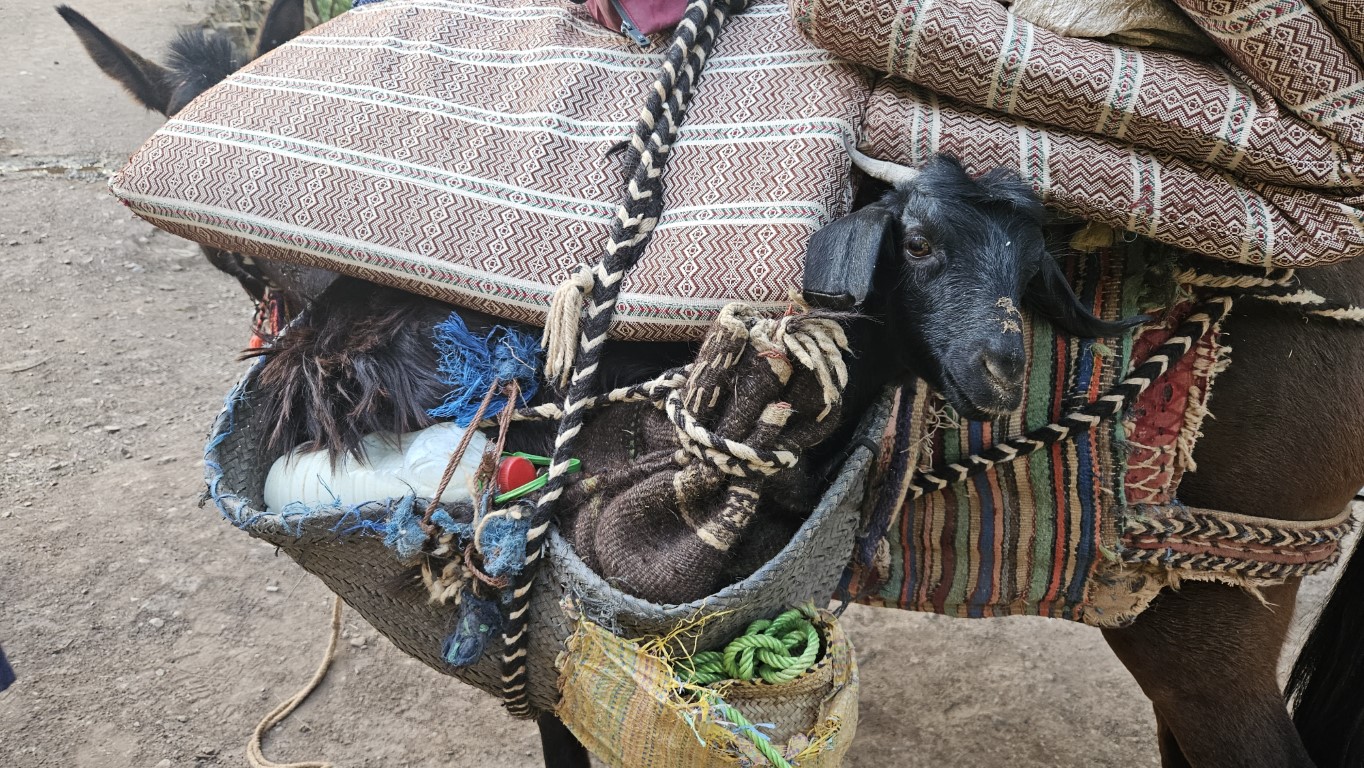Preparamos nuestros macutos como cada mañana para que puedas ser transportados por las mulas y de pronto nos damos cuenta de que tenemos compañía. Los muleros han realizado sus negociaciones y nos llevamos un par de cabritillos para cenar esta noche. que pena me está dando…