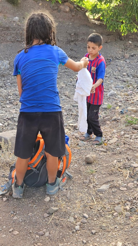 Seguimos camino para llegar a nuestro destino: la entrada al Cañón del Mgoun. Es el momento de ponerse el calzado para caminar por el agua.