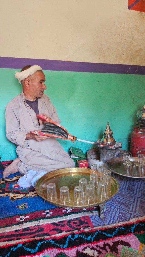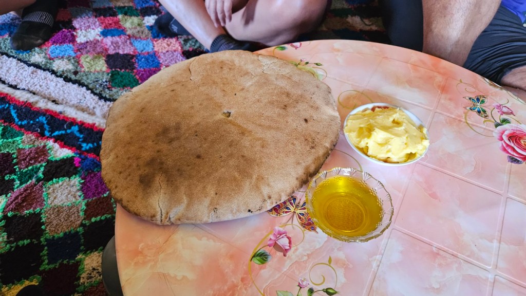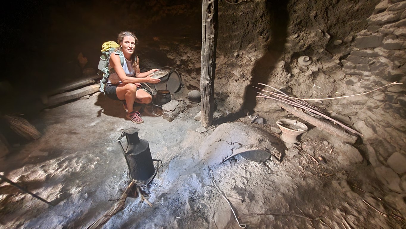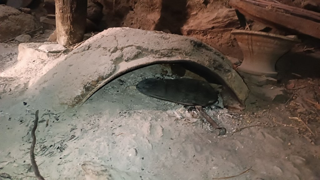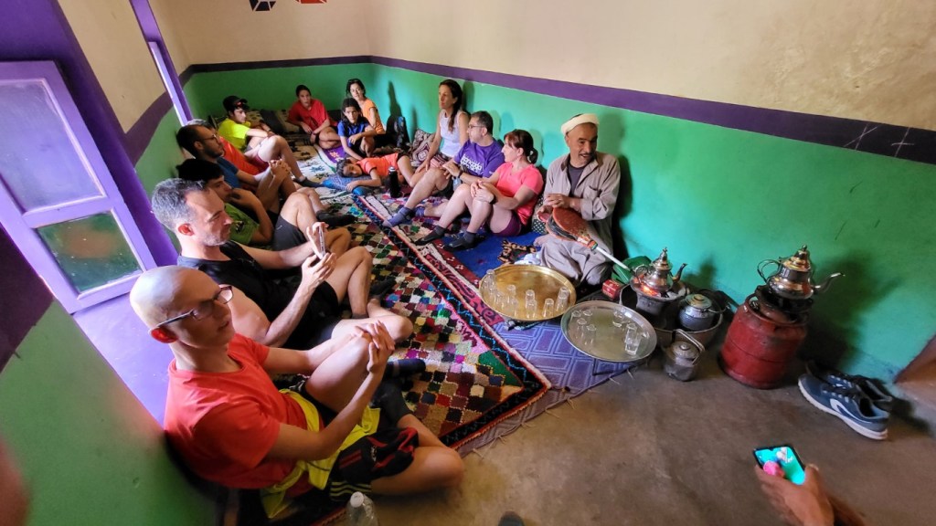 A la hora de estar caminando hacemos una parada técnica para tomar el té en una casa tradicional de la zona. Hacemos una visita a la casa, viendo el bonito horno donde preparan el pan. Nos realizan una demostración de como realizan la preparación del té. Y nos lo acompañan con una especio de mantequilla o queso de cabra y aceite de oliva con pan. Buenísimo todo. Alguno sufrirá las consecuencias por la noche…