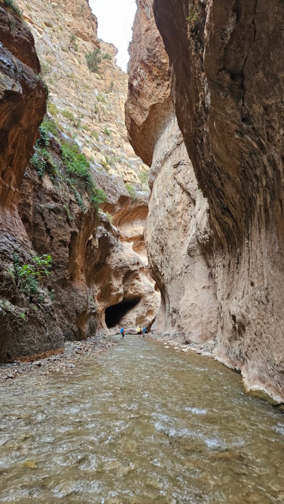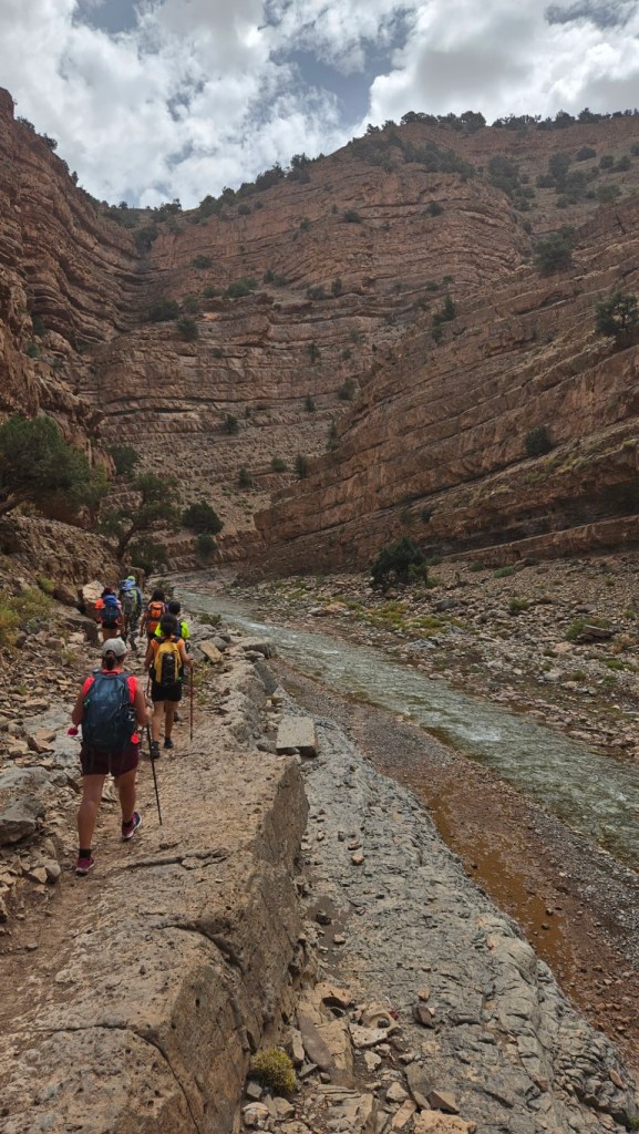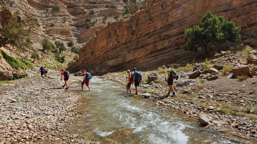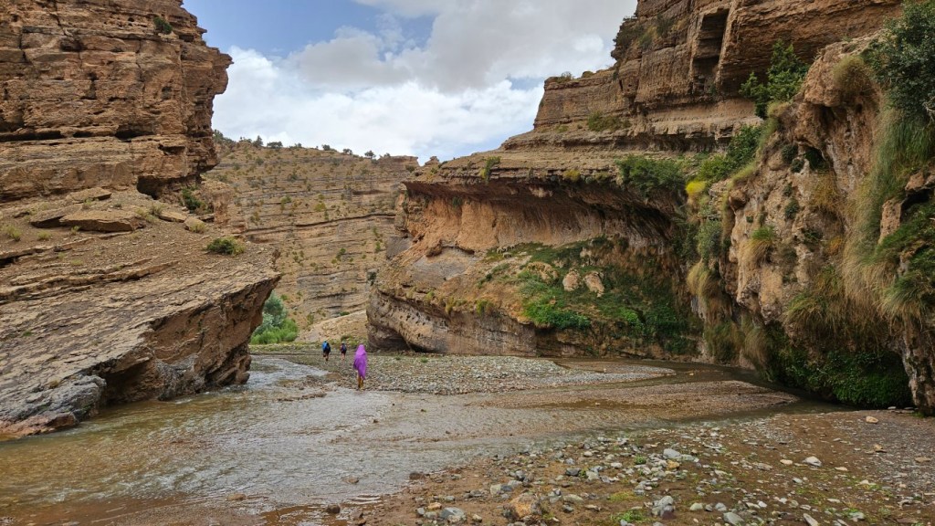 Hoy vamos a atravesar el espectacular Cañón del Mgoun. Para ello deberemos calzarnos unas sandalias de andar o unas deportivas viejas, cualquier cosa pero que sea algo cómodo ya que son varias horas de entradas y salidas del curso del río. Muy importante ir con calcetines