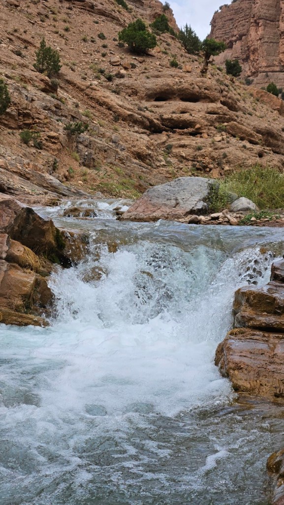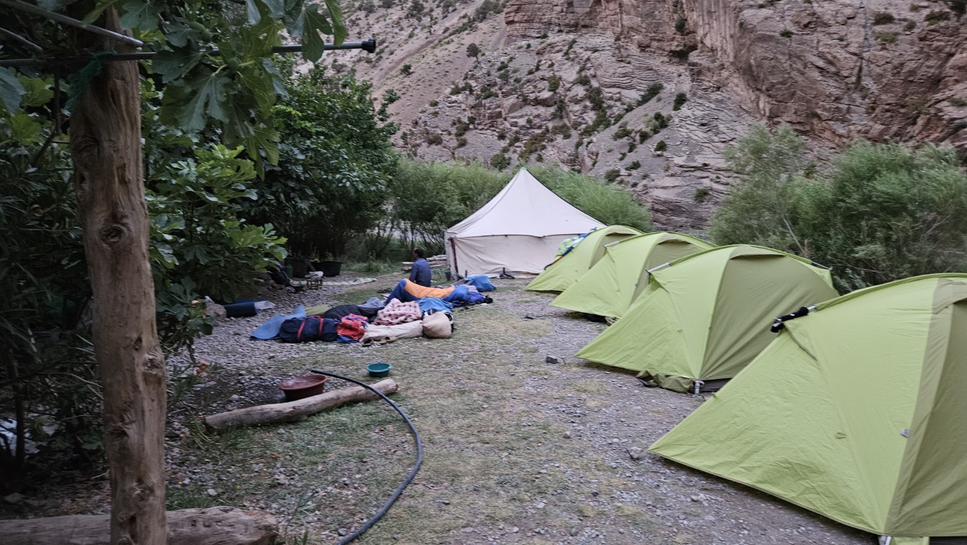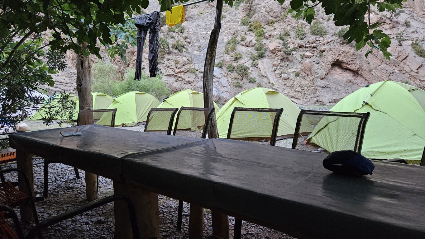 Si todos los lugares donde hemos montado la tienda son espectaculares, Ifasfas no se queda atrás. Rodeados por los muros imponentes del cañón, el sonido del agua y la paz del lugar, sin duda pasaremos una noche