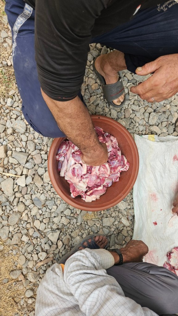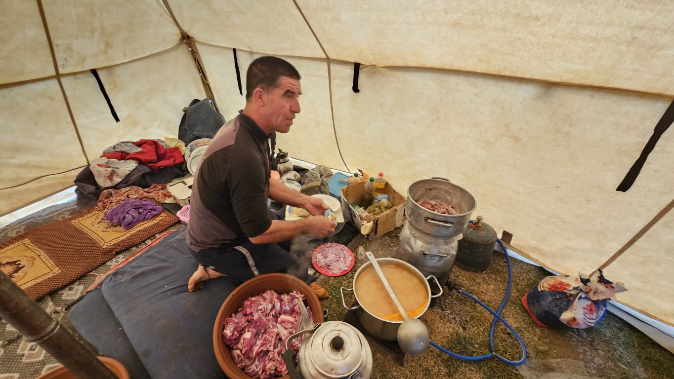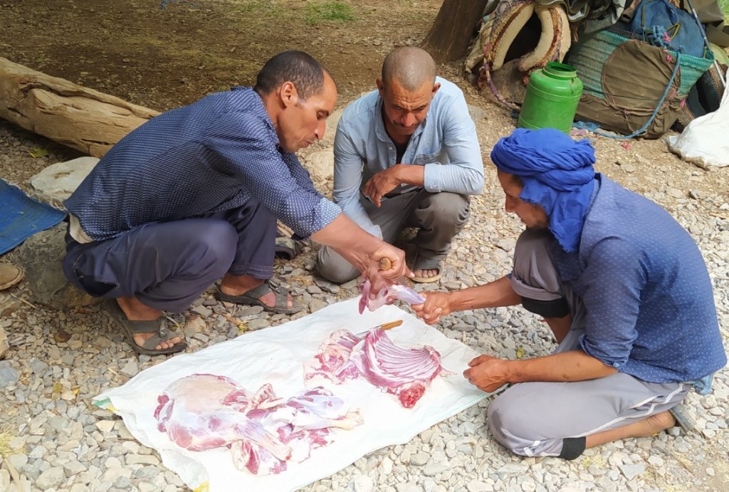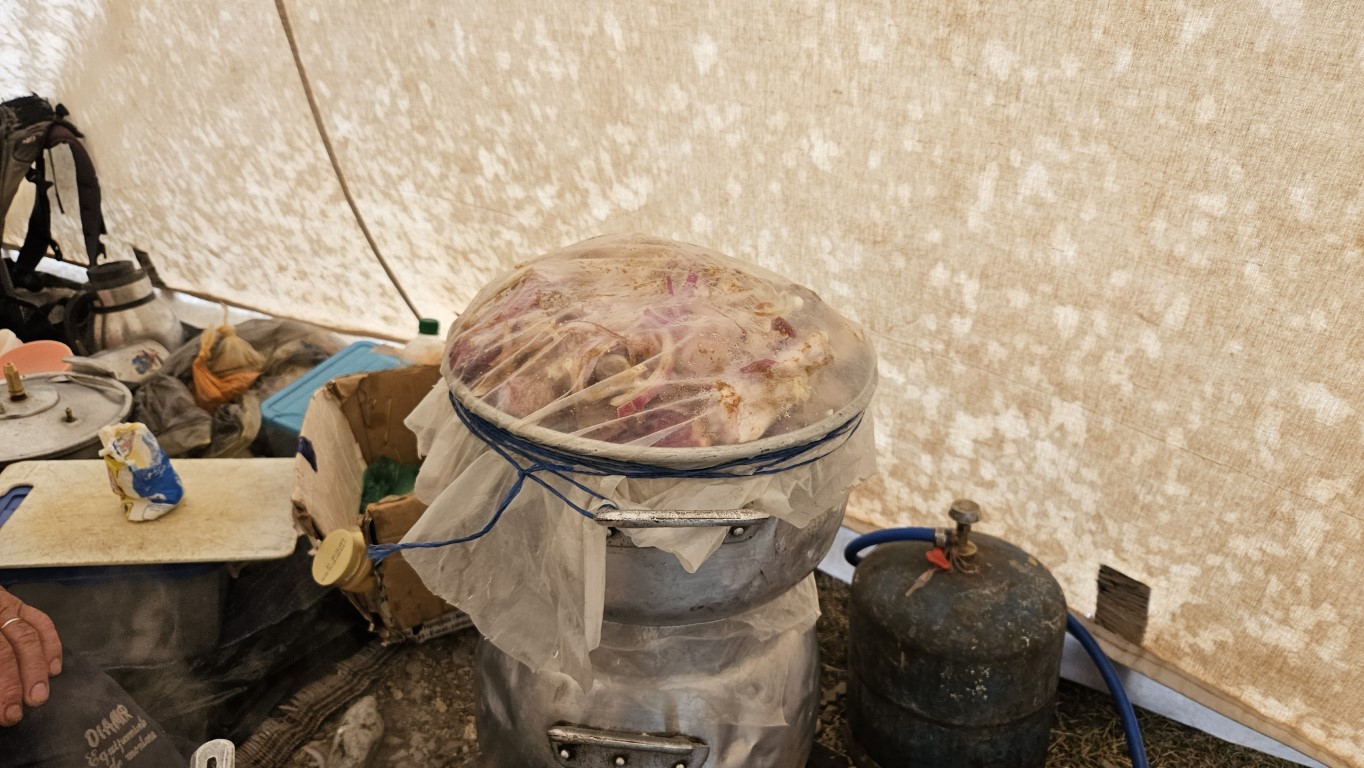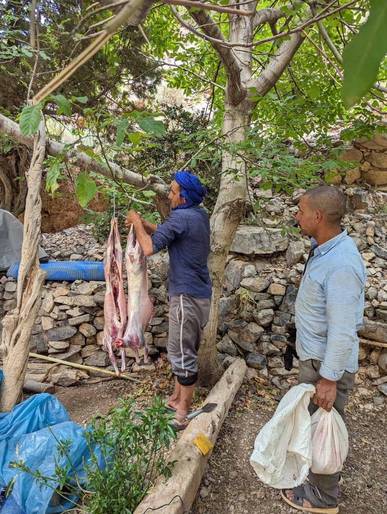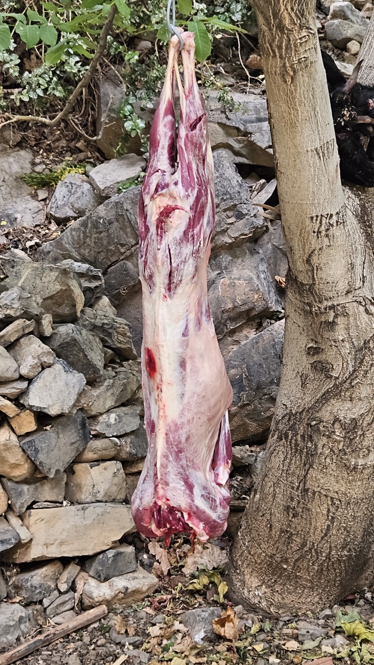 A la llegada ya tenemos las tiendas montadas y los muleros han matado el primero de los cabritillos. El otro nos mira con temor..