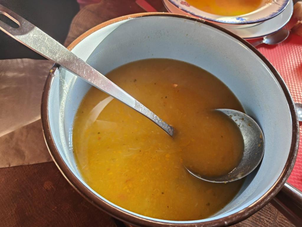 No tiene duchas, el wc no está abierto siempre. Hay limitaciones de agua. Pero el trato y las vistas inmejorables. Algunos compis cogen la camiseta del tour, otros el pasaporte, yo de momento, nada de nada. El tiempo nos acompaña.
