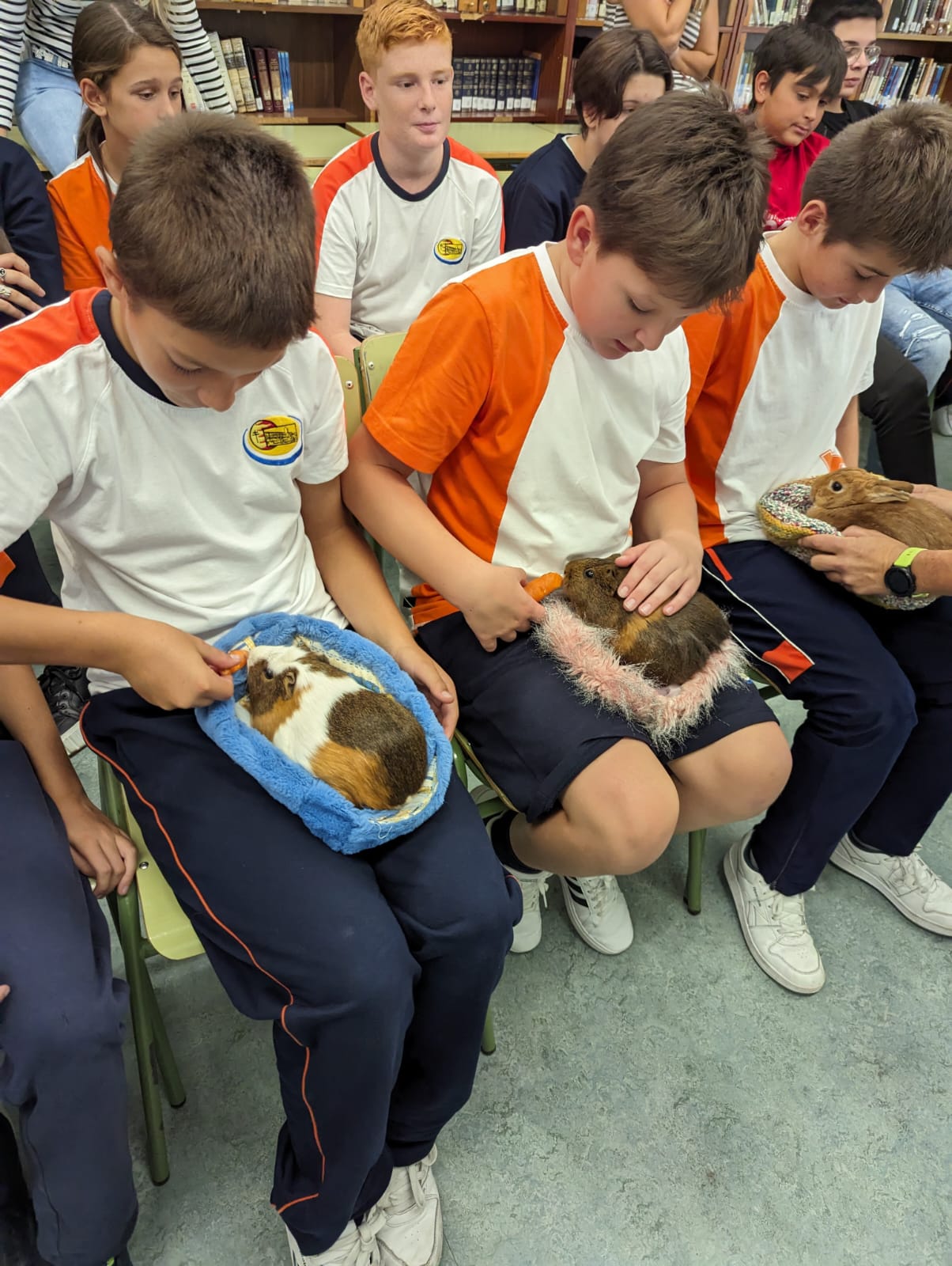 Y no solo eso, nos sumergimos en el reino de los vertebrados. Pudimos ver sapos, cobayas, conejos y gallinas. Aprendimos sobre cómo respetar a todos los animales y, en caso de necesidad, cómo manejarlos sin hacerles daño ni estresarlos. Inma nos dio algunos consejos muy útiles.