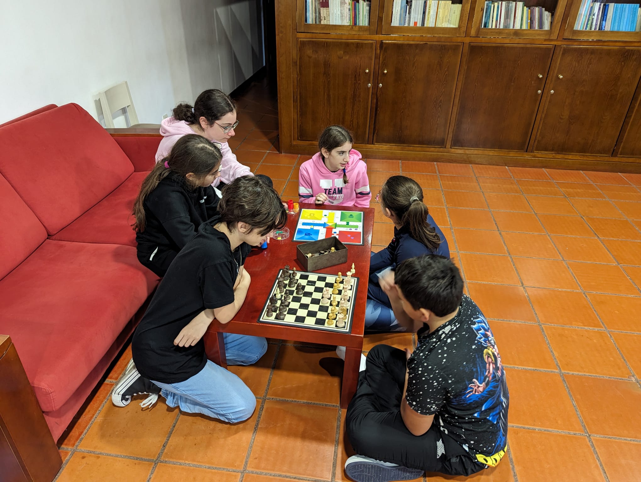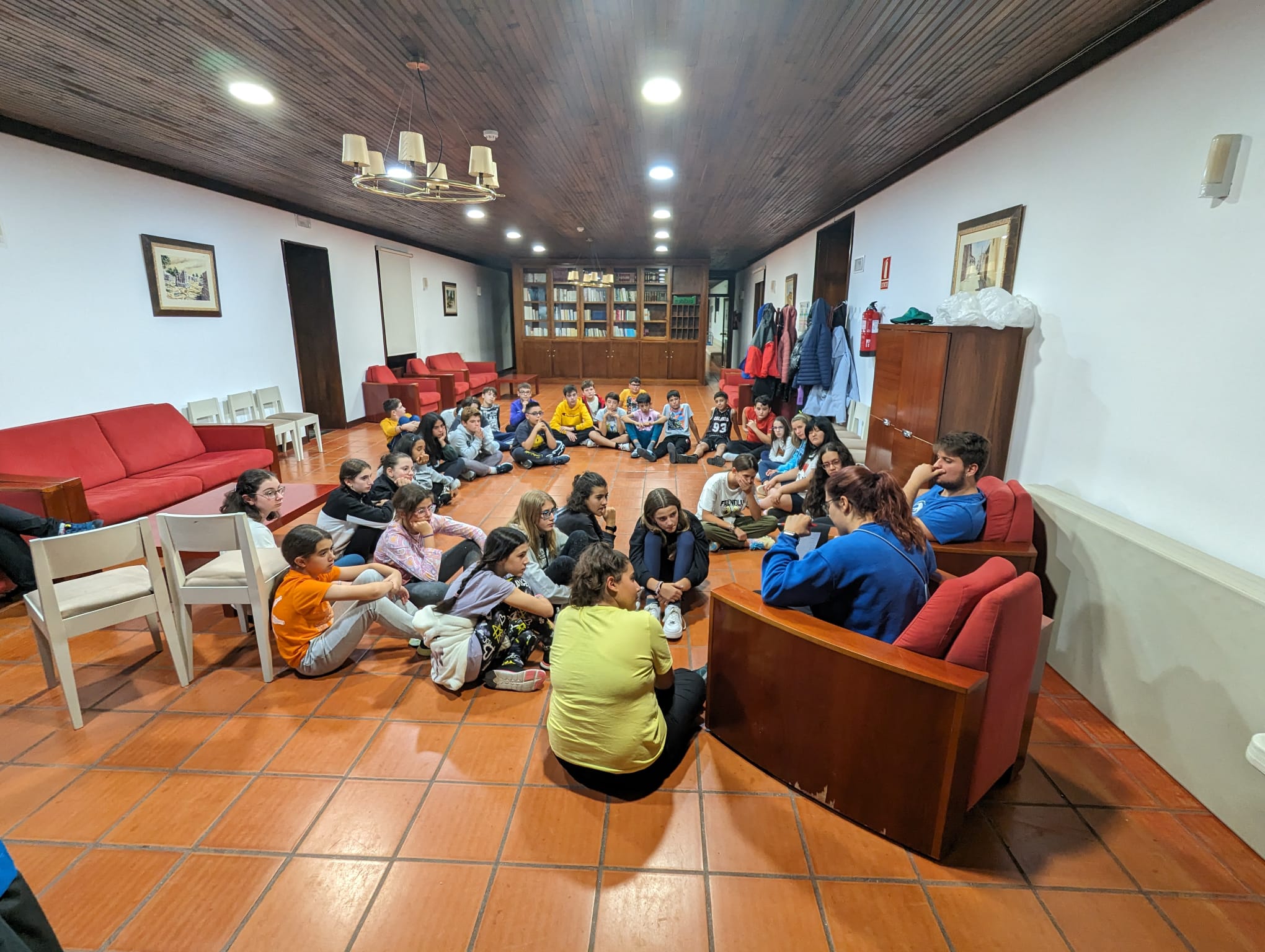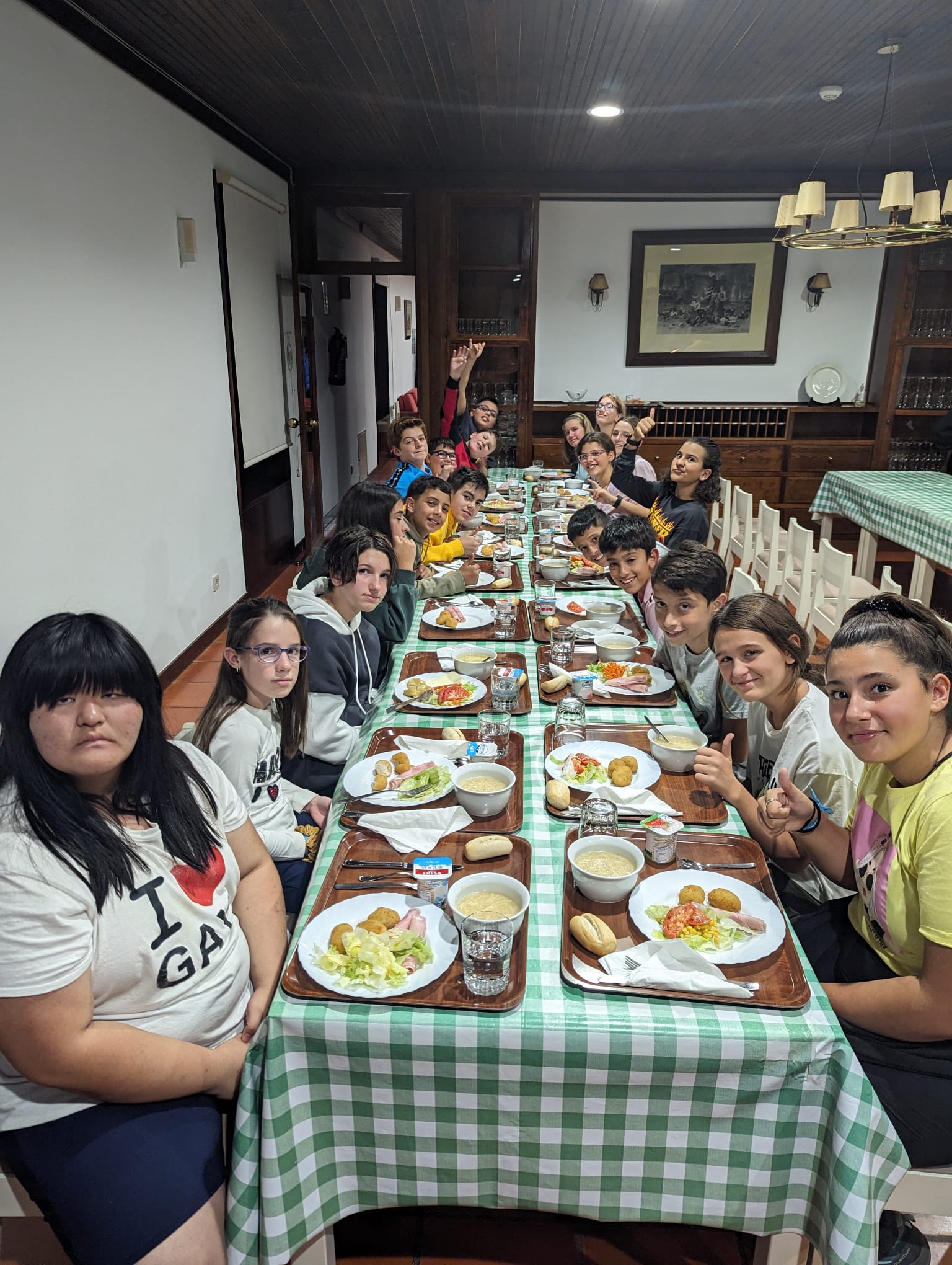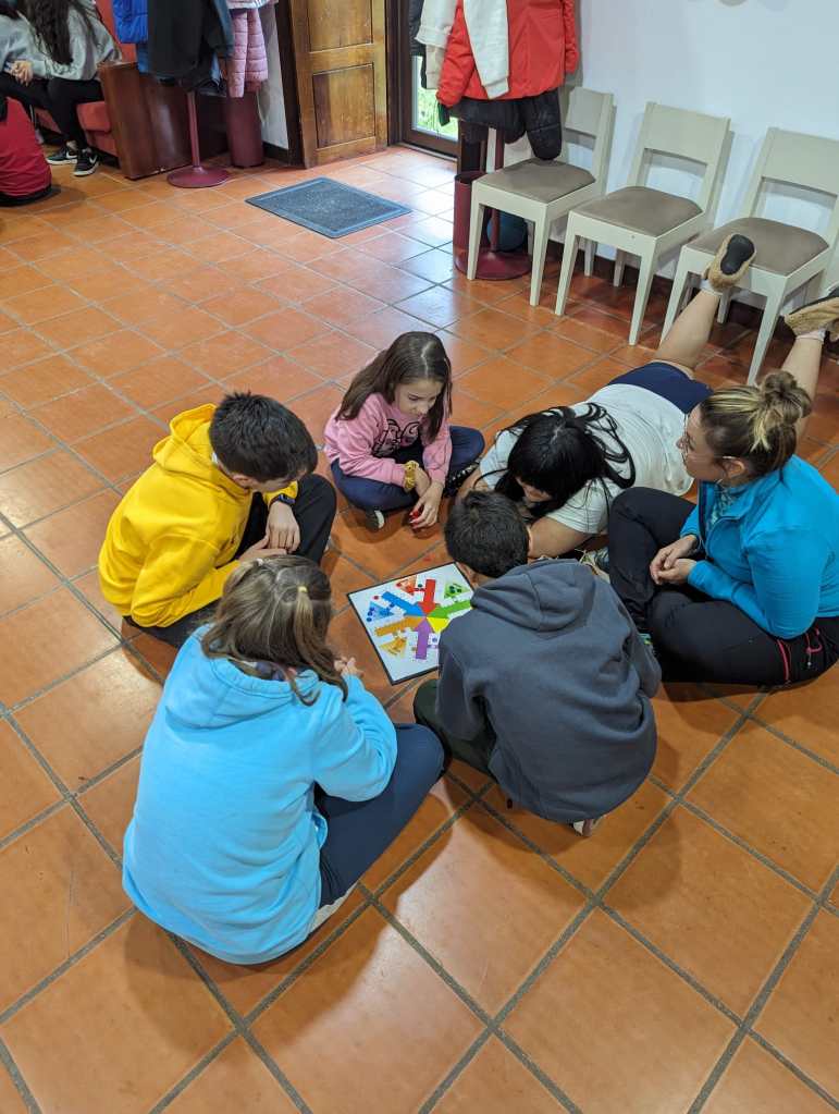 Después de comer deberiamos habernos acercado a la laguna para observar las aves, pero la intensa lluvia hizo que se nos cancelara la actividad. Nos quedamos en las dependencias haciendo talleres y varios juegos