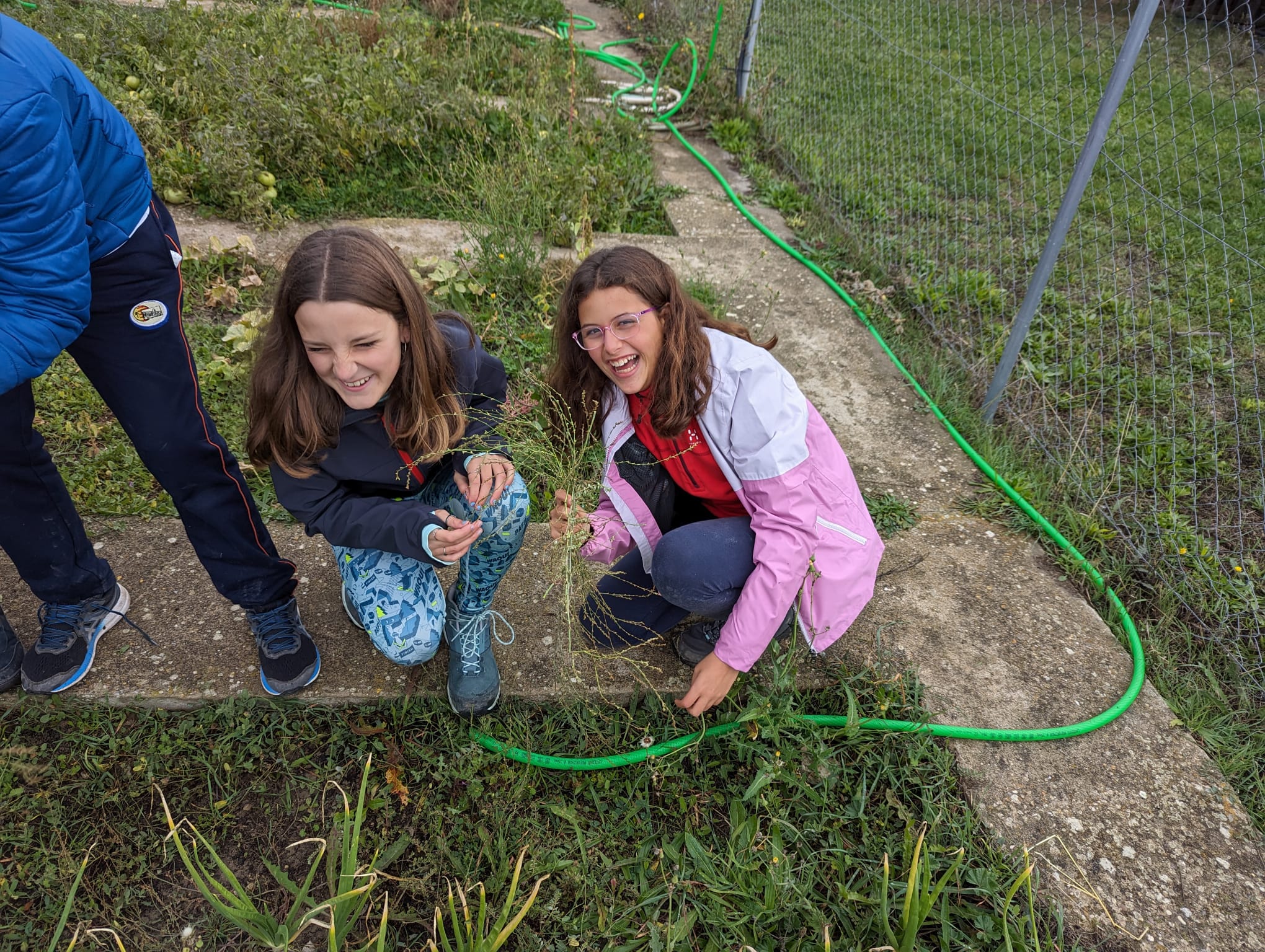 A continuación tocaba el Taller de huerta ecológica, donde las actividades que llevamos a cabo tenían como objetivo principal educarnos en la sensibilidad ambiental contribuyendo al cuidado y mejora del entorno, aprender cómo se cultivan los alimentos, conocer las características de las plantas de las que nos alimentamos, y concienciarnos sobre la necesidad de realizar un uso razonable y sostenible de los recursos naturales. Durante esta actividad promovieron hábitos de alimentación y consumo saludables y respetuosos con el entorno.