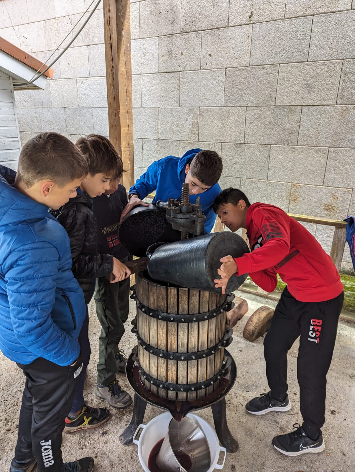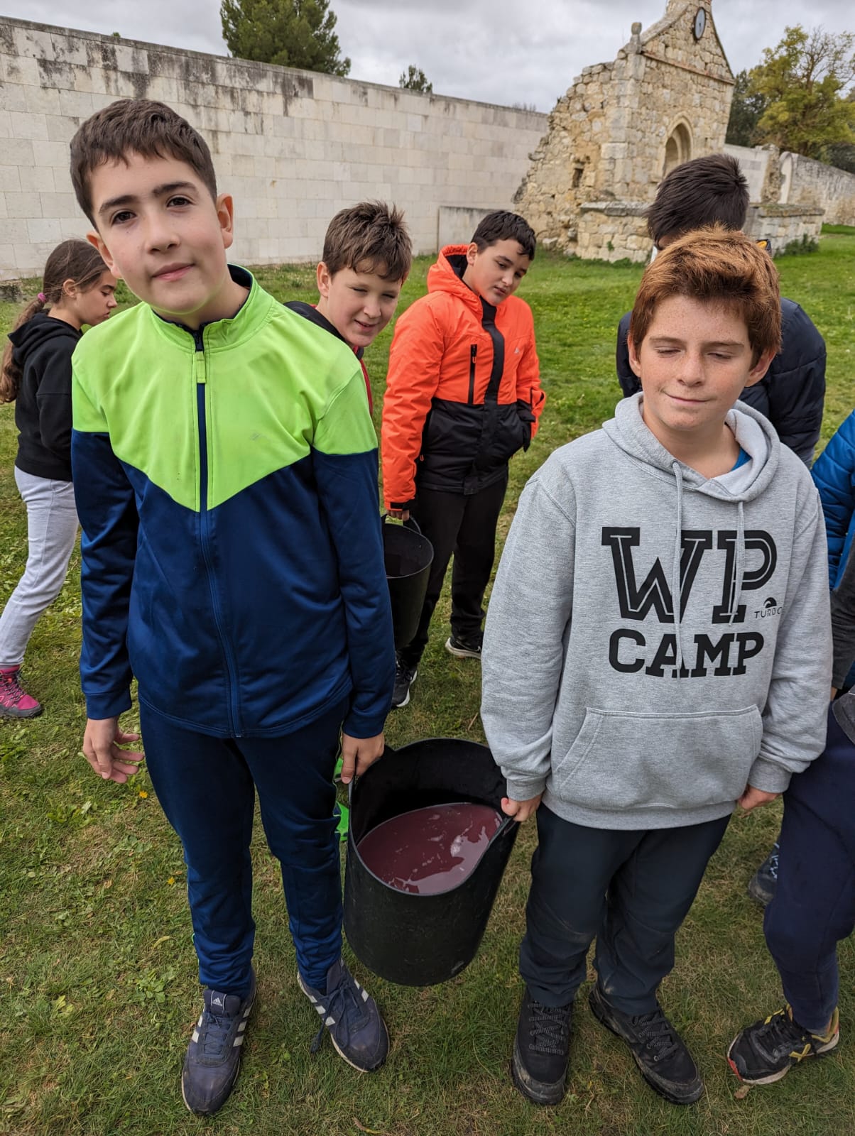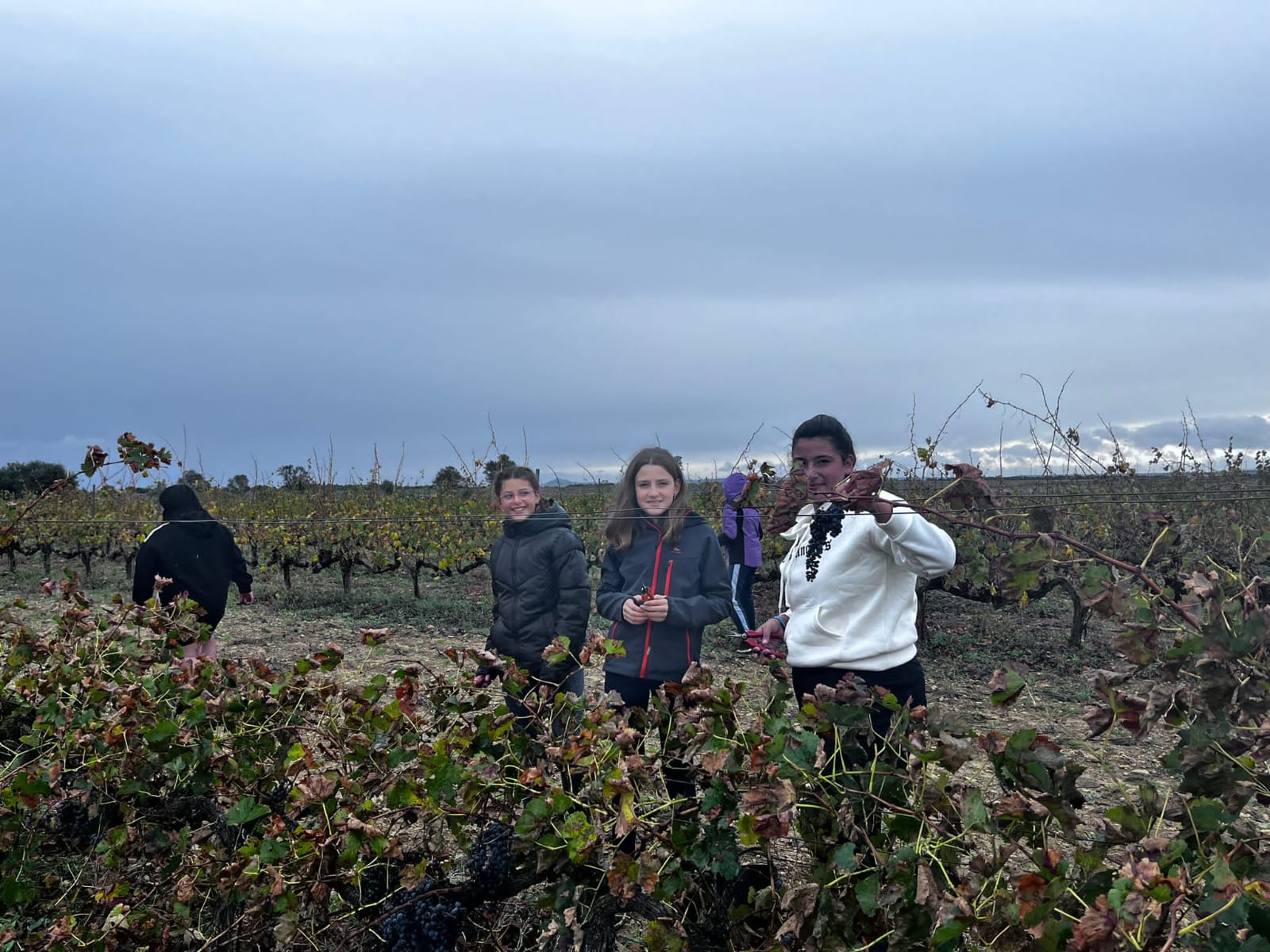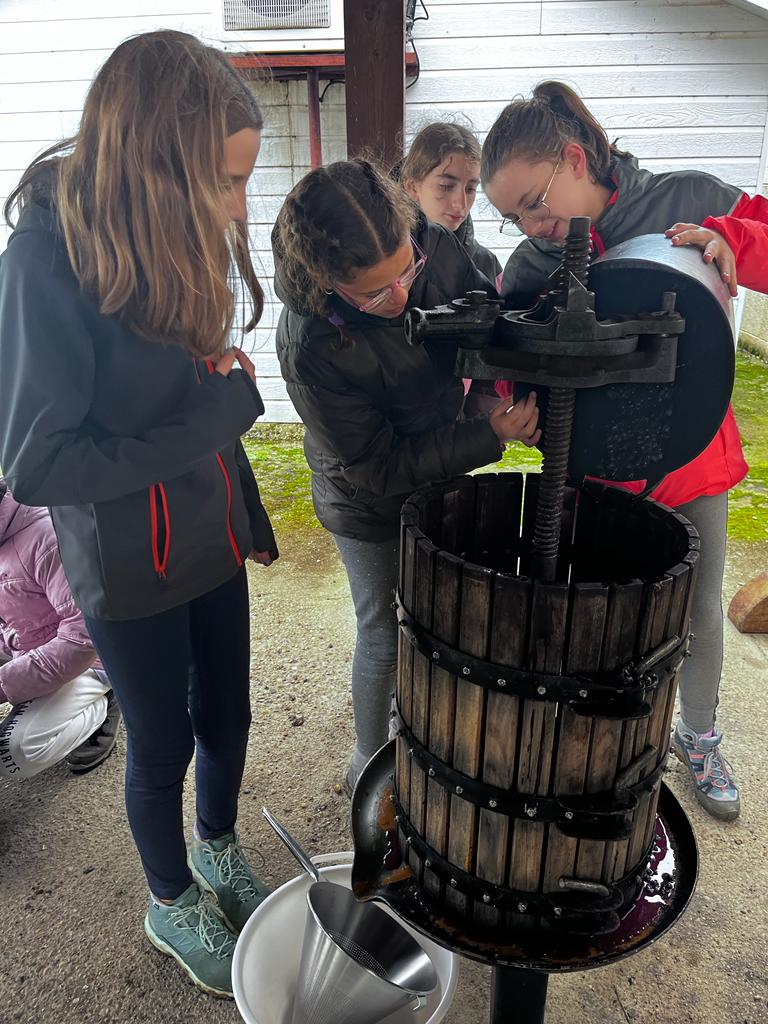 Aunque ya no es época de vendimia, tambien realizamos un taller de enología. Recogimos uvas de varias variedades y las pisamos hasta obtener un mosto riquísimo.