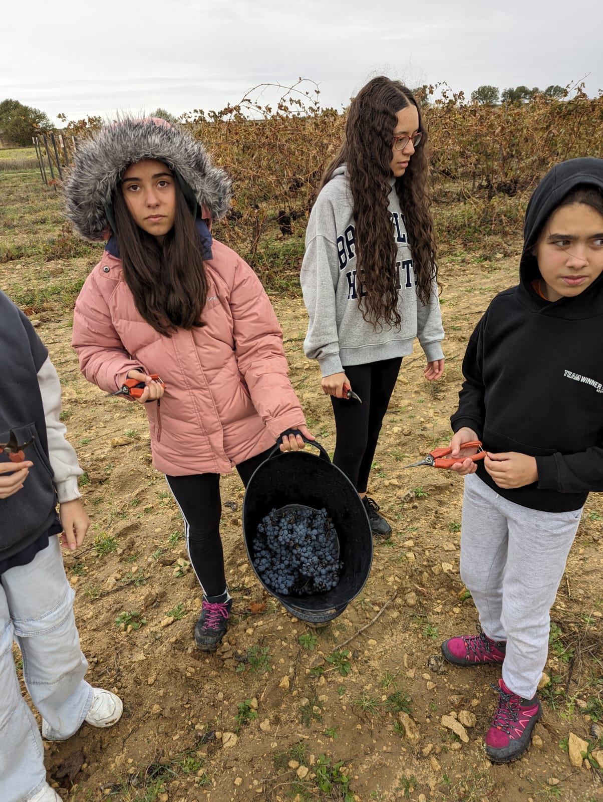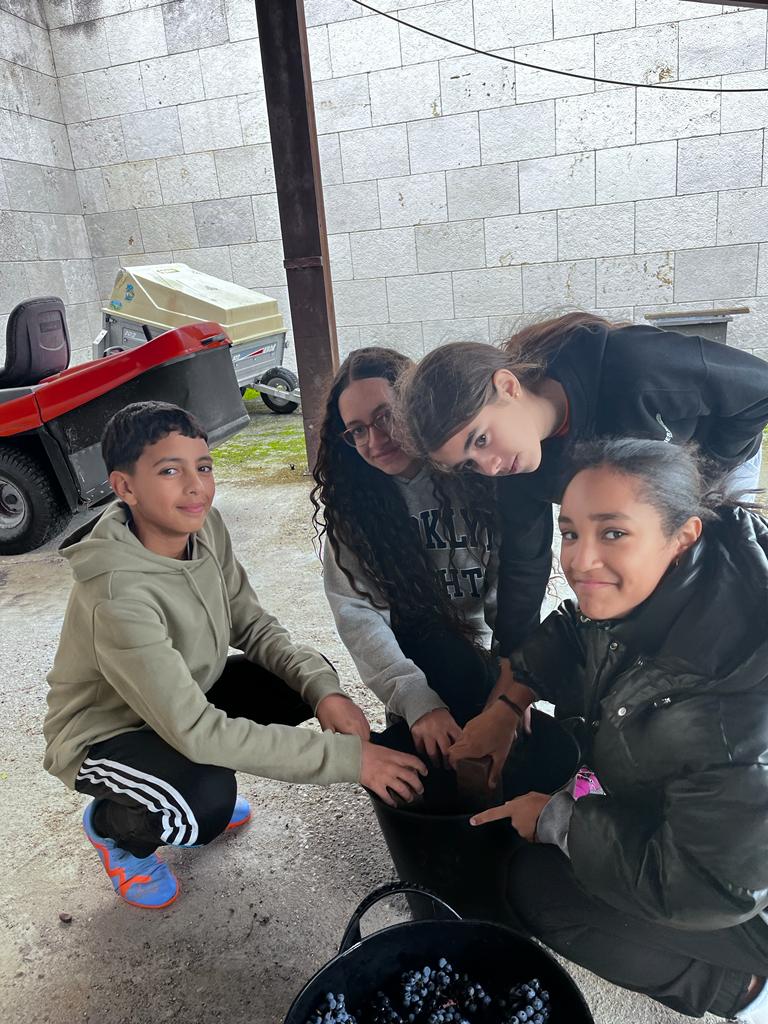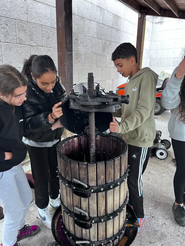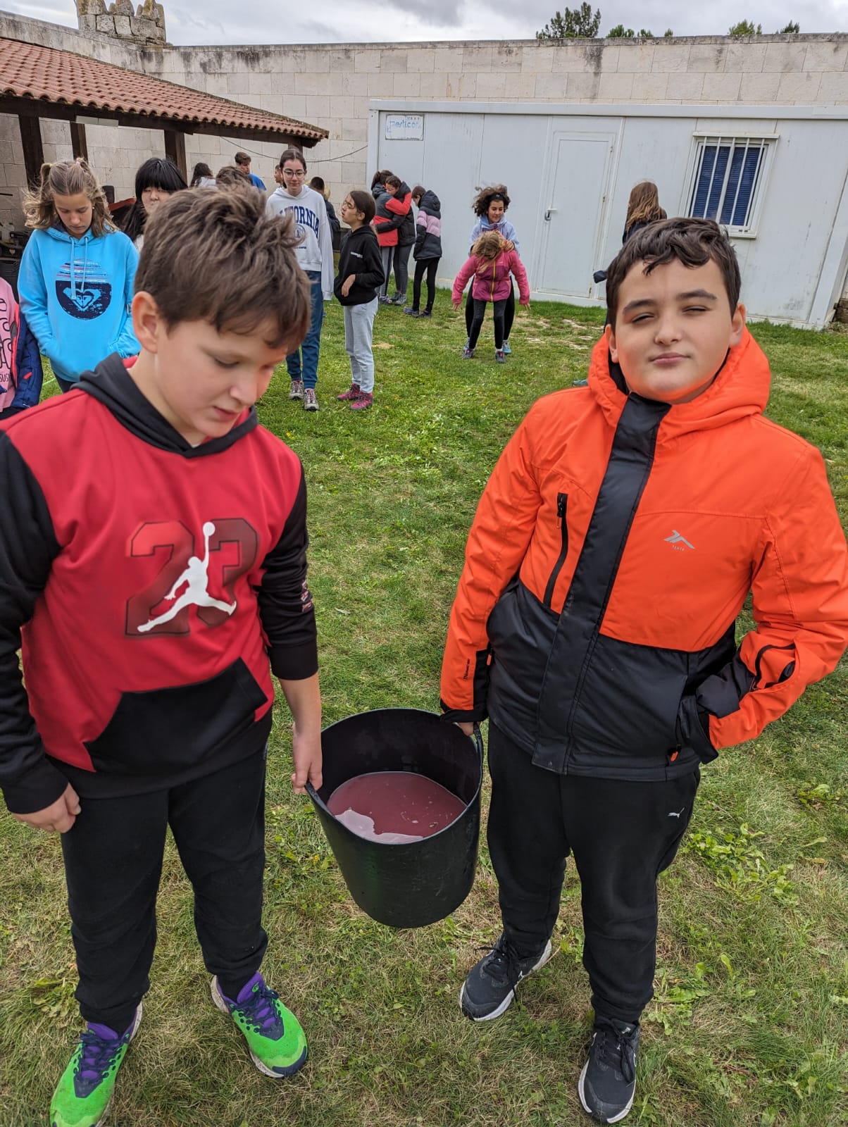 Aunque ya no es época de vendimia, tambien realizamos un taller de enología. Recogimos uvas de varias variedades y las pisamos hasta obtener un mosto riquísimo.