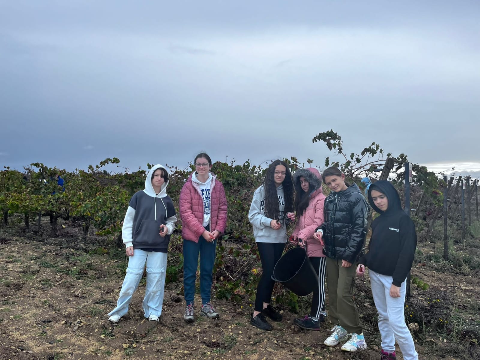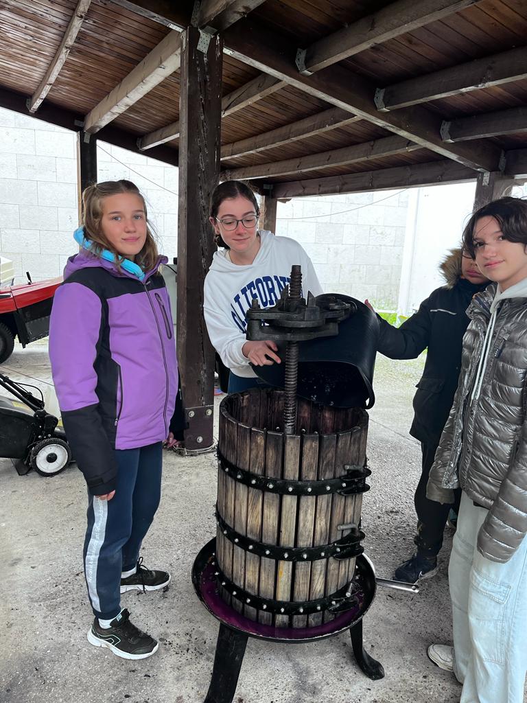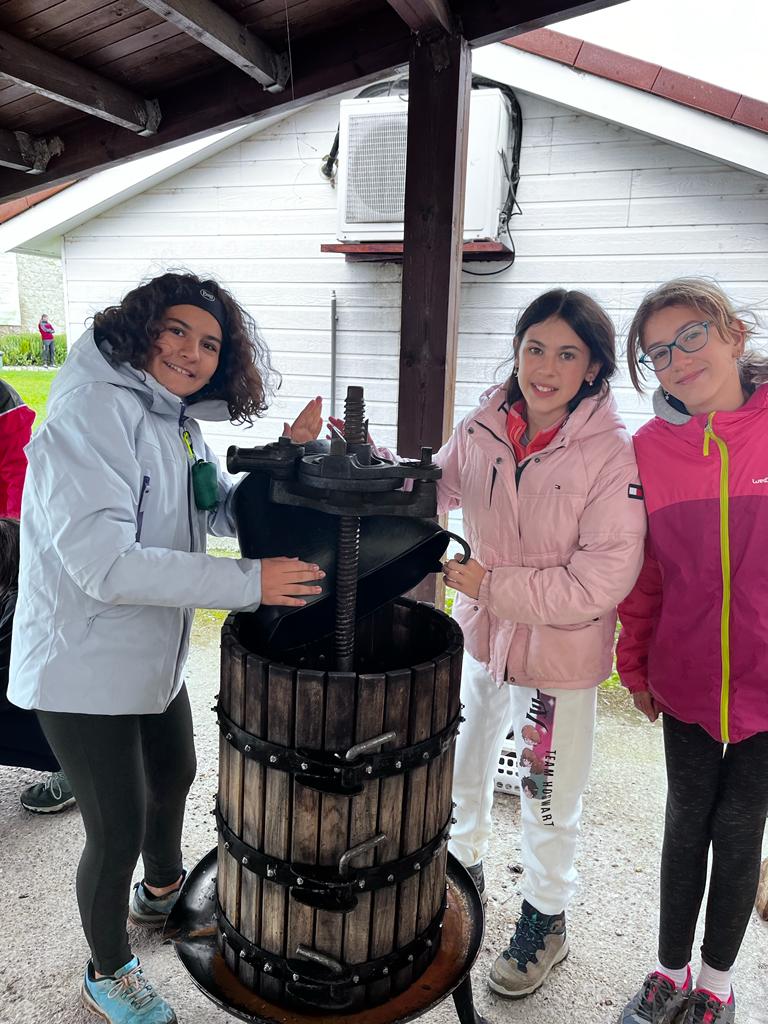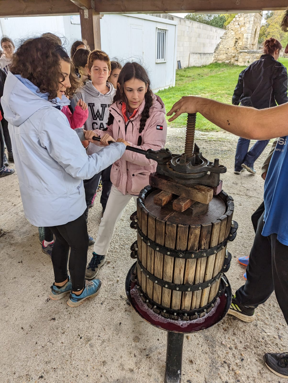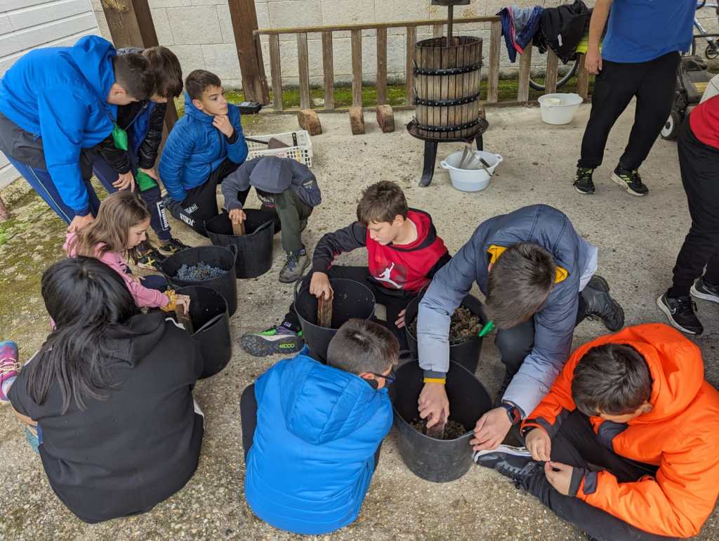 Aunque ya no es época de vendimia, tambien realizamos un taller de enología. Recogimos uvas de varias variedades y las pisamos hasta obtener un mosto riquísimo.
