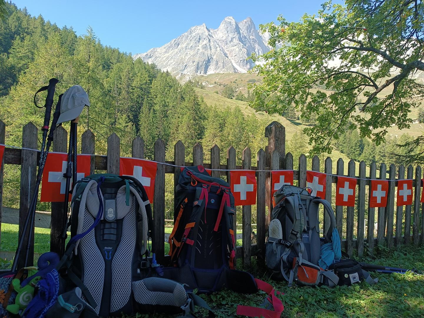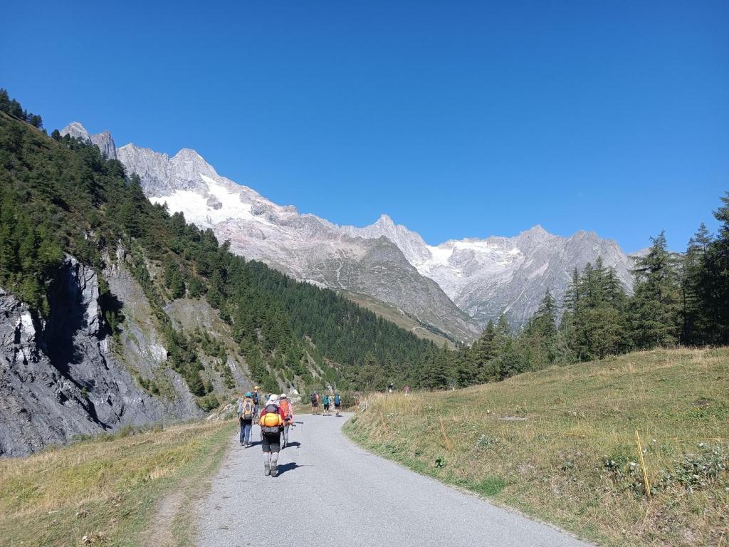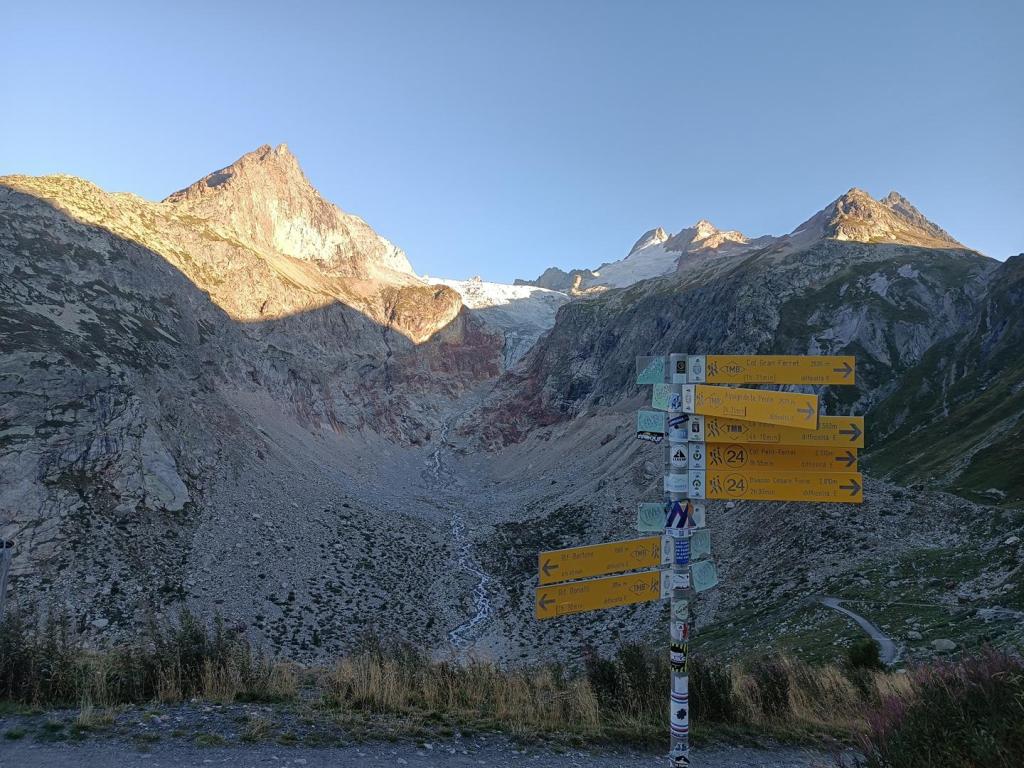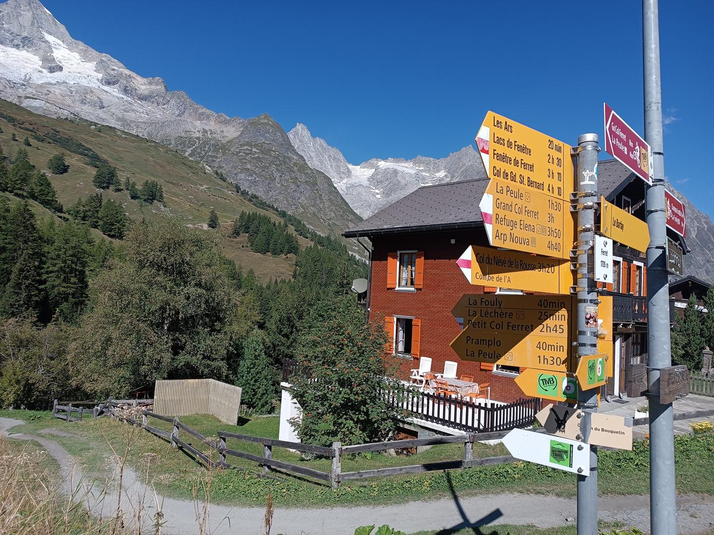 Bajada a Ferret, pueblo muy chulo, pequeño, pero con bar. Allí esperamos a que salga el bus. Bus a Orsieres, de Orsieres a Champex Lac, que me pareció muy chulo, desde el bus. Seguimos hasta Val d’Arpette, y después de un par de kilómetros llegamos al refugio.