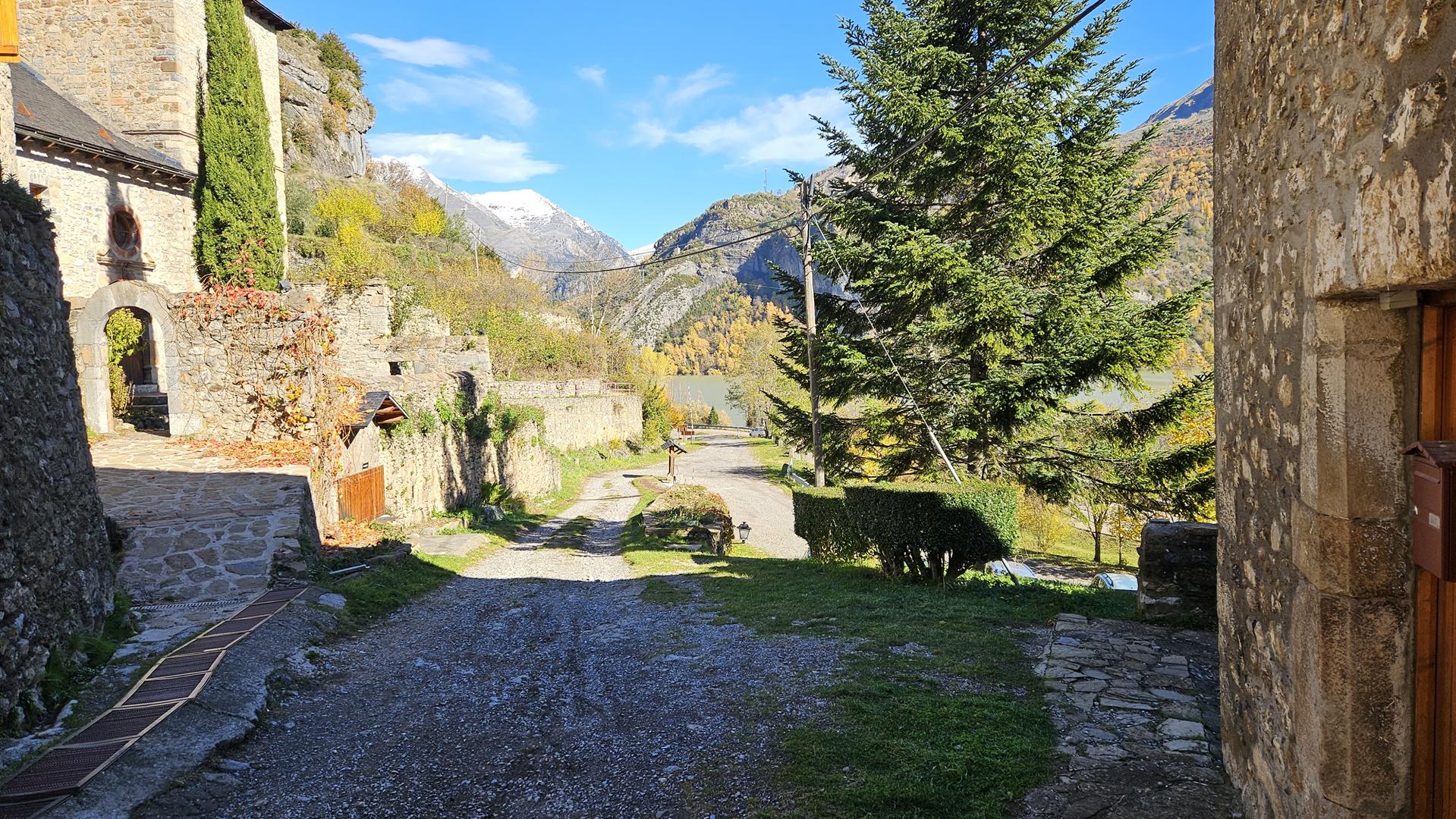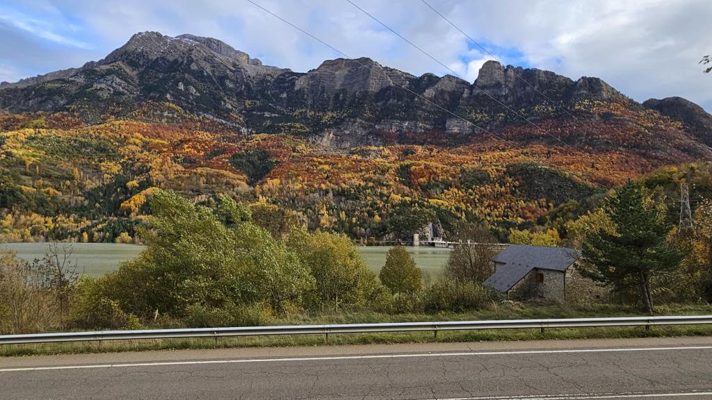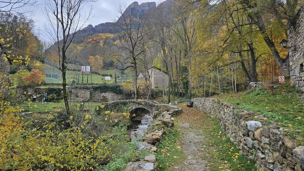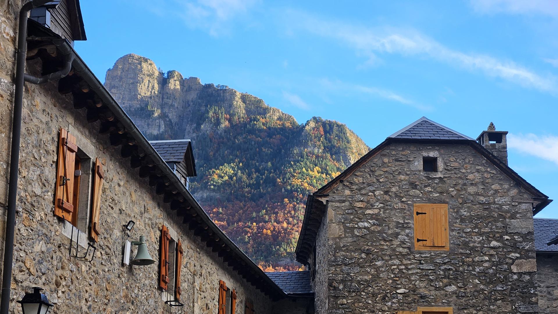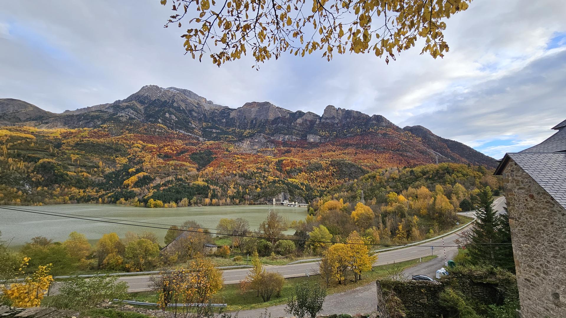 El viaje discurre sin novedad hasta llegar al bonito valle del Tera. Al fondo podemos ver los picos nevados típicos de esta época. El bosque está en su mejor momento con todas las tonalidades posibles. ¡Todo el pueblo parece un decorado!