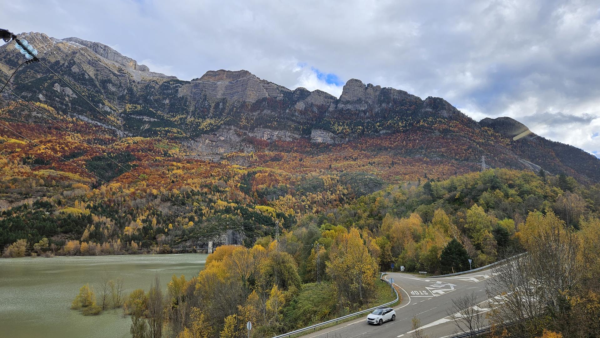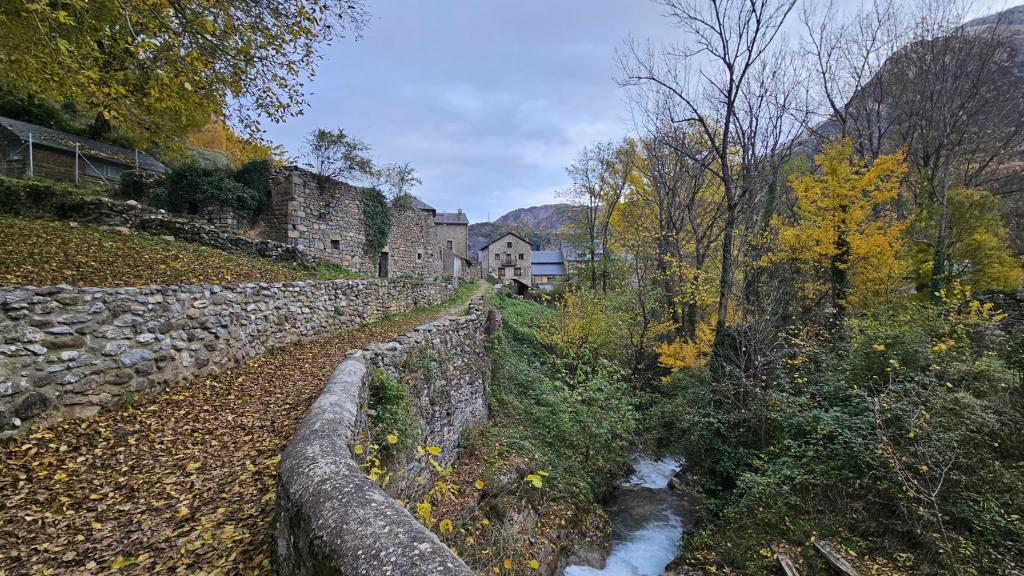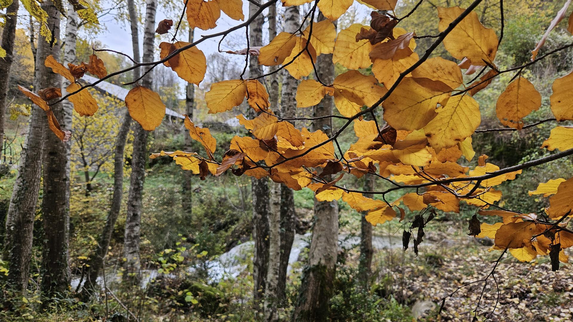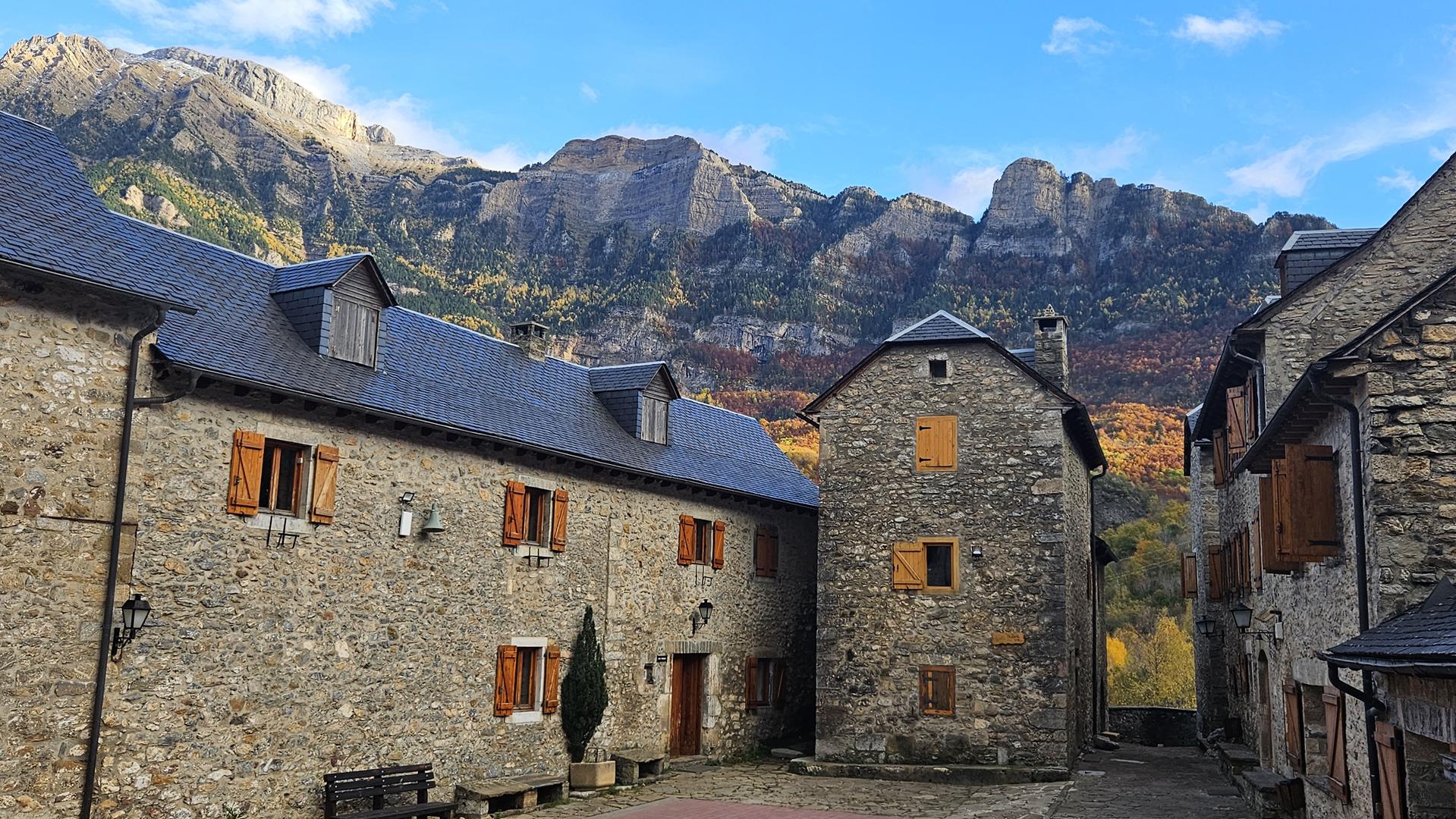 El viaje discurre sin novedad hasta llegar al bonito valle del Tera. Al fondo podemos ver los picos nevados típicos de esta época. El bosque está en su mejor momento con todas las tonalidades posibles. ¡Todo el pueblo parece un decorado!