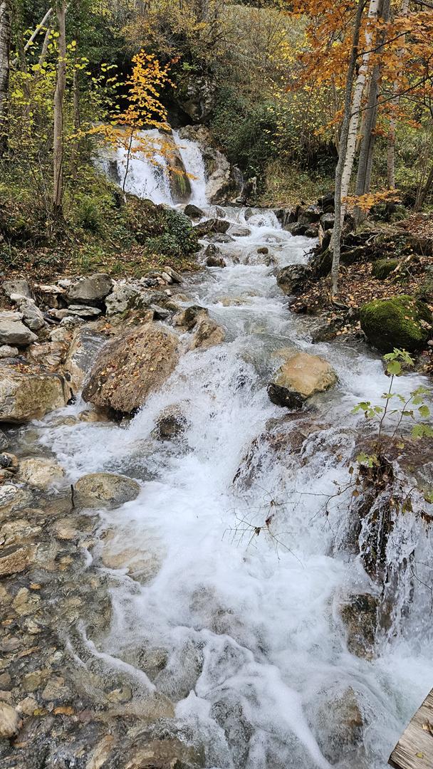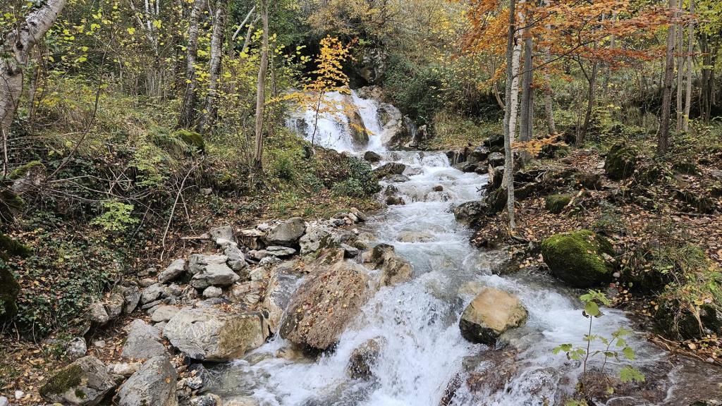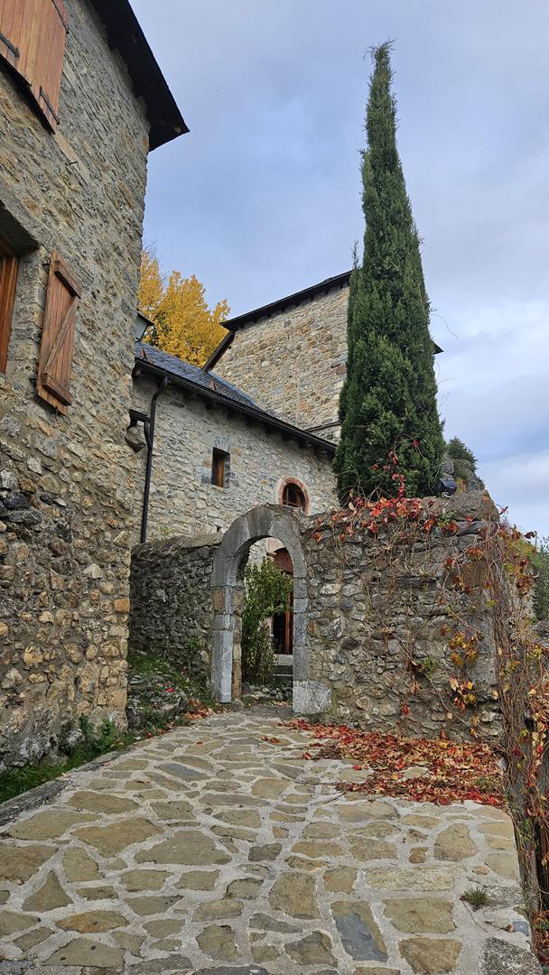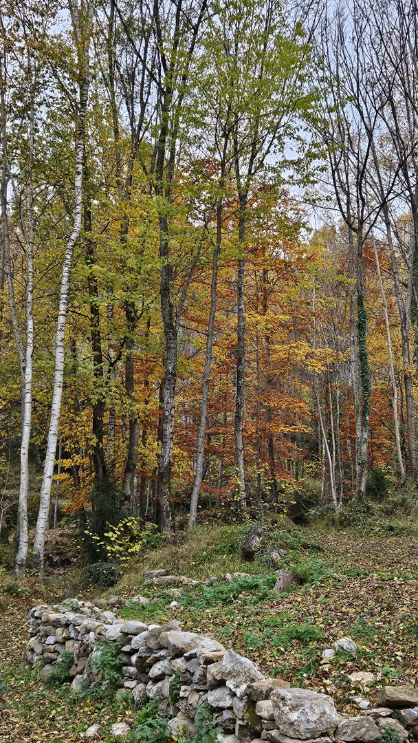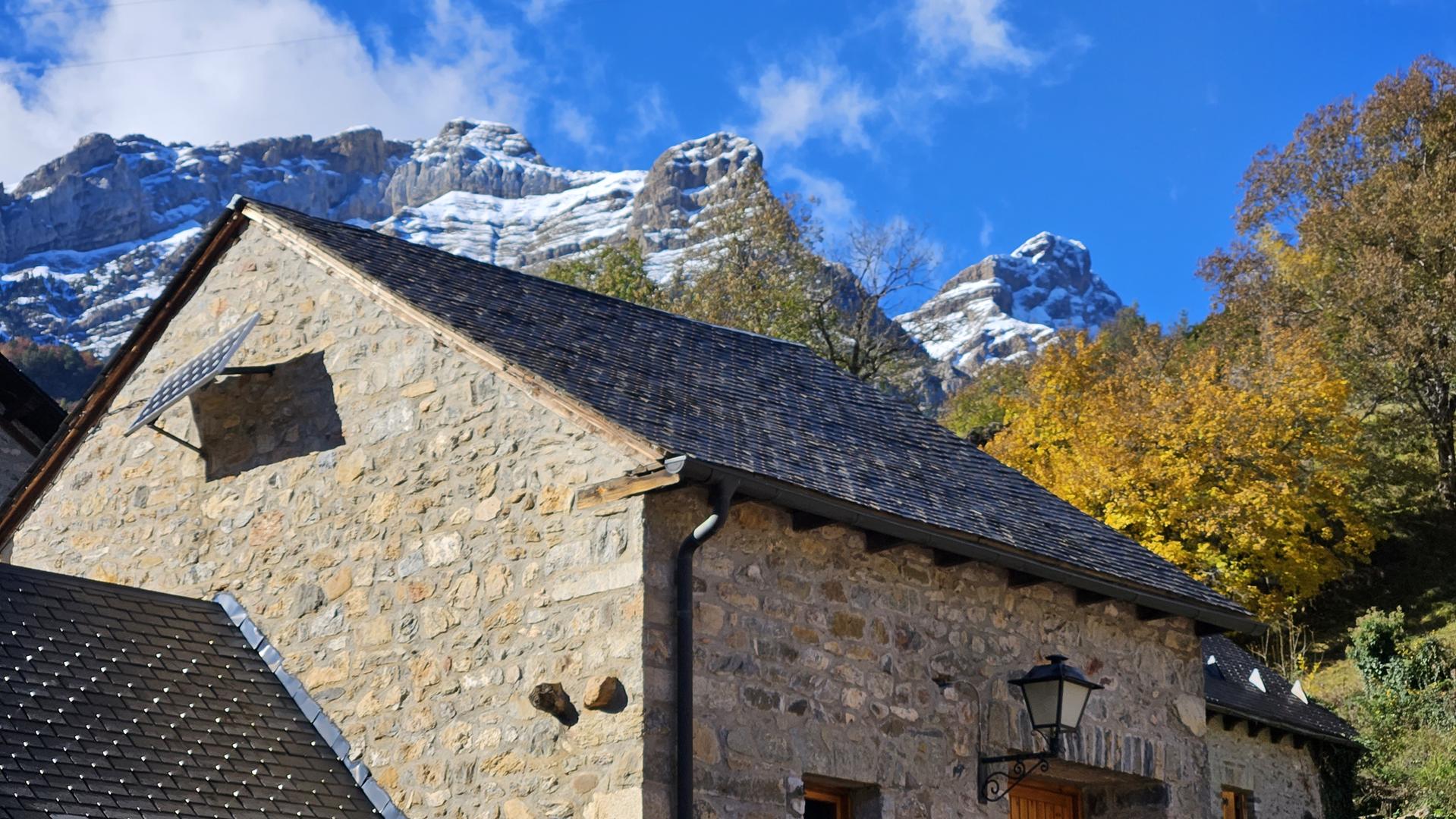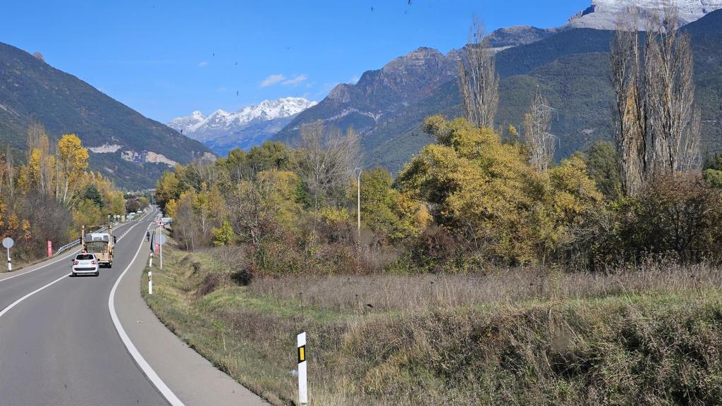 El viaje discurre sin novedad hasta llegar al bonito valle del Tera. Al fondo podemos ver los picos nevados típicos de esta época. El bosque está en su mejor momento con todas las tonalidades posibles. ¡Todo el pueblo parece un decorado!