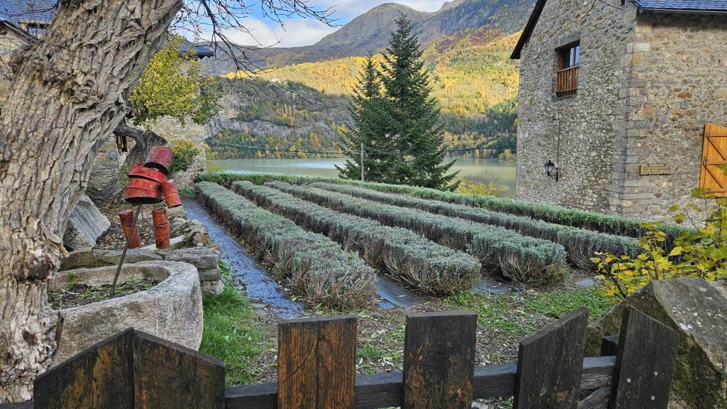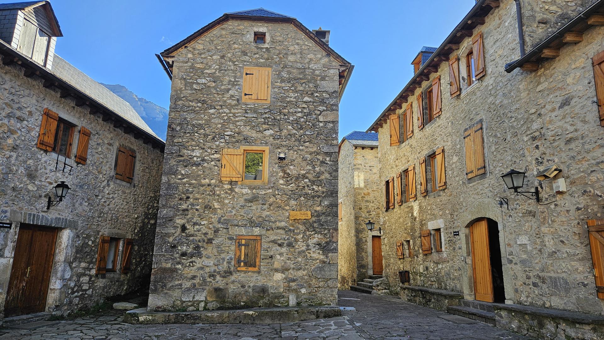 La escuela, el mentidero, donde se reunían los bubalenses fuera del pueblo para no llamar la atención cuando querían cotillear, la plaza, la iglesia, el horno comunitario, la cuadra Mateo, con numerosos animales, el cementerio, el huerto con las terrazas con cultivos orientados en dirección sur o las distintas casas de Fanlo, Acut, Aines, Mateo o Tiburcio de distintos tamaños según su estatus social.