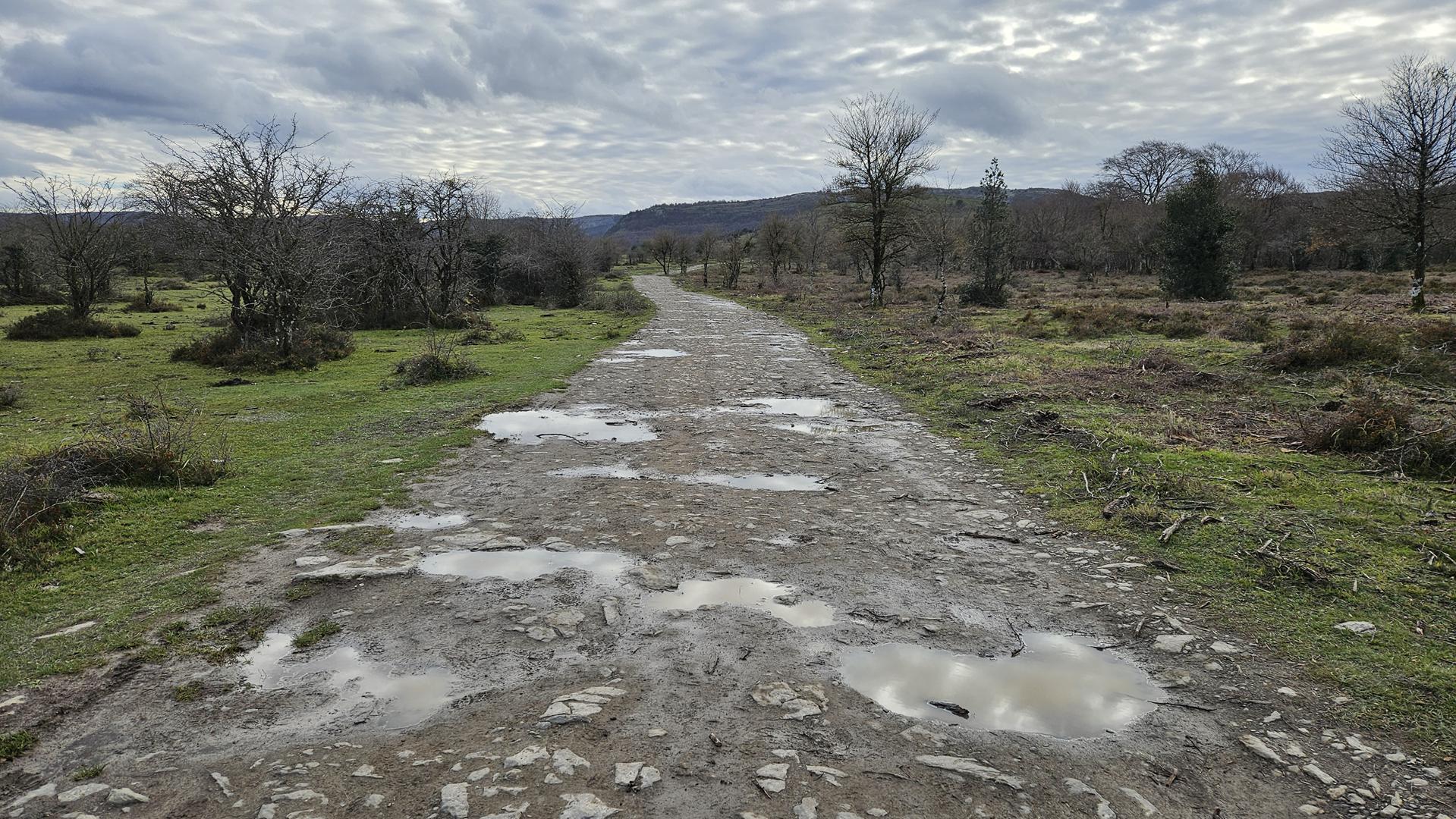 El camino de unos 5 kilómetro sin desnivel está perfectamente marcado, y aunque lleno de barro, es muy sencillo de seguir. Nos llama la atención la falta de vegetación.
