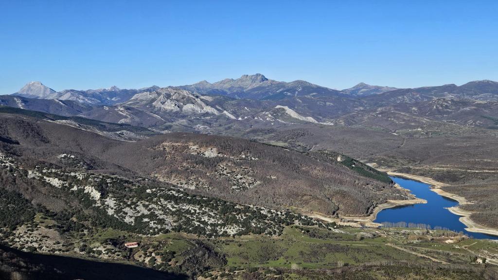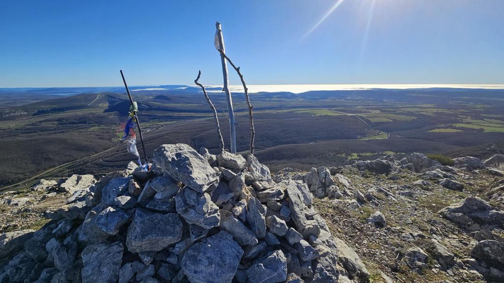 Desde arriba las vistas de la Montaña palentina son espectaculares. A nuestra espalda al fondo queda la niebla que cubre gran parte de la meseta castellana.