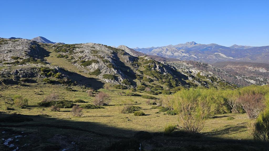 Después de un tentempie bajamos al collado del brezal, donde numerosos brezales incomodan nuestro caminar para subir a la segunda de las cimas, el Pico de las Cruces, situado a 1570 metros. ¿Las vistas? Igualmente de maravillosas. Encima, es que el día es espectacular.