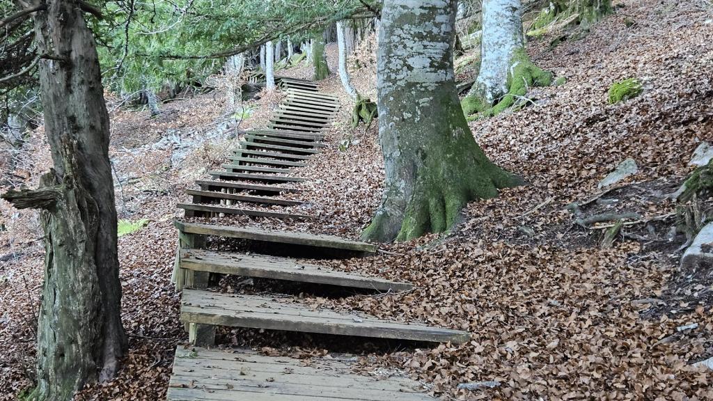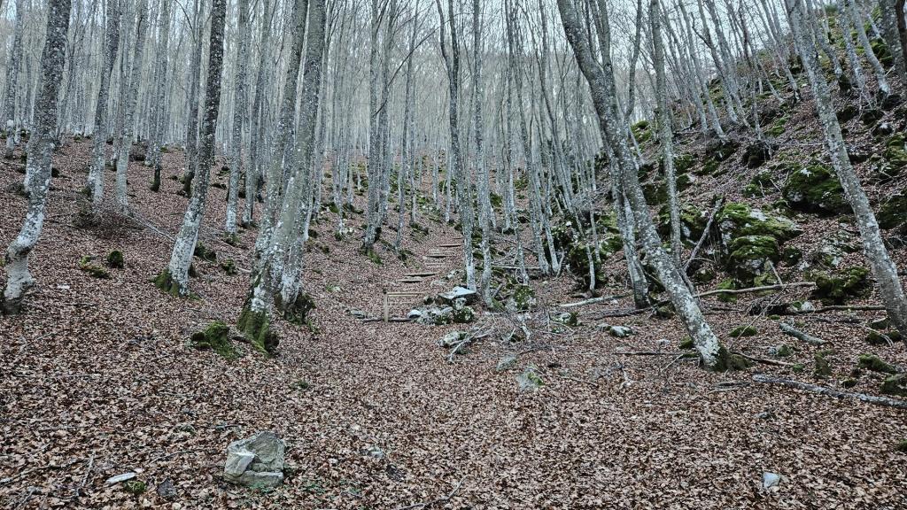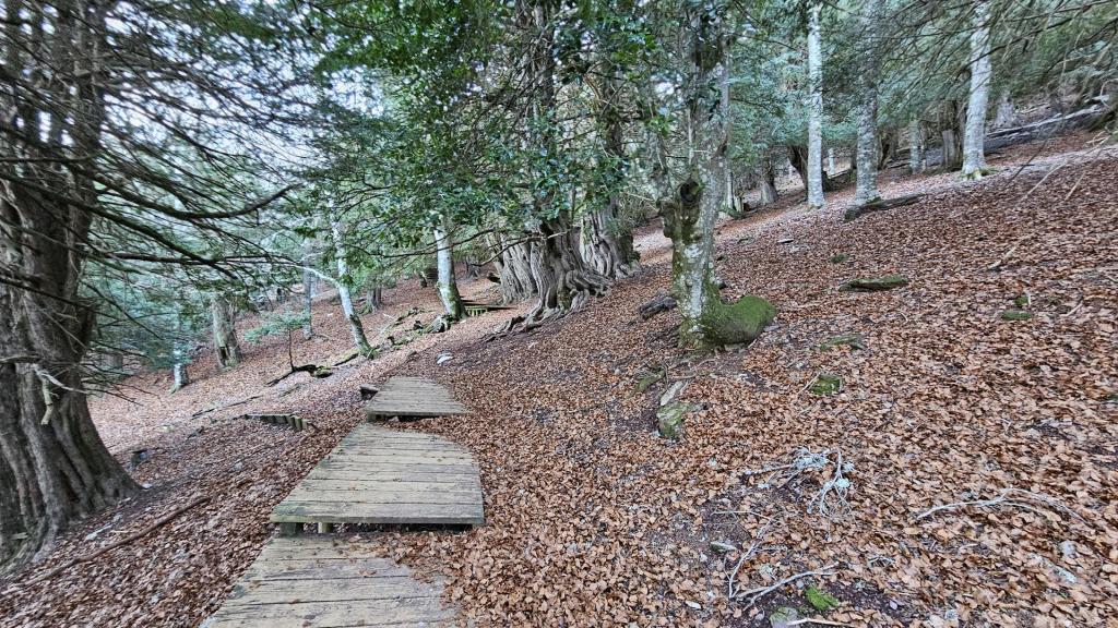 Desde aquí subimos, a traves de un hayedo excepcional y ayudados por unas traviesas de madera, a la Tejeda de Tosande.