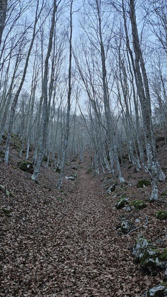 En esta época casi en invierno está bastante pelado de hojas. La ascensión es bastante exigente por lo que debemos concentrarnos para ahorrar energías.
