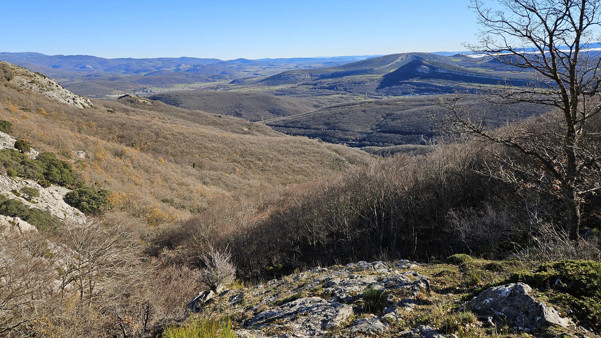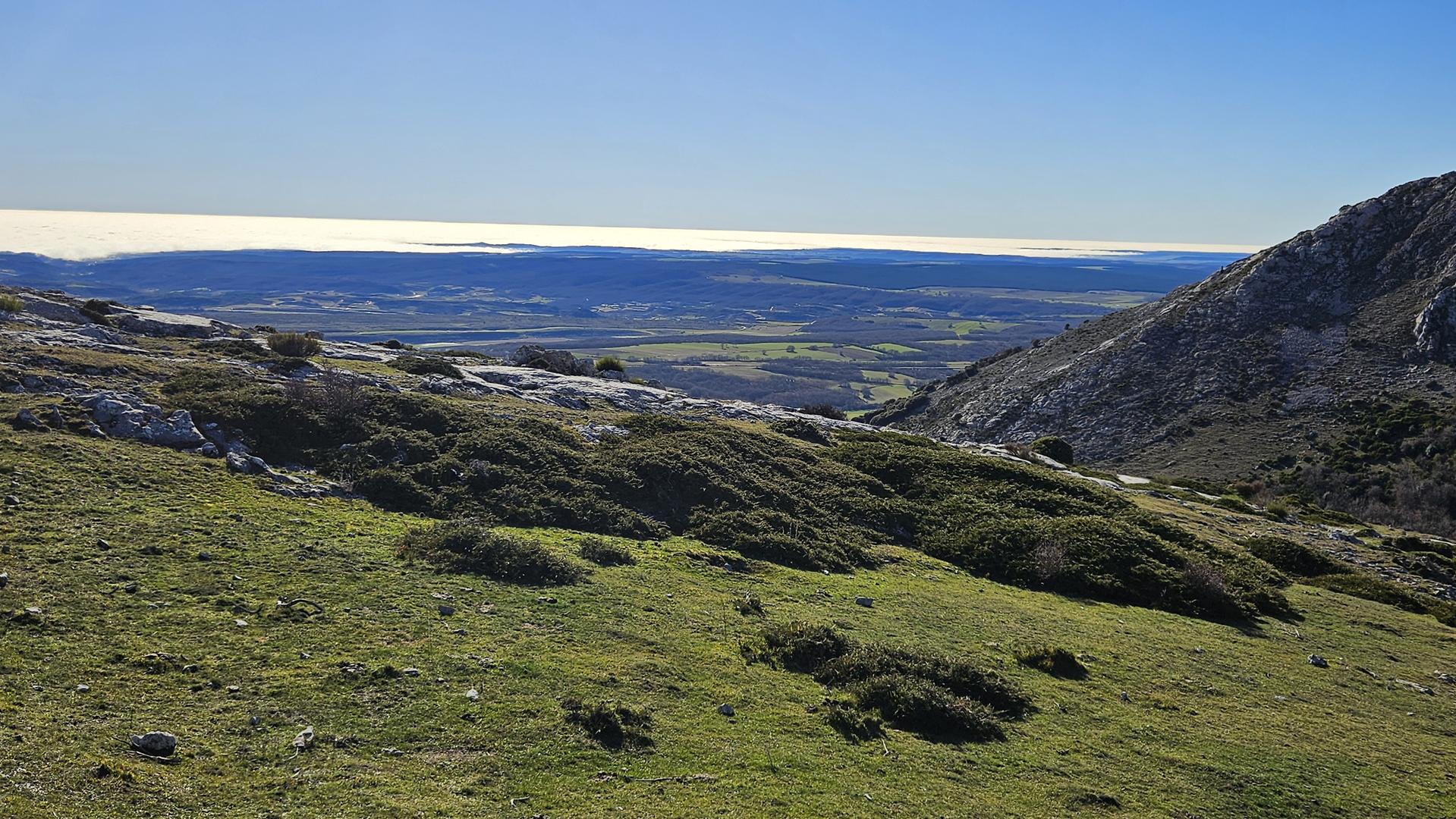Desde arriba las vistas de la Montaña palentina son espectaculares. A nuestra espalda al fondo queda la niebla que cubre gran parte de la meseta castellana.