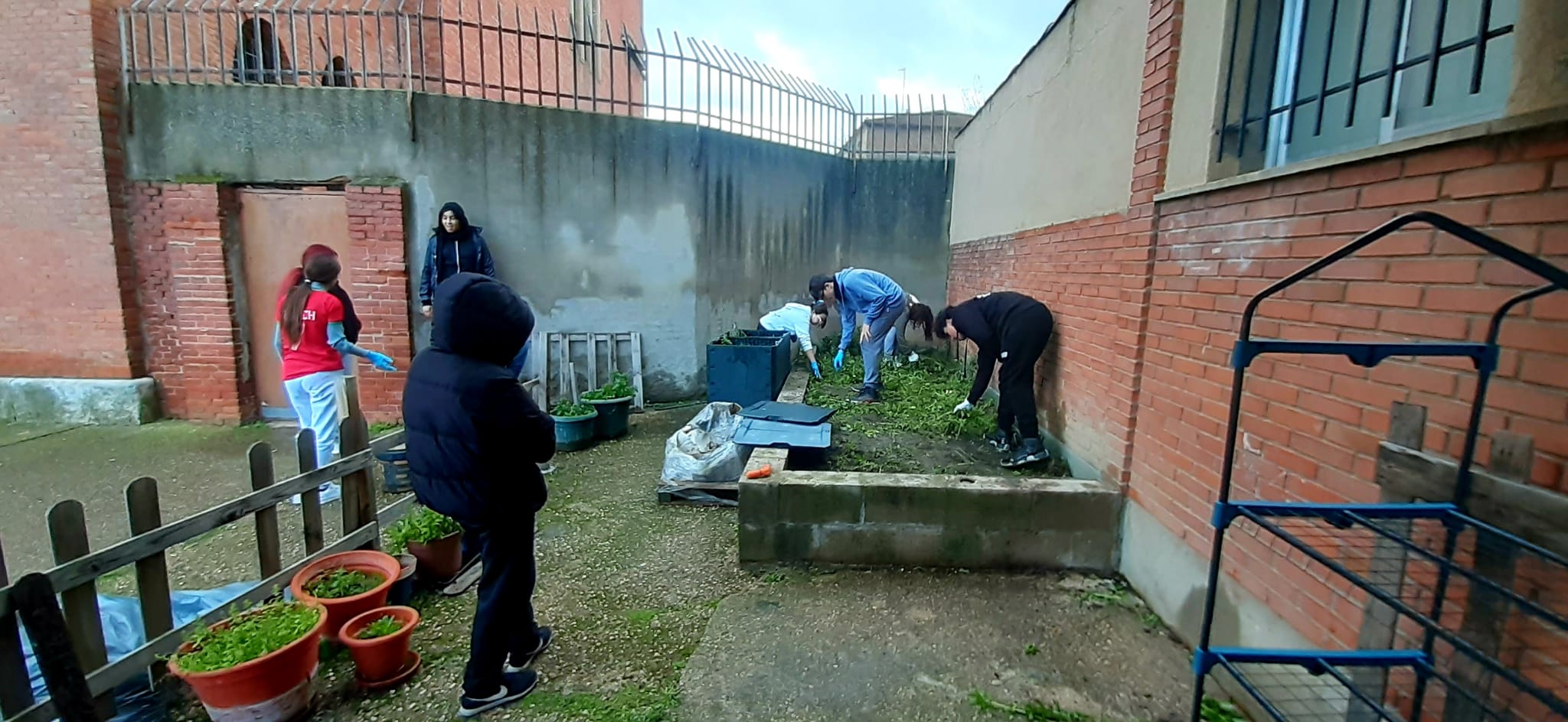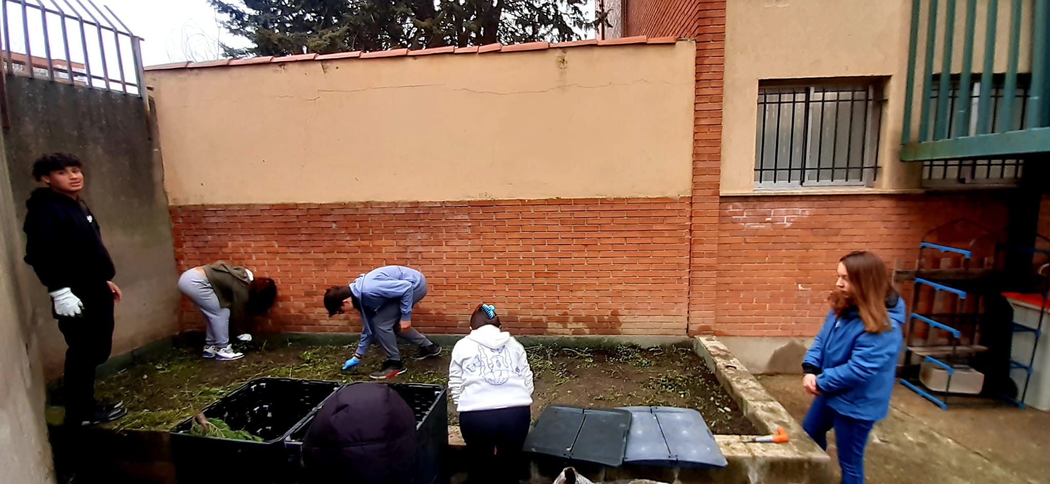 Unos arrancábamos las plantas que habían salido, otros las depositábamos en la compostera y el resto nos encargamos de limpiar las pocas hojas y restos de tierra que caían al suelo.