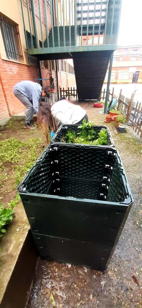 Un vez que los cubos de compostaje estaban vacíos pudimos ponernos a quitar las hierbas del huerto.
