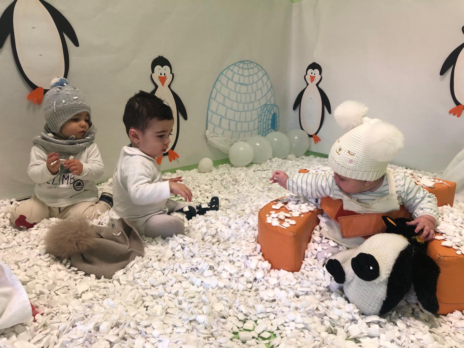 Los más pequeños estimulamos los sentidos, especialmente el color blanco y elementos de diferentes texturas fomentando la curiosidad.