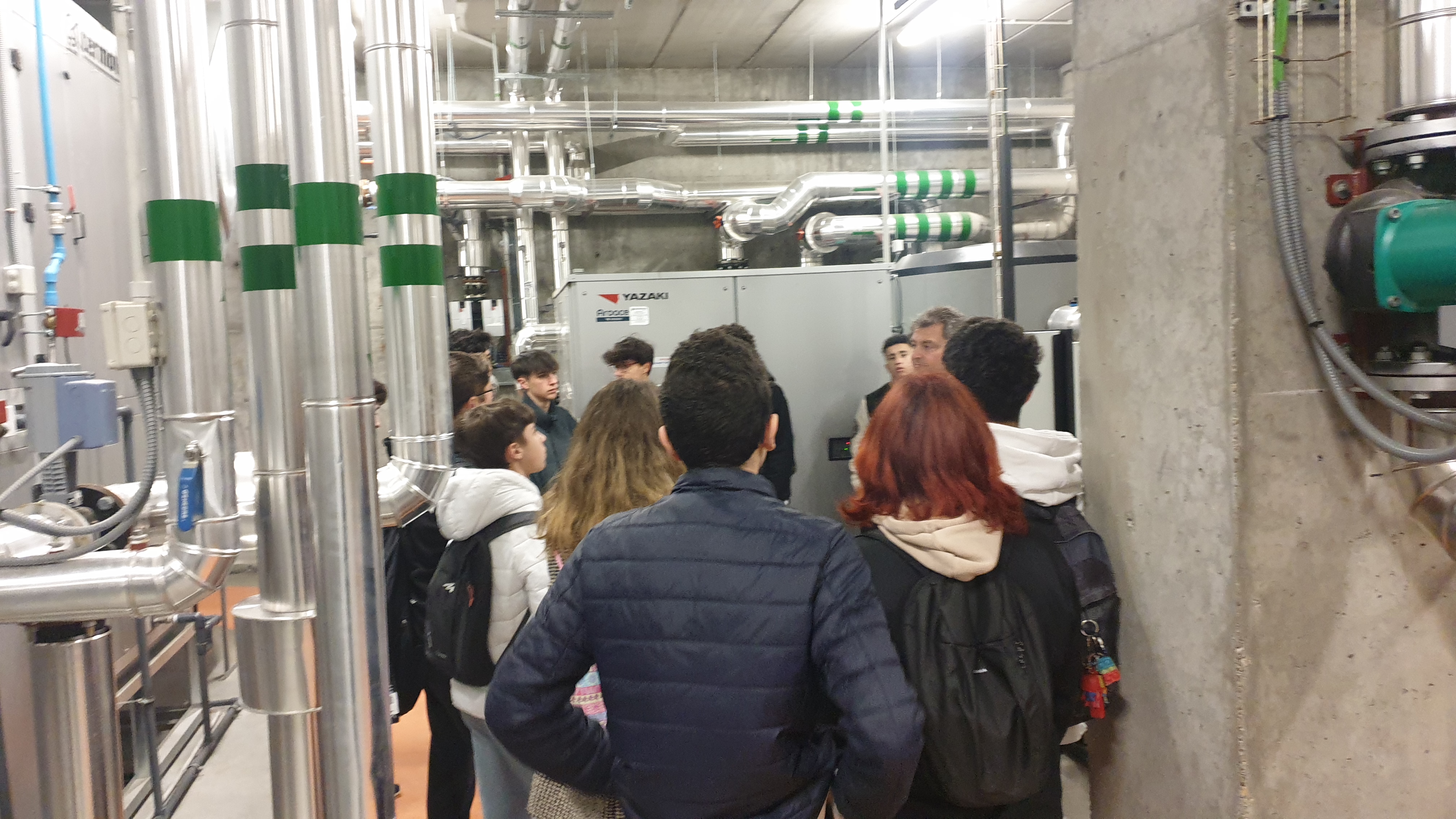 Por último y tras una pausa donde disfrutamos de la cafetería universitaria, visitamos la Central de Biomasa y el silo de almacenamiento, donde se aprovechan recursos naturales de la zona que son eficazmente transportados de un lado a otro por un sistema de suelo deslizante. Anteriormente nos habían mostrado un video de la red de calor planteada que abastece a todo el campus, más el de Ingeniería y varios edificios de barrios cercanos. Ya en la central pudimos conocer de primera mano los circuitos de climatización, de salida de aire, de expulsión de cenizas, etc. Así como las válvulas y motores que permiten que funcione.